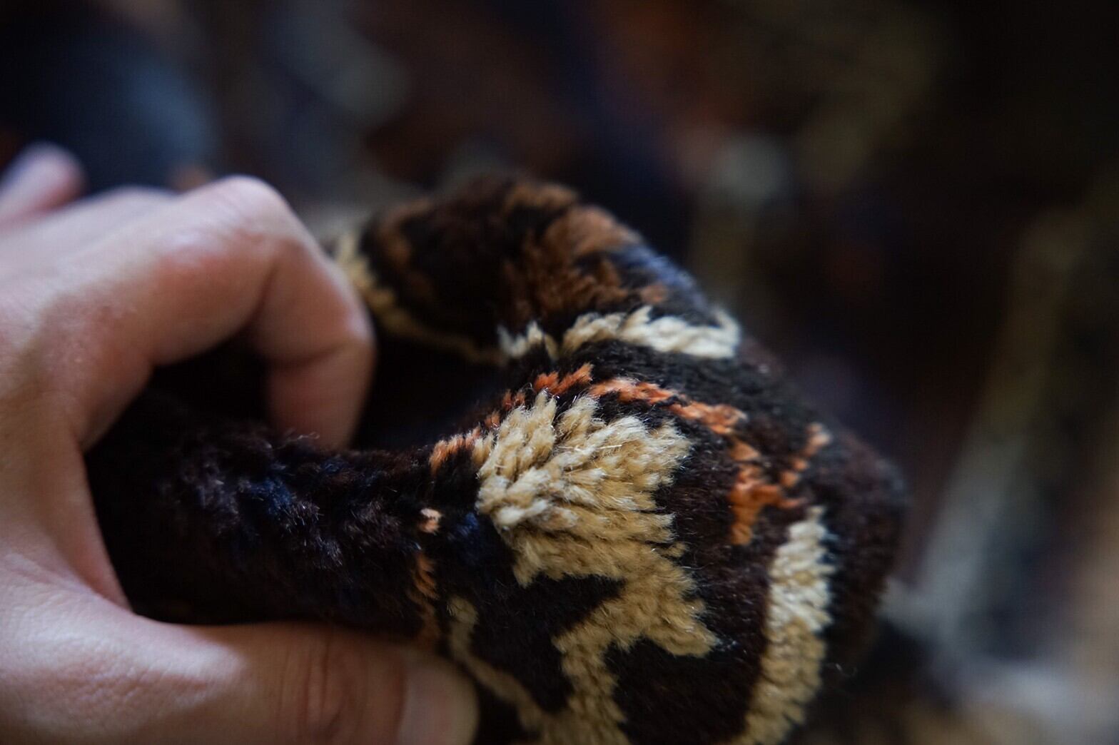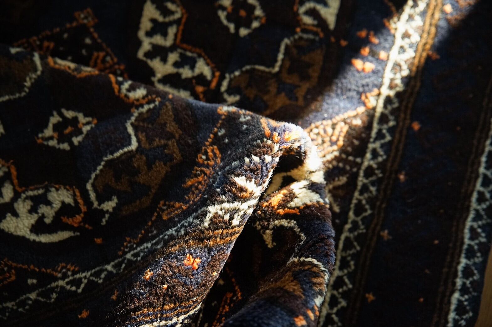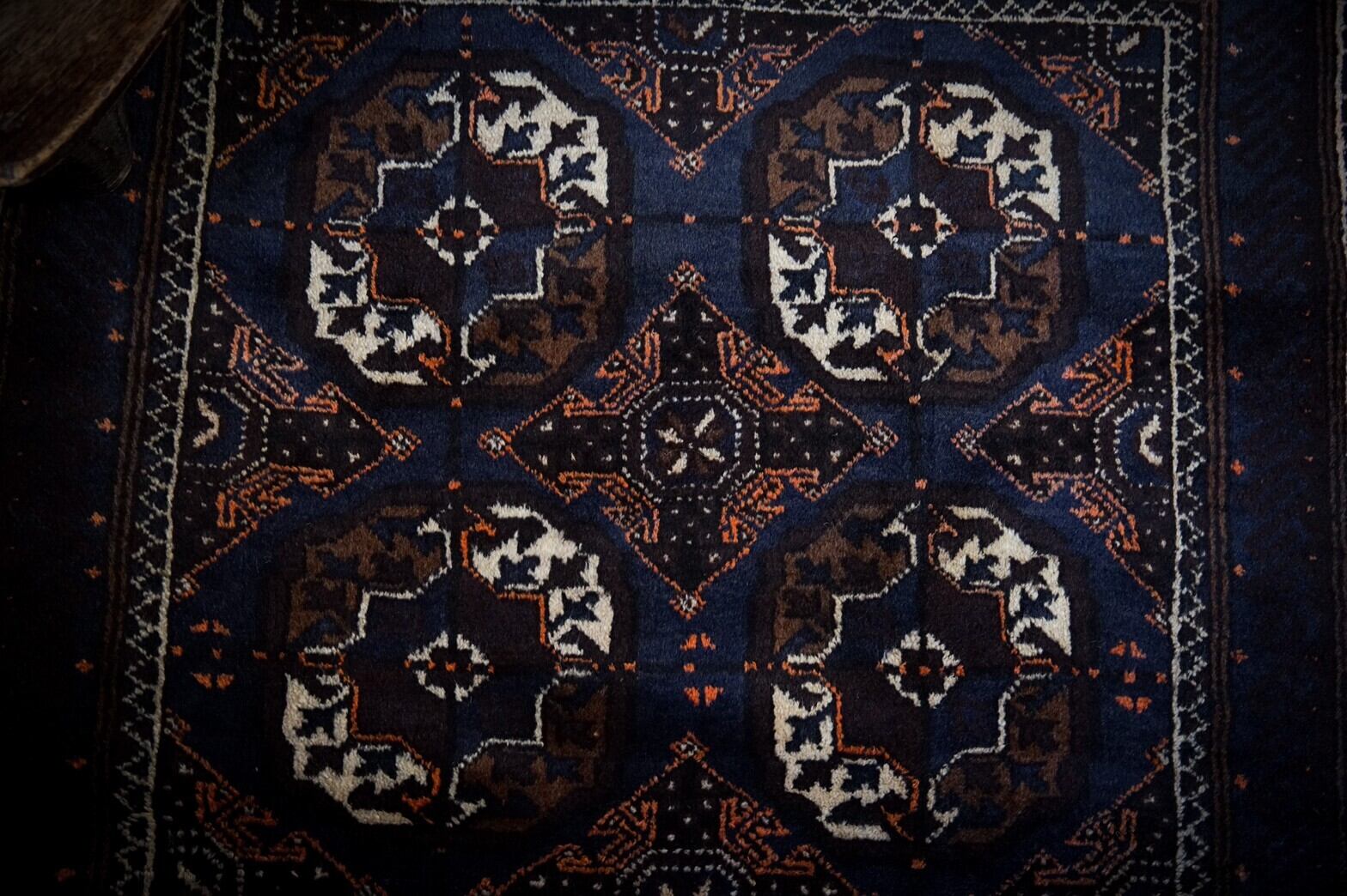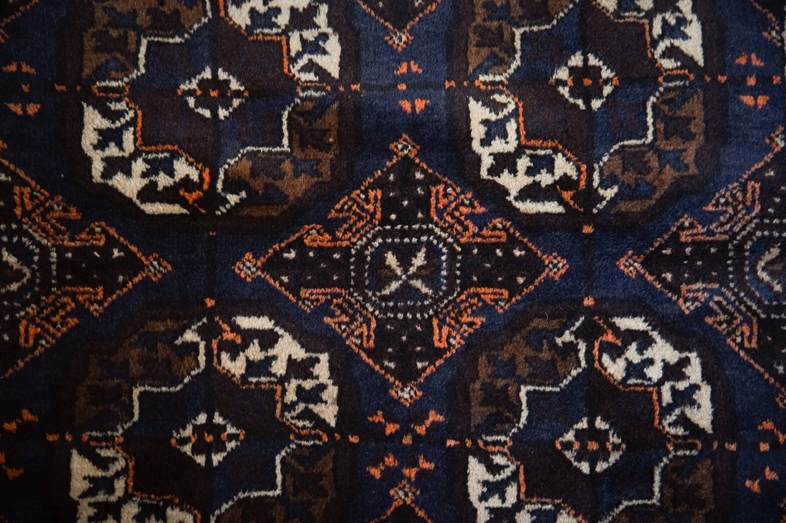 1970年代のトルクメンの人々が織ったブハラ絨毯と呼ばれるトライバルラグ。テッケ族のギュルと言われる家紋が織り込まれています。床の冷たさを通さない厚手でしっかり丈夫な作りだからこそ長い時間を経てもとてもきれいな状態を保っています。シックな色合いで落ち着いた雰囲気です。玄関マットより少し大きいのでリビングや書斎に敷いたり、ベッドサイド、キッチンラグとしてオススメのサイズです。