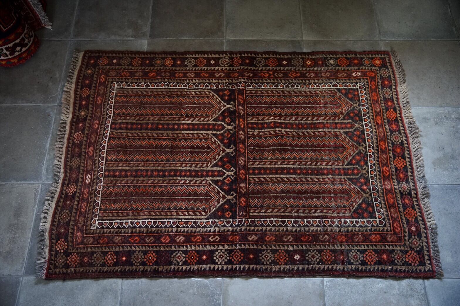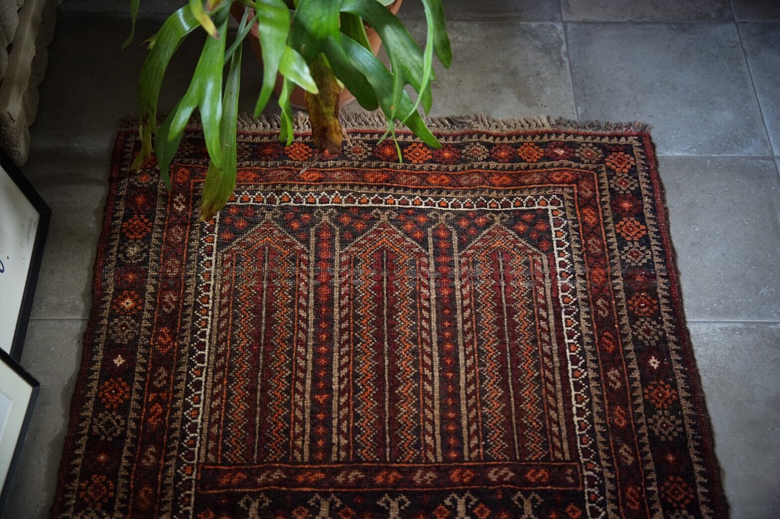アフガニスタンにある工房で作られたアリホジャ と呼ばれるラグ。ブロケードと言われるレースのような細かい模様が描かれているのが特徴び美しいラグです。ブラウン×オレンジの落ち着いたトーンなので細かいモチーフもうるさく感じません。パイルは少し短めなのでペットがいる方でも掃除しやすいかと思います。目立ったダメージはなく、踏みならされたパイルは肌触りも良いです。リビングやソフアの前、ベッドサイド、植物のある窓辺やベランダの前に置いてみてはいかがでしょうか?
