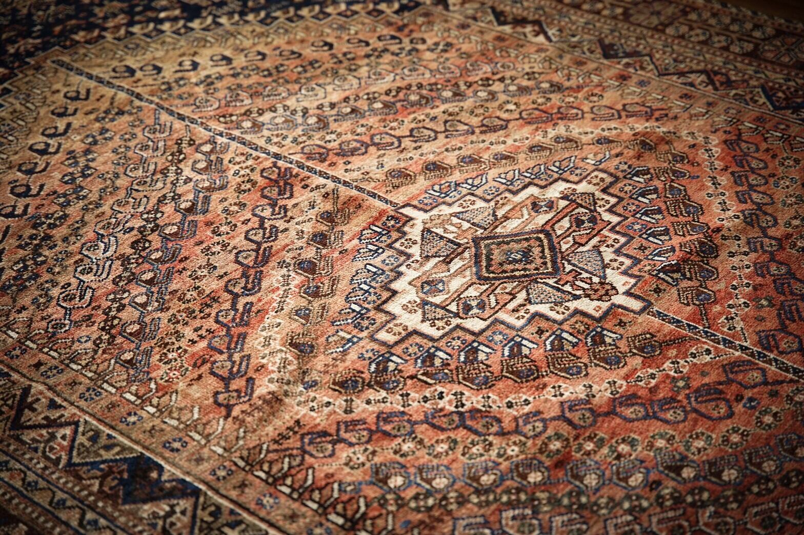 特別な一枚をお探しの方へ。経年変化で美しく変化した色は時間や海を超えて私たちをも魅了し続けます。朝焼けのような淡い曙色のグラデーションのフィールドにはたくさんのボテが並び、静けさを感じる濃紺のコーナー部分にはたくさんの鳥たちが描かれています。ボーダー部分は優しいブラウンに生命の樹と花が描かれています。目立ったダメージや補修跡もなくグッドコンディション。奇跡的にパイルの減りもほぼなくフカフカで思わず寝転がりたくなります。一期一会のラグなのでもし運命を感じてくれたならぜひ。お家のリビングやダイニング、寝室などにドンと置くだけでお部屋の雰囲気がグッと変わると思います。また、ご自宅だけでなくショップや音楽スタジオ、写真スタジオなどでご使用もおすすめです。