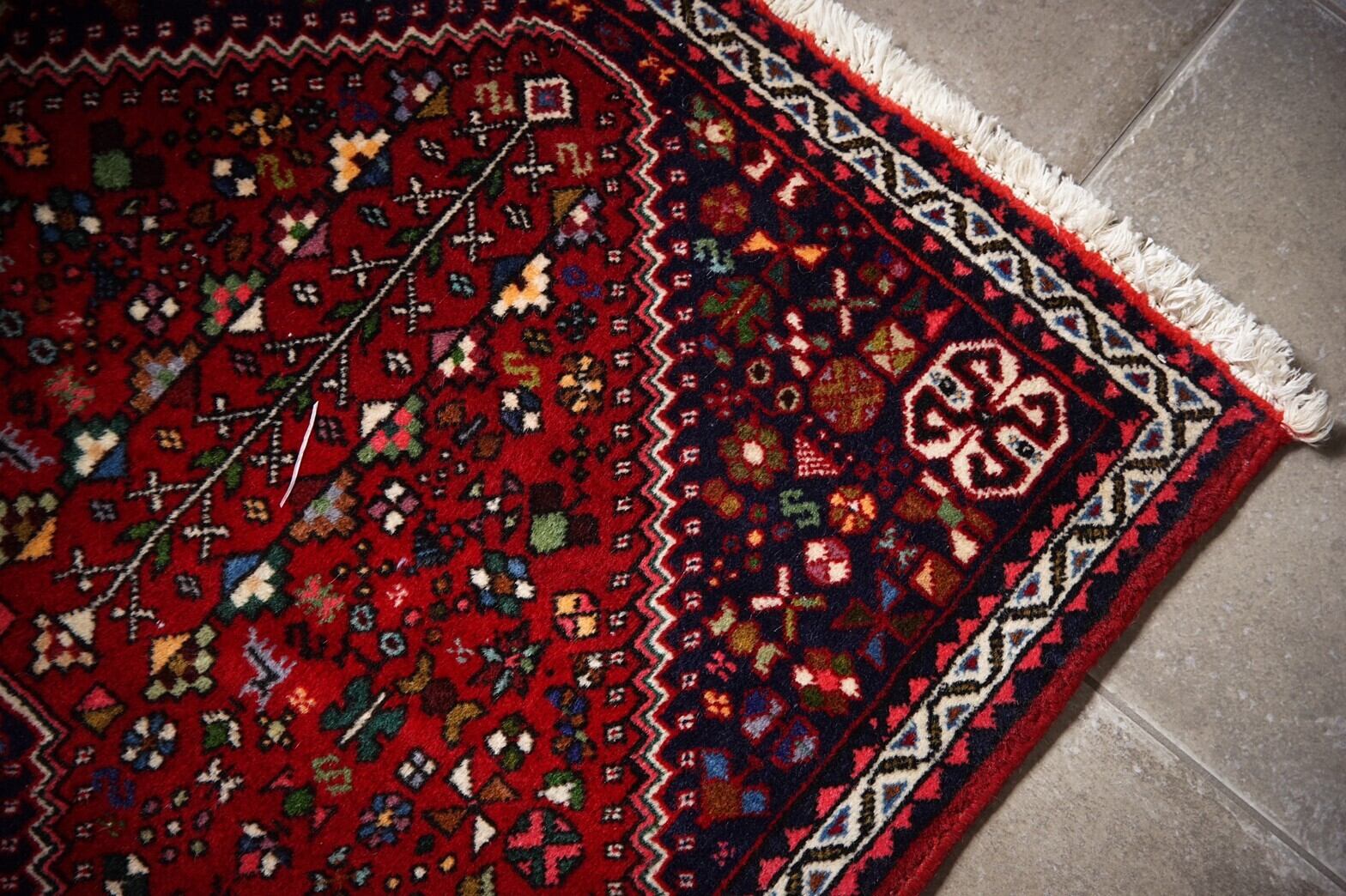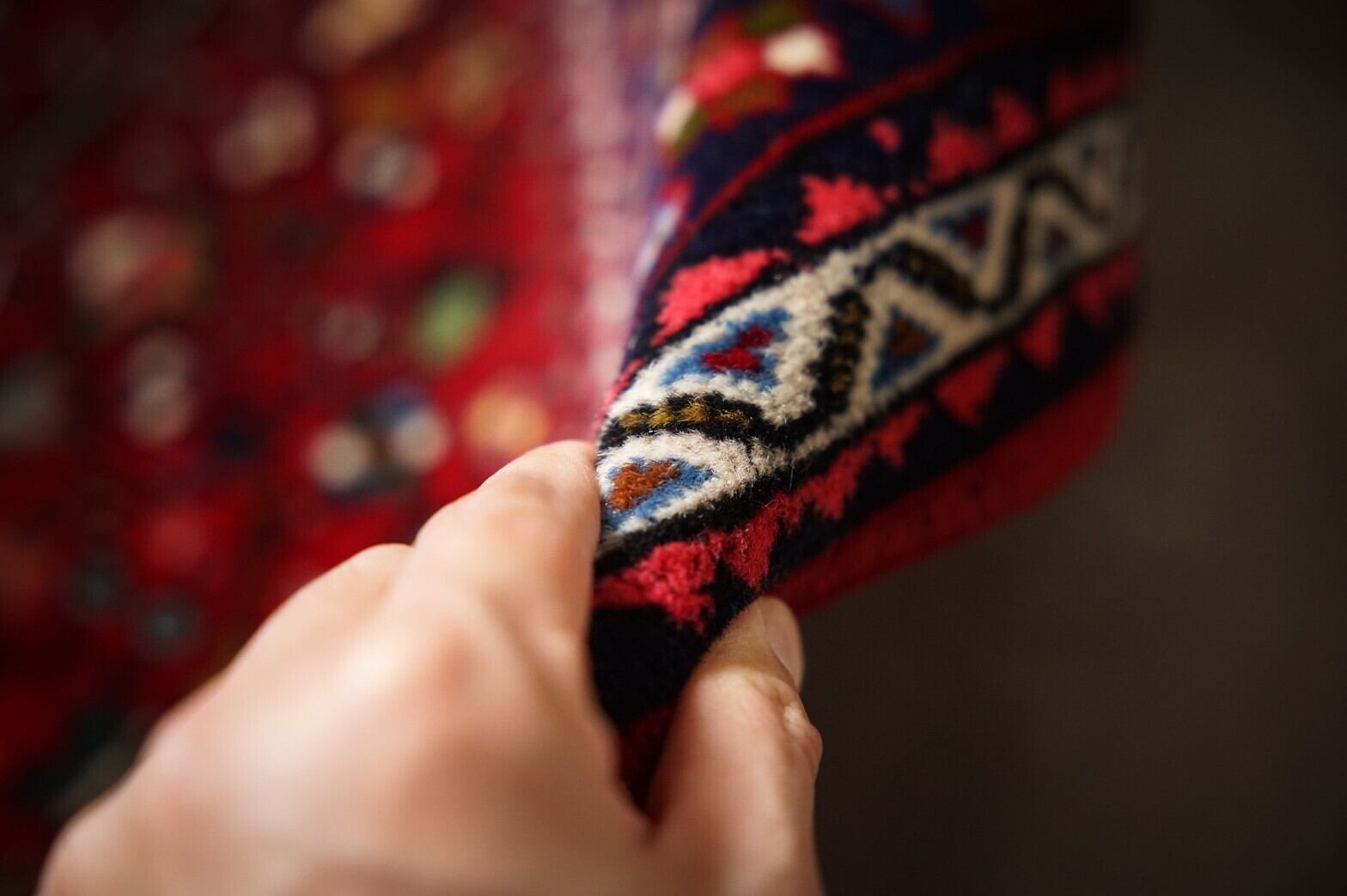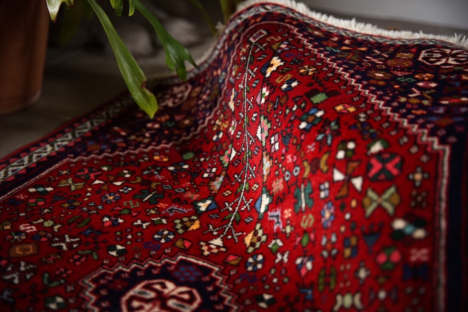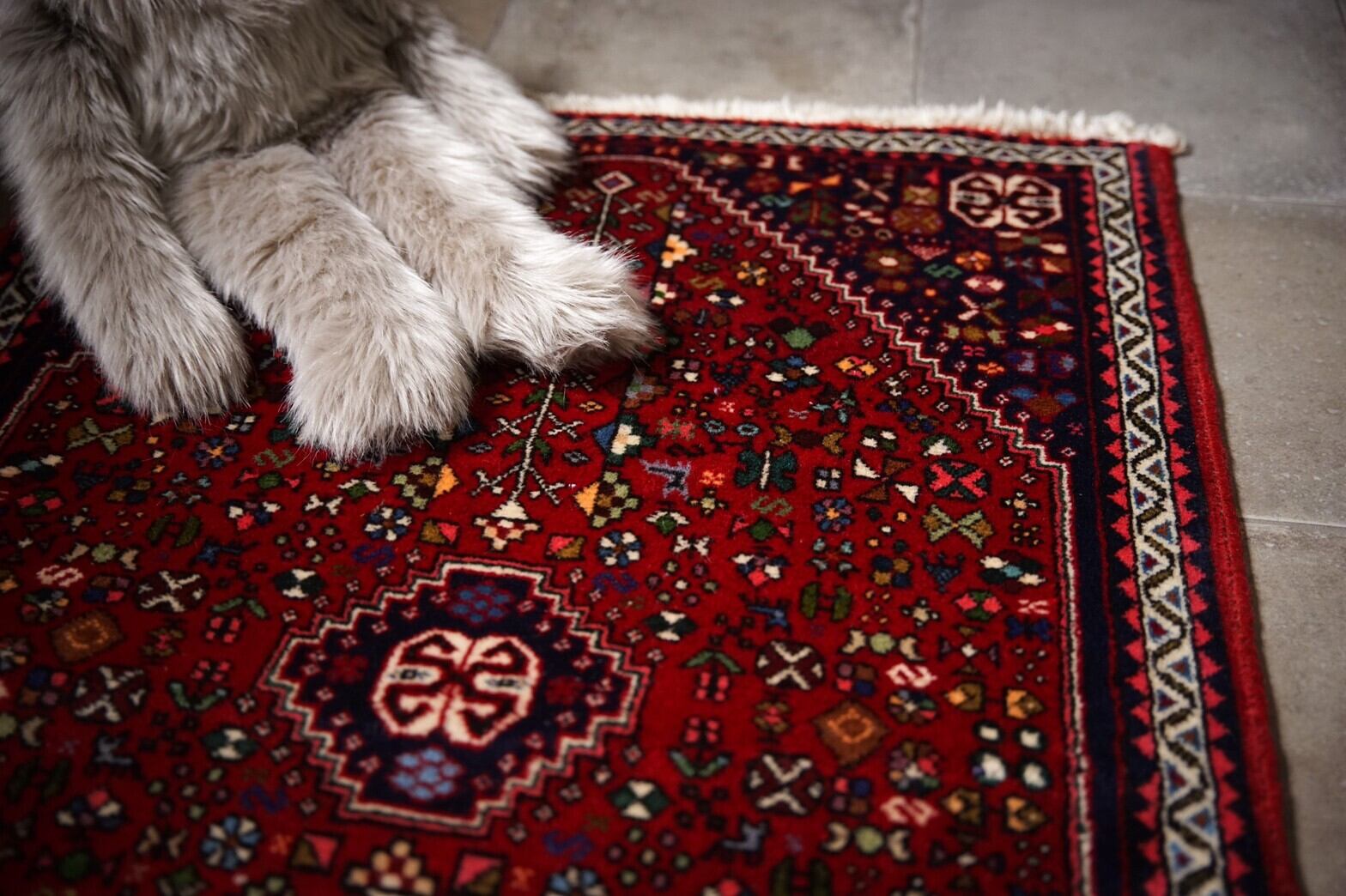 玄関マットサイズのカシュガイラグ。サイズは小さいですが、フィールドにはカシュガイラグの特徴でもある細かくて華やかなモチーフがたくさん並んでいます。小さいながら動物もたくさんいますよ♪猫のような動物もいるので猫好きの方にも。密度の詰まった細かい織りで触るとすべすべと気持ちいいです。裏面はレザーで補強されています!ダメージや補修跡はなく状態は良好。玄関マットサイズなので日本の住宅事情的には家のあらゆるシーン(キッチン、鏡の前、窓辺、玄関、ペットのお気に入りの場所として)で使い勝手の良いラグです。