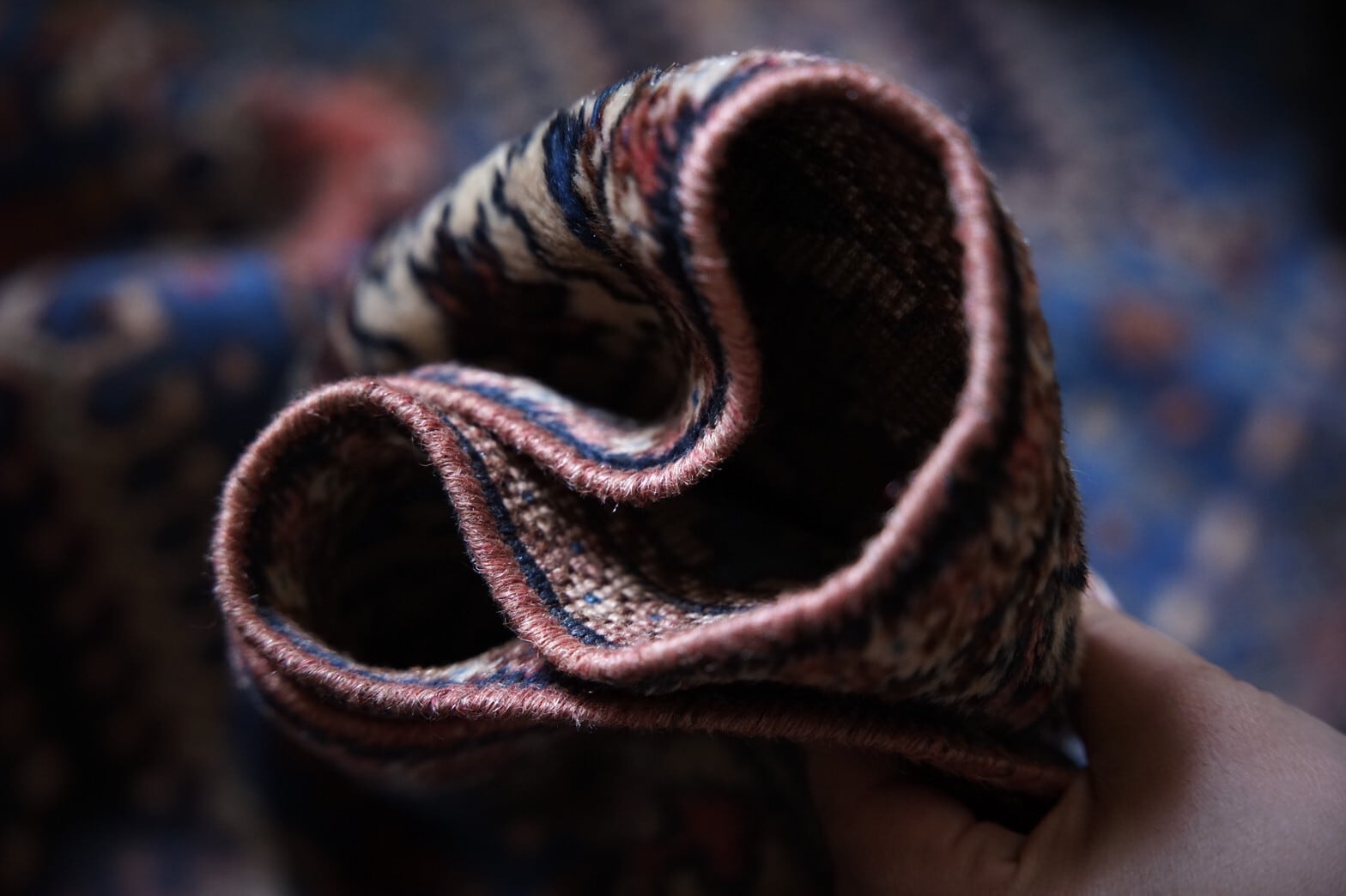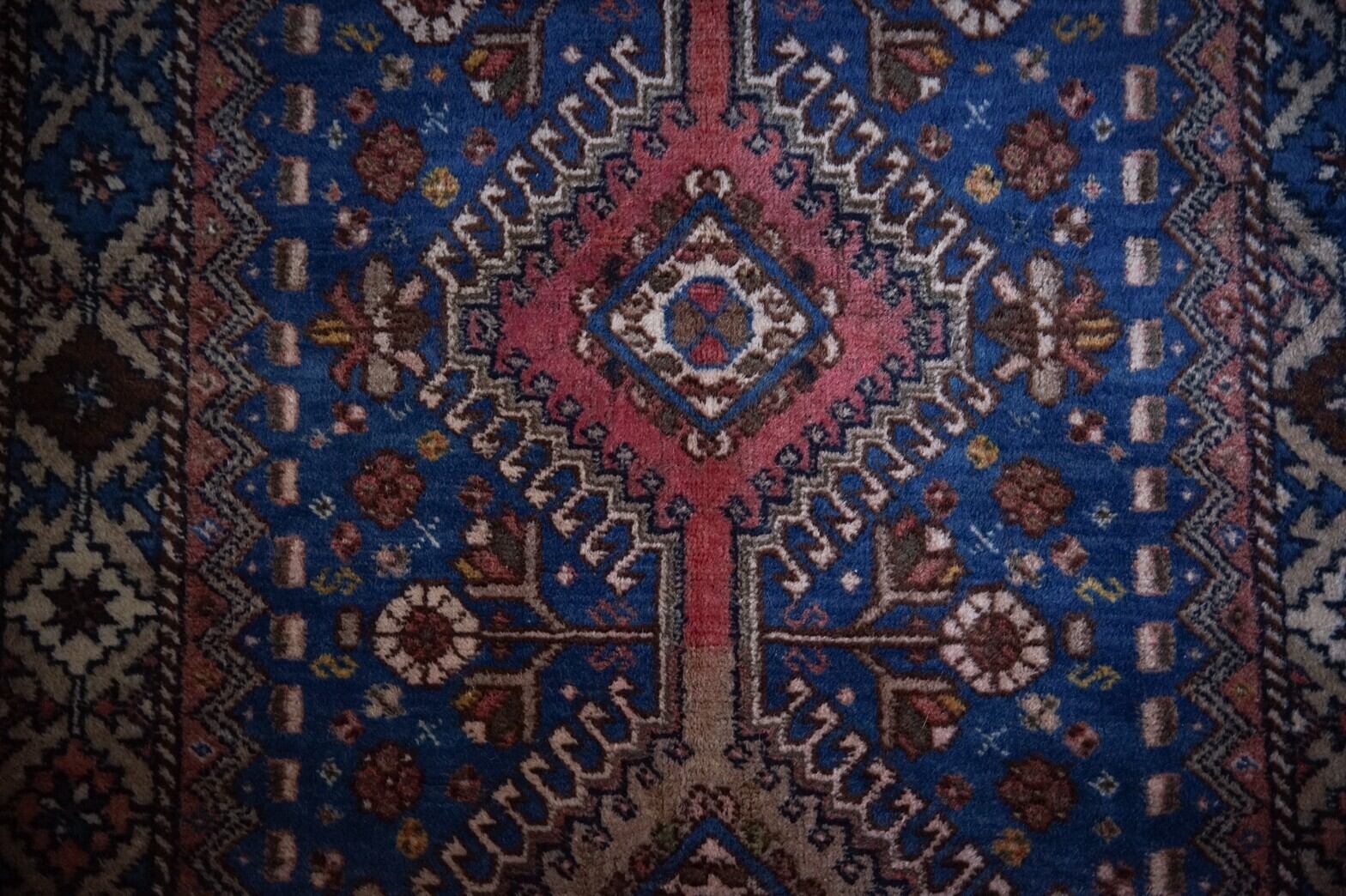 細長い形のランナーラグ。水色とアイボリー、ピンクを基調とした色合いは優しい雰囲気もありながら、ヴィンテージ特有のくすみ感がありかわいすぎないかっこよさもあります。パイルはしっかりと織り込まれ、触り心地はうっとりするくらい滑らかですべすべ。素足で乗りたくなるような感触です。ダメージや補修跡はなくコンディションはかなり良いのでランナーラグをお探しの方にはかなりおすすめです!植物との相性もバッチリ!キッチンや窓辺、玄関、廊下に敷いたりするのにぴったりなサイズ感。細長い形を生かして他のラグと重ね敷きするのも良さそうです♪