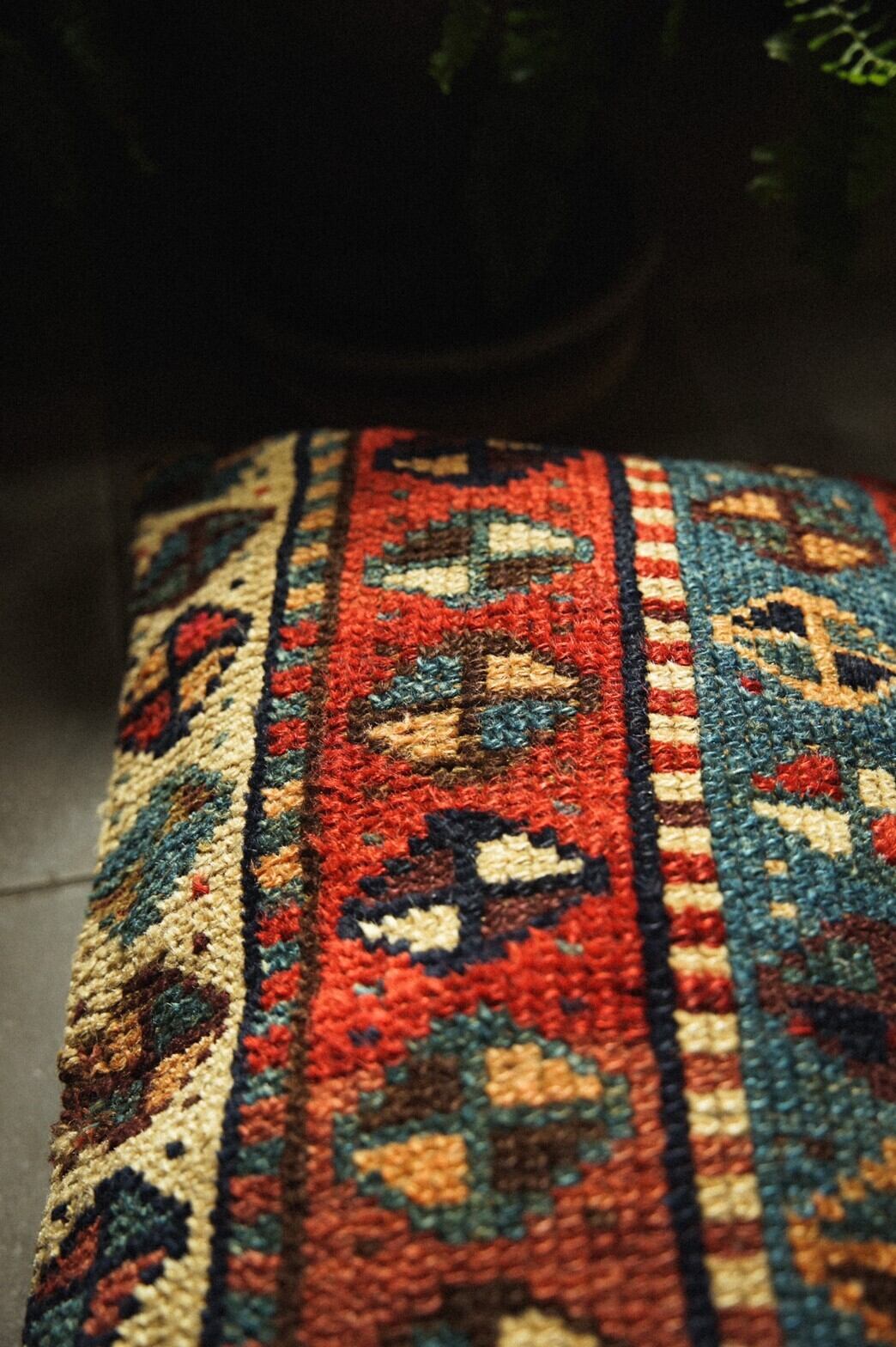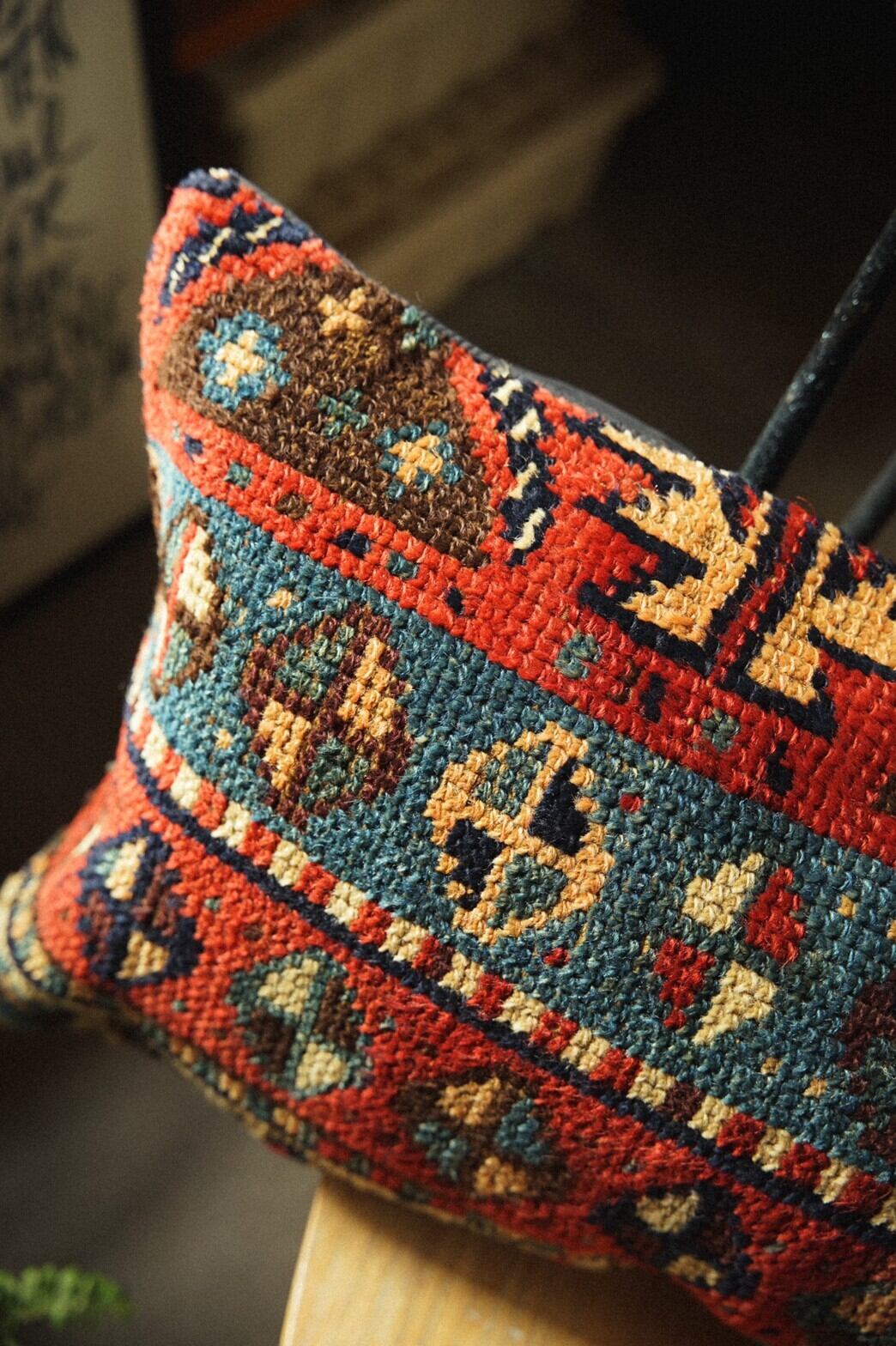 80年前のセミアンティークのラグを再利用して作られたクッションカバーです。