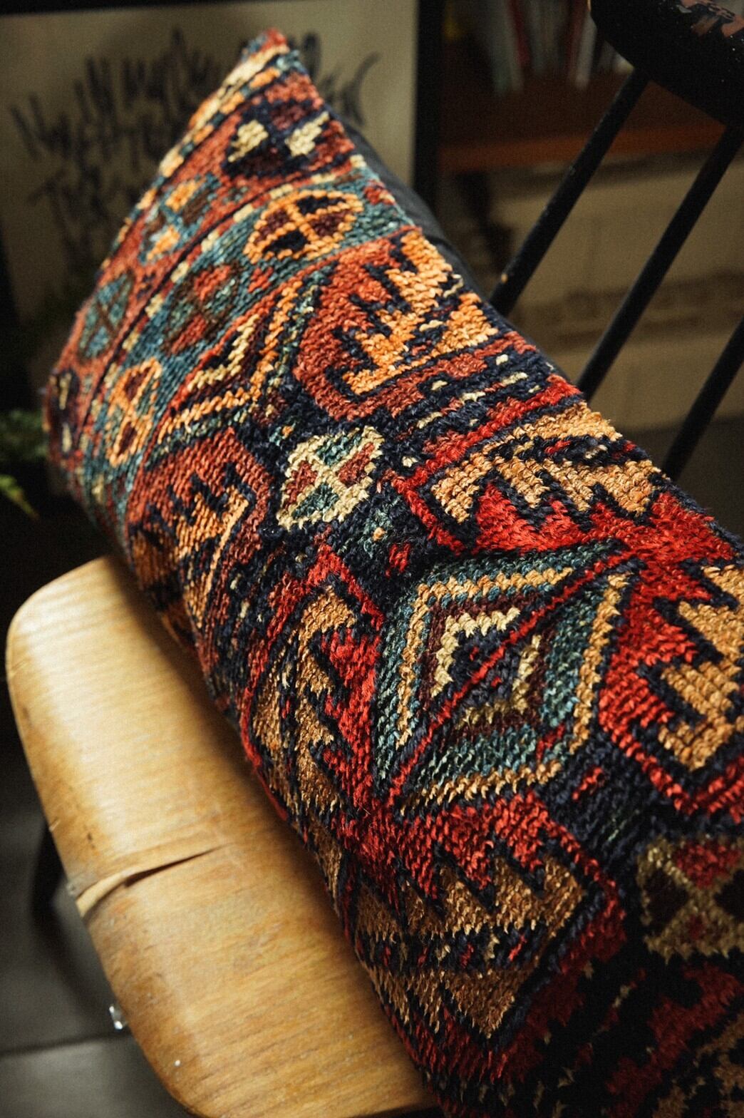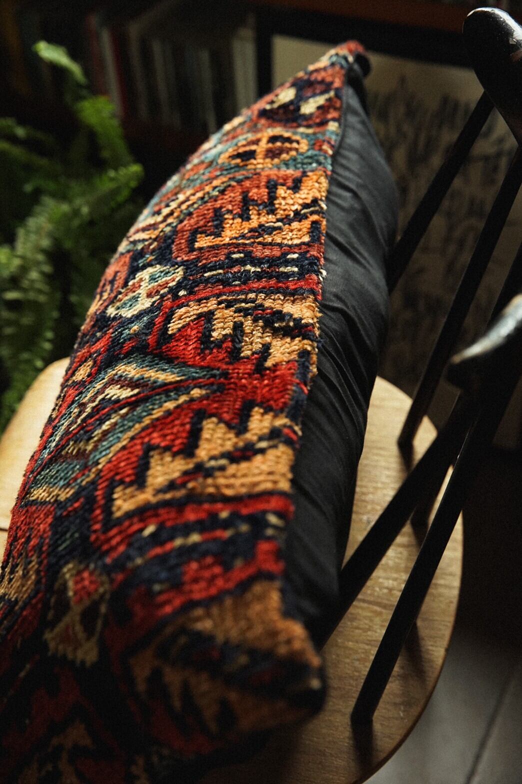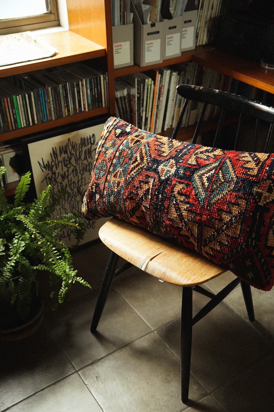80年前のセミアンティークのラグを再利用して作られたクッションカバーです。