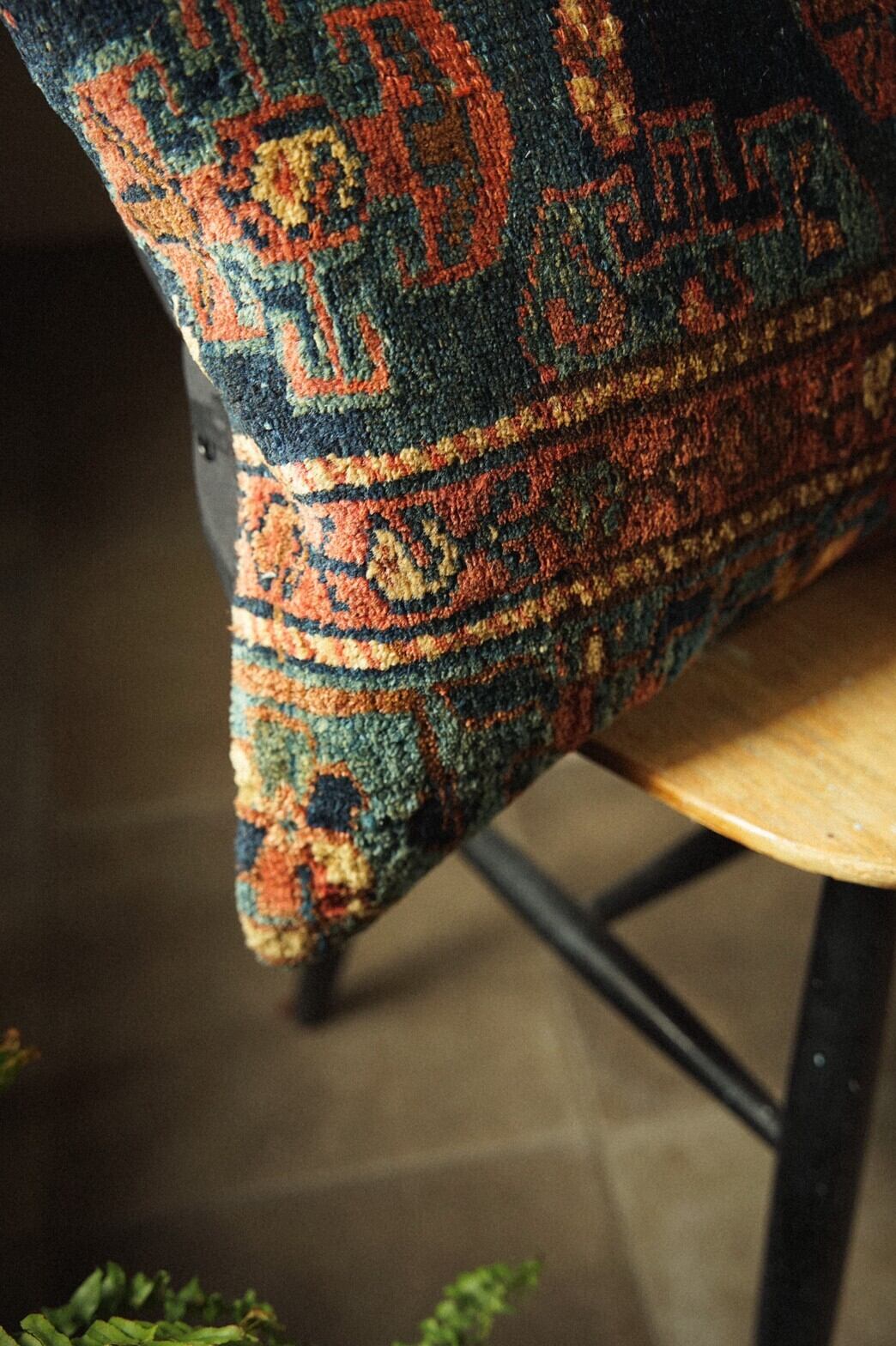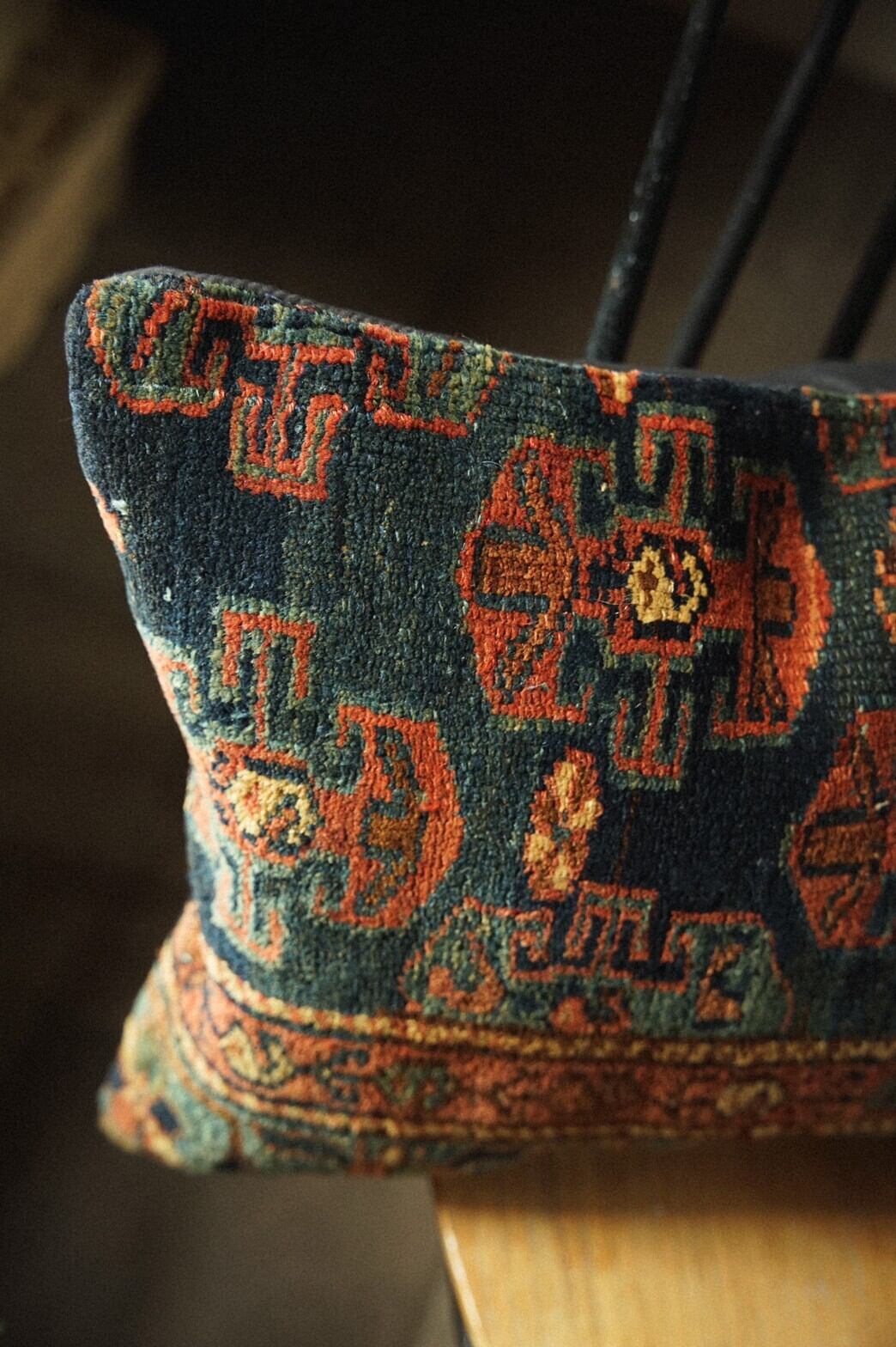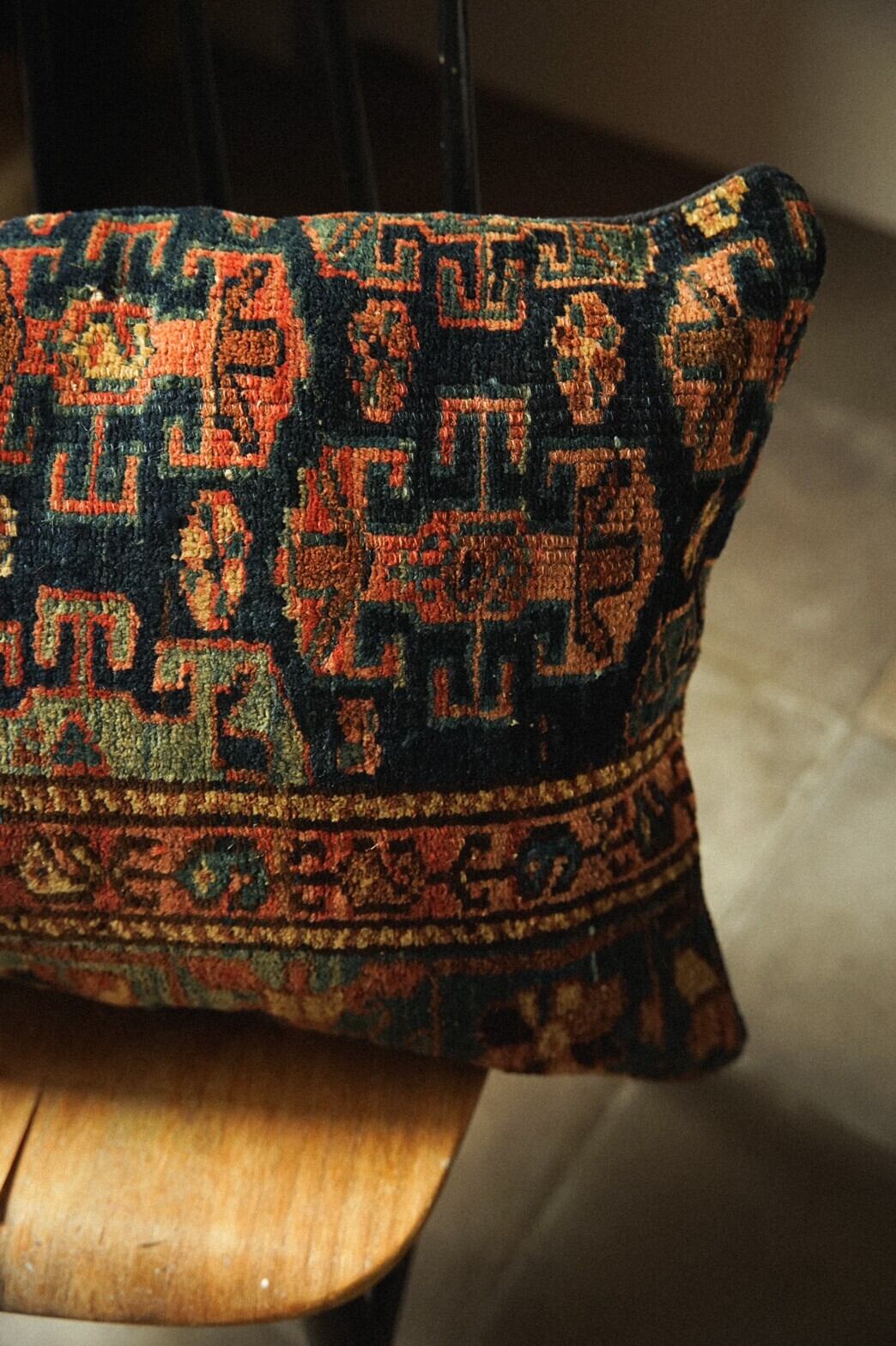 80年前のセミアンティークのラグを再利用して作られたクッションカバーです。