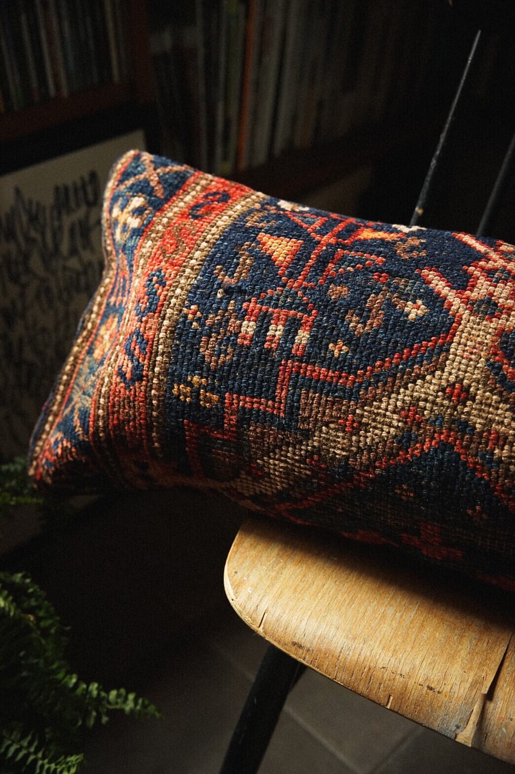 80年前のセミアンティークのラグを再利用して作られたクッションカバーです。