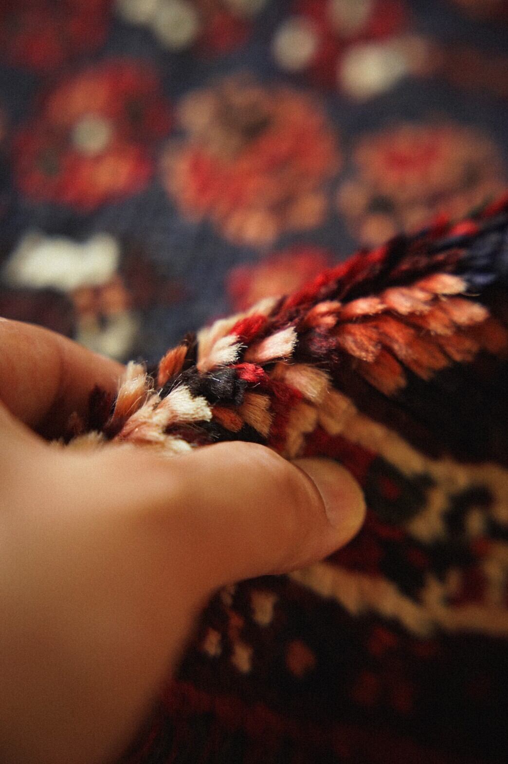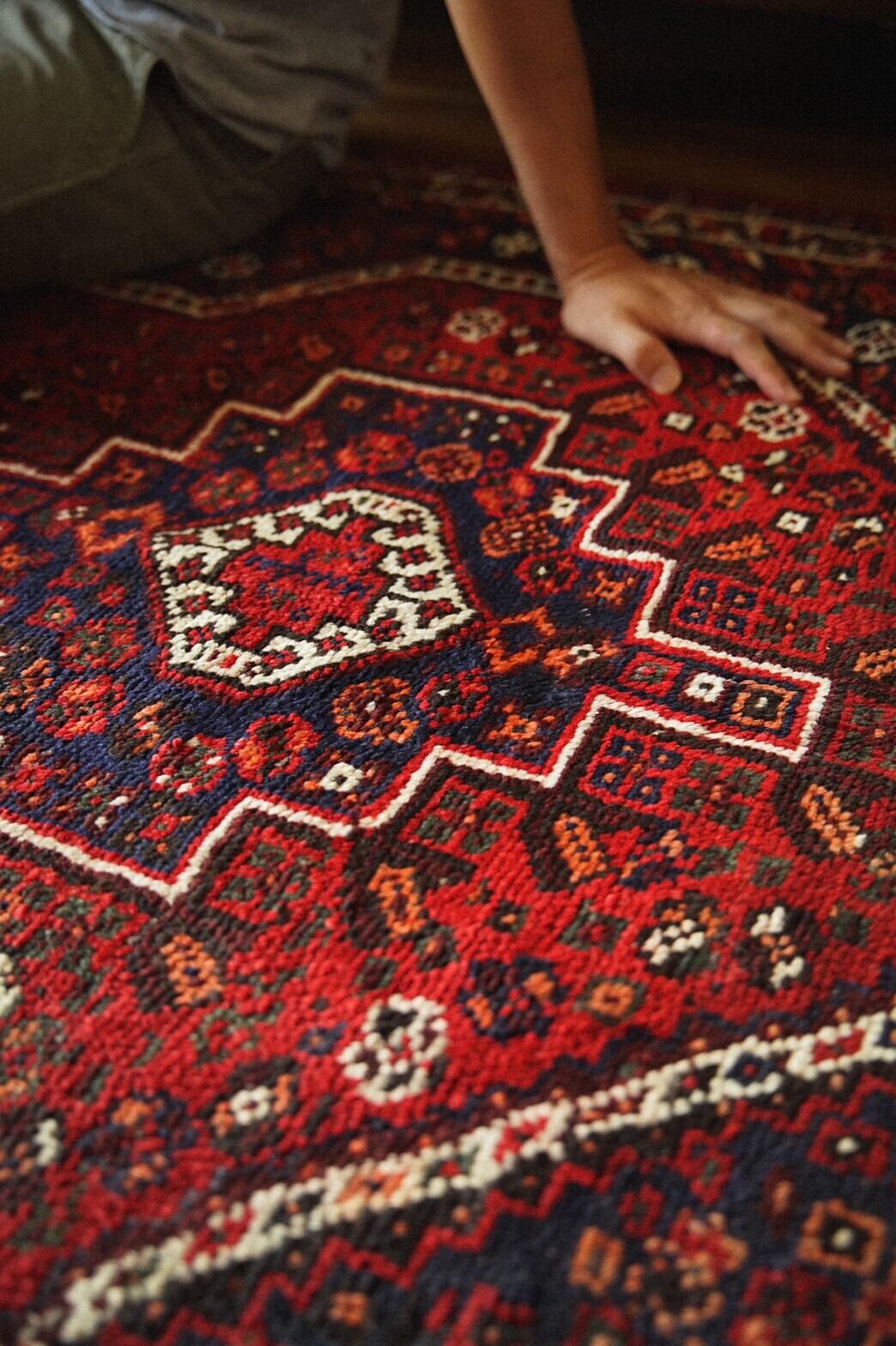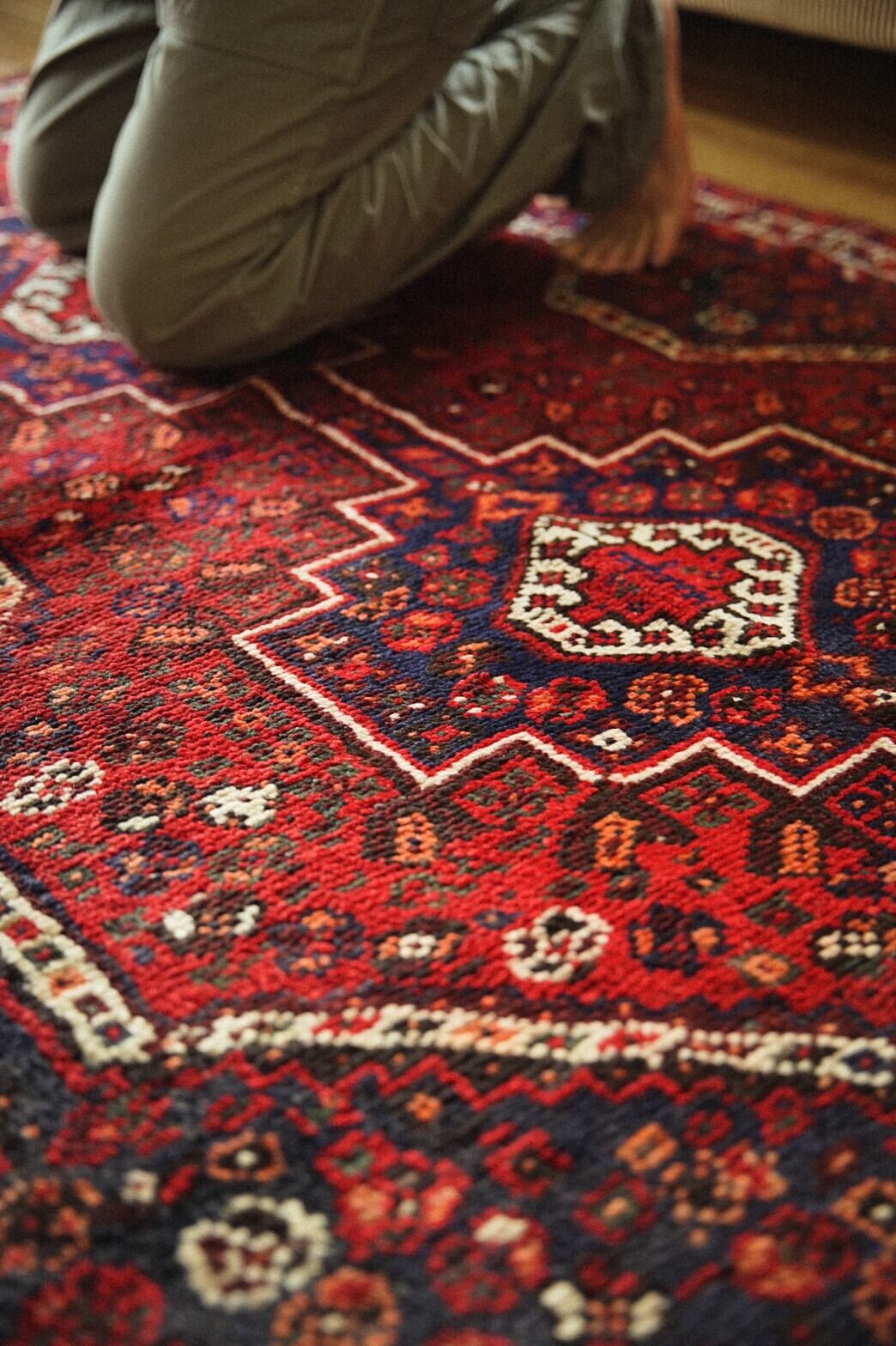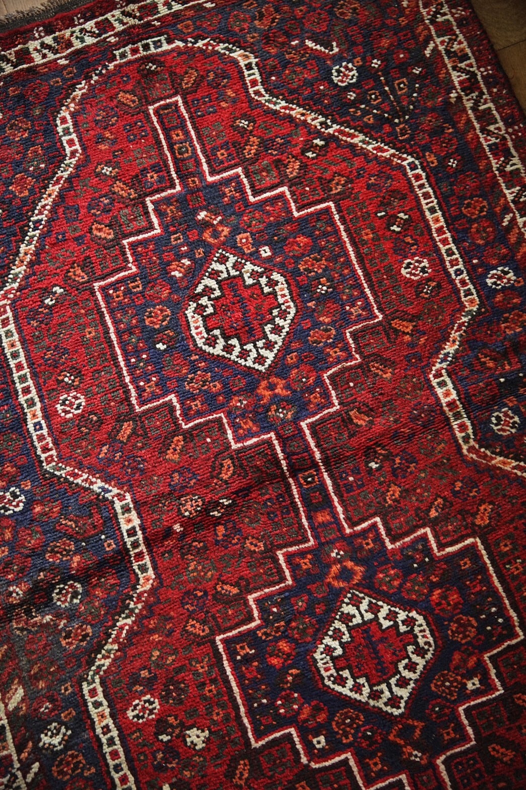 程よい厚みと二人掛けソファにピッタリのサイズ感、艶もあり素晴らしいコンディションで初めてヴィンテージラグのご購入を検討されている方にもおすすめのカシュガイラグです。