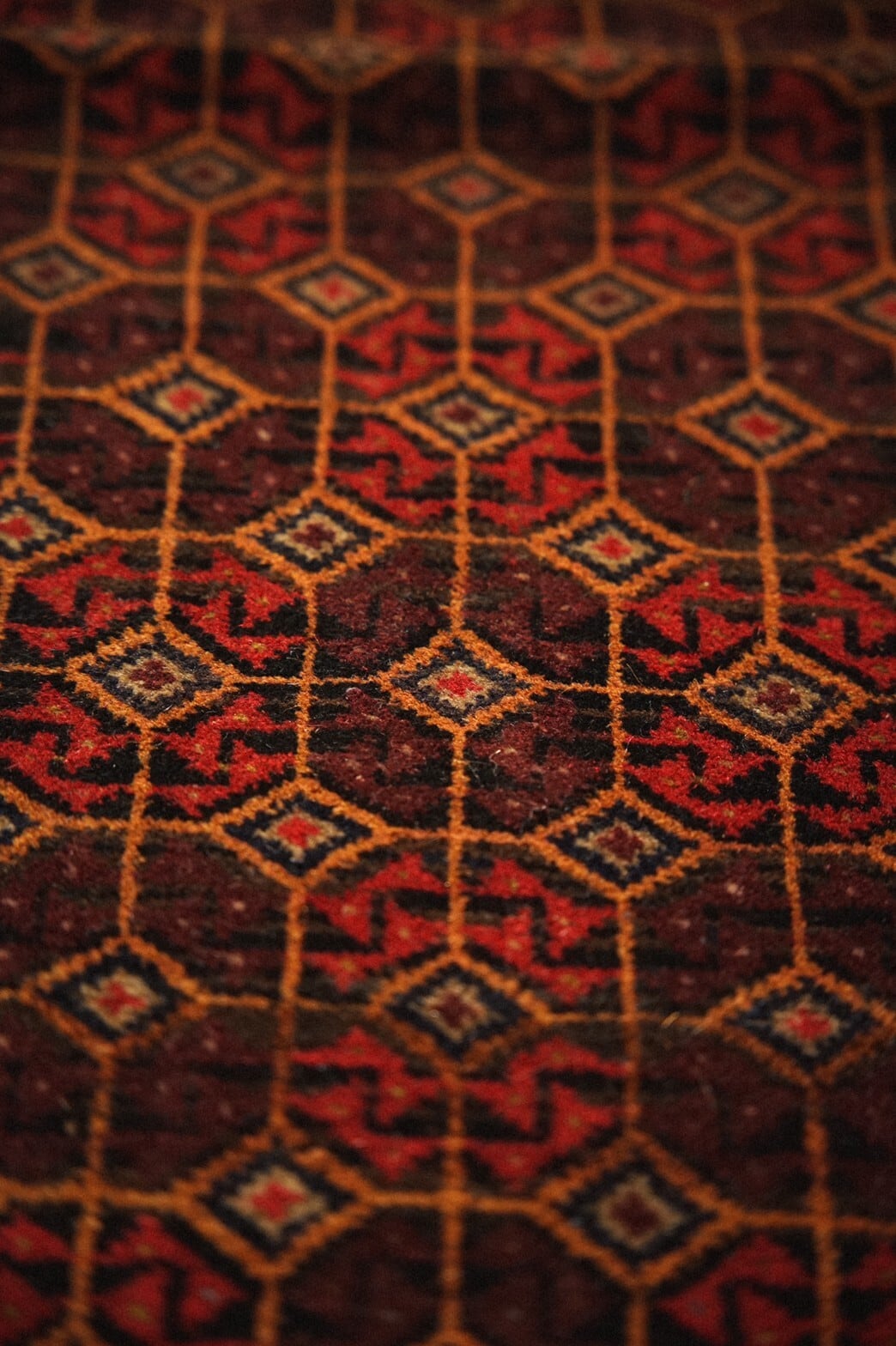 ブラウン、オレンジ、レッドなどの深みのあるこっくりとした秋色のラグ。