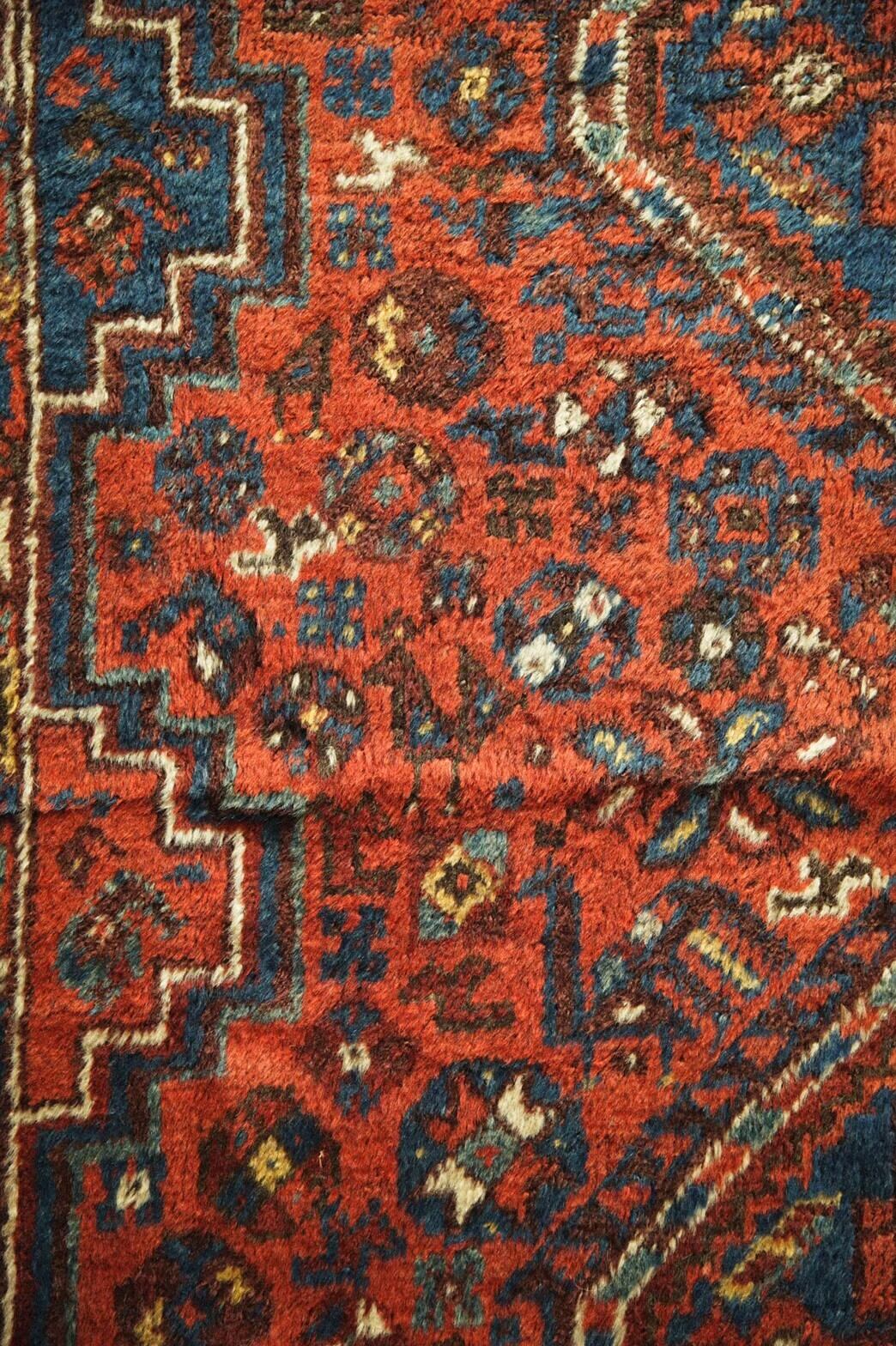 4つのメダリオンの周りにはカシュガイの定番デザインである草花木や動物がたくさん並び、ボーダー部分は可愛らしい小花柄。