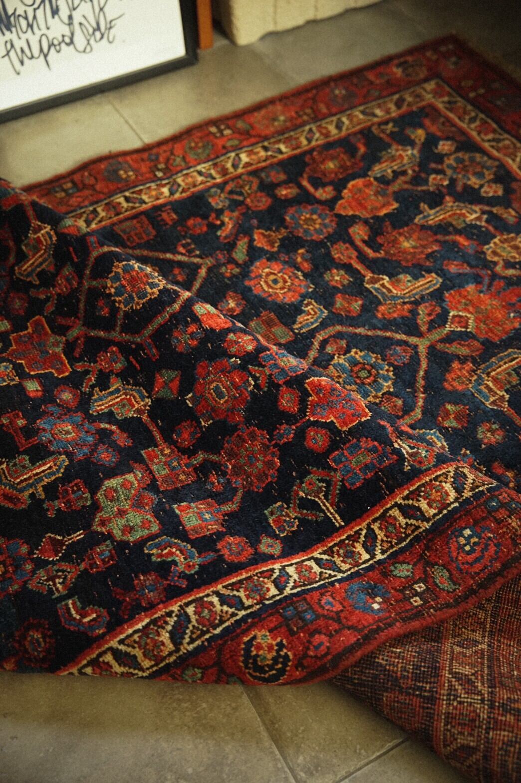 良質なペルシャ絨毯の産地として知られるハマダン州南東部のマラーイェル周辺で織られたラグ。