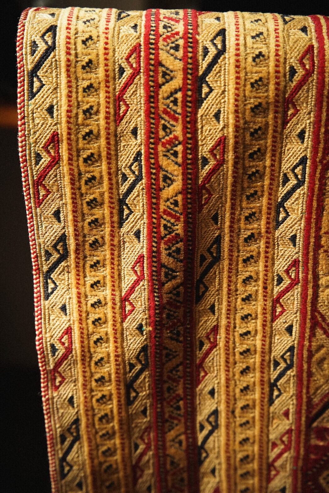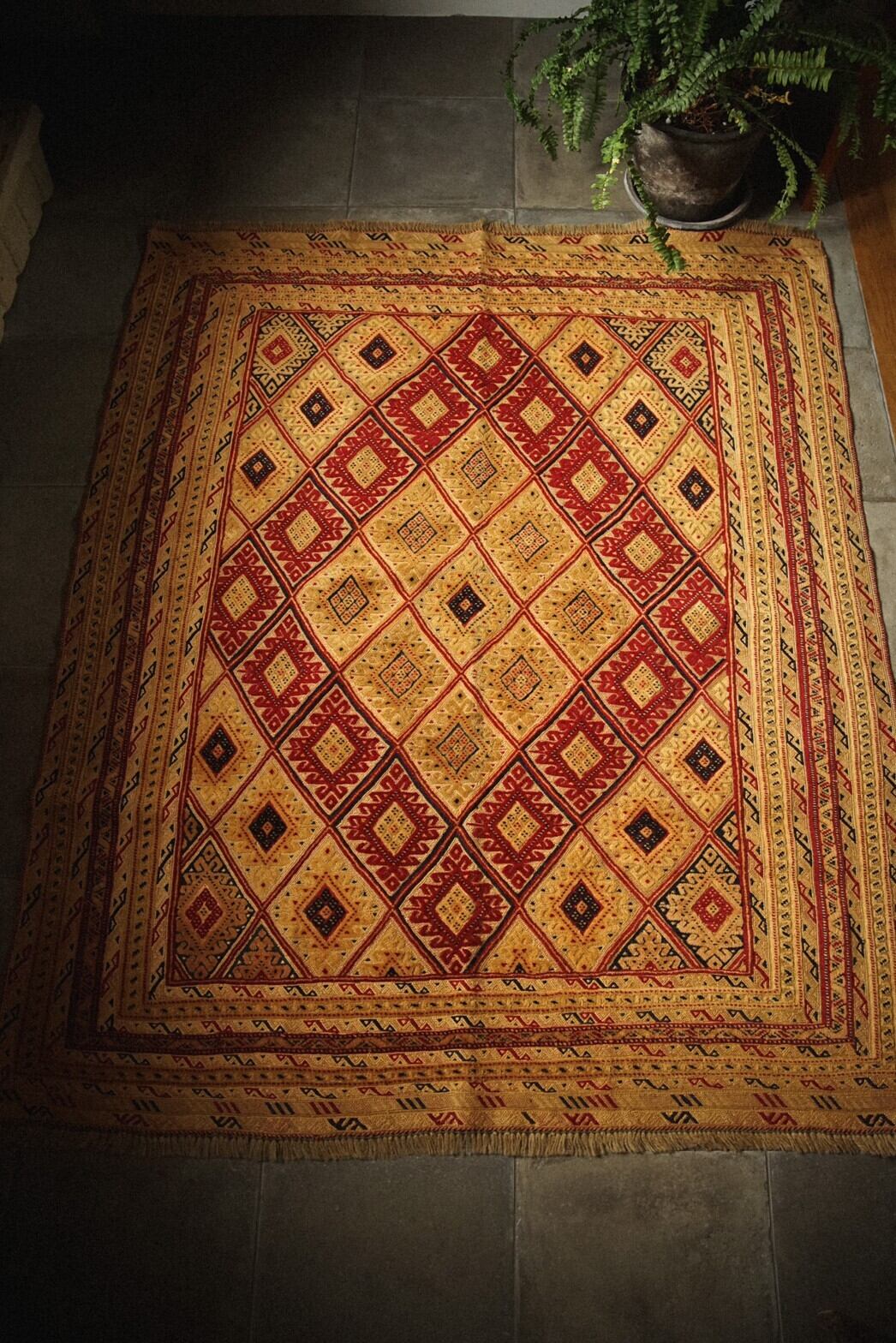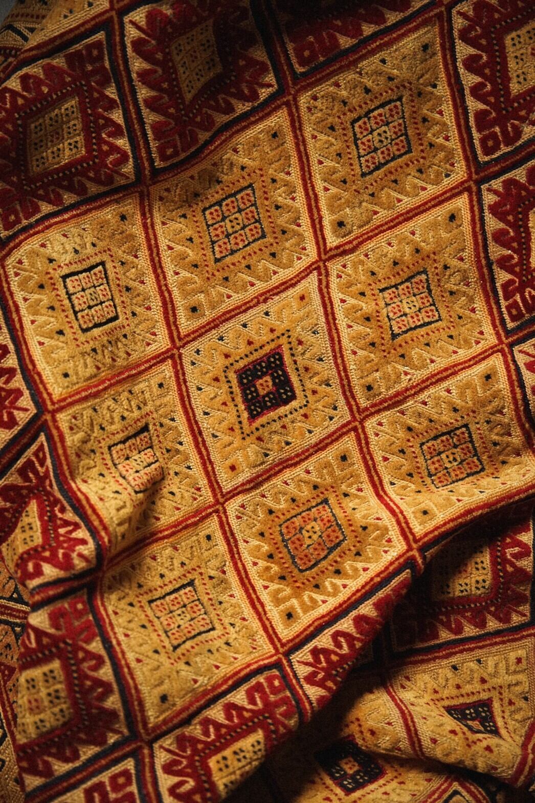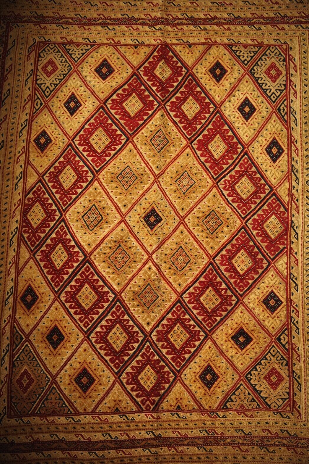 たくさん並んだ菱形模様が凹凸のある立体的な織りで浮き上がって見えるのが特徴的なマシュワニラグです。