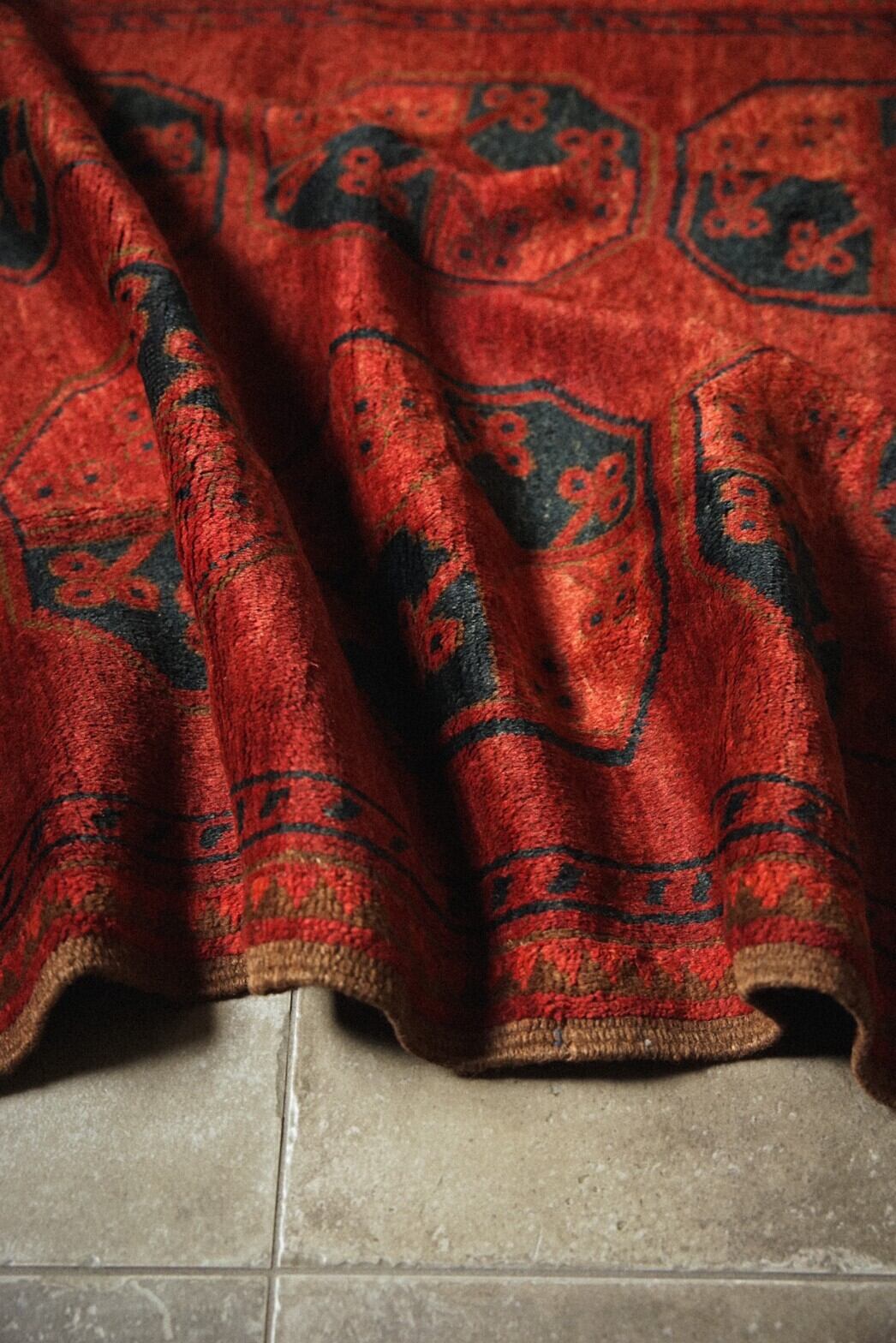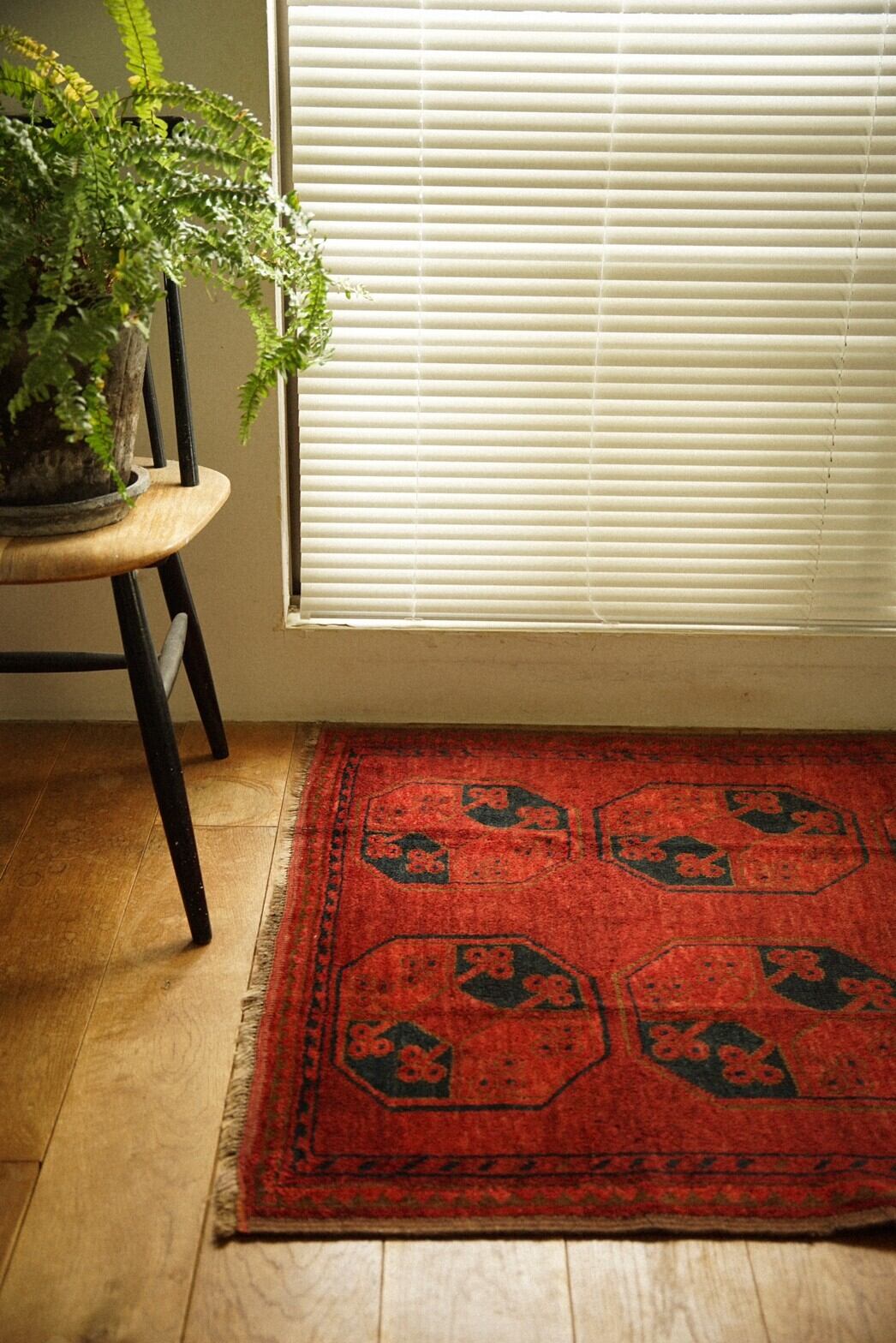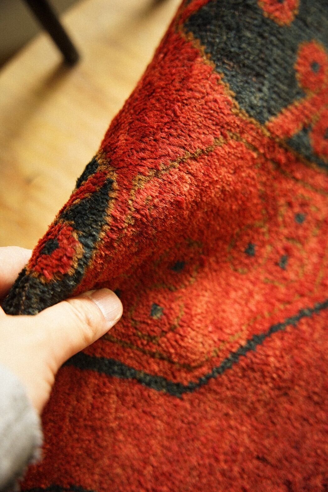 大切に保管されていたようで、目立ったダメージや補修跡はなくグッドコンディション。トルクメンラグならではの密度の詰まった細かい織りは手触りもとても滑らか。