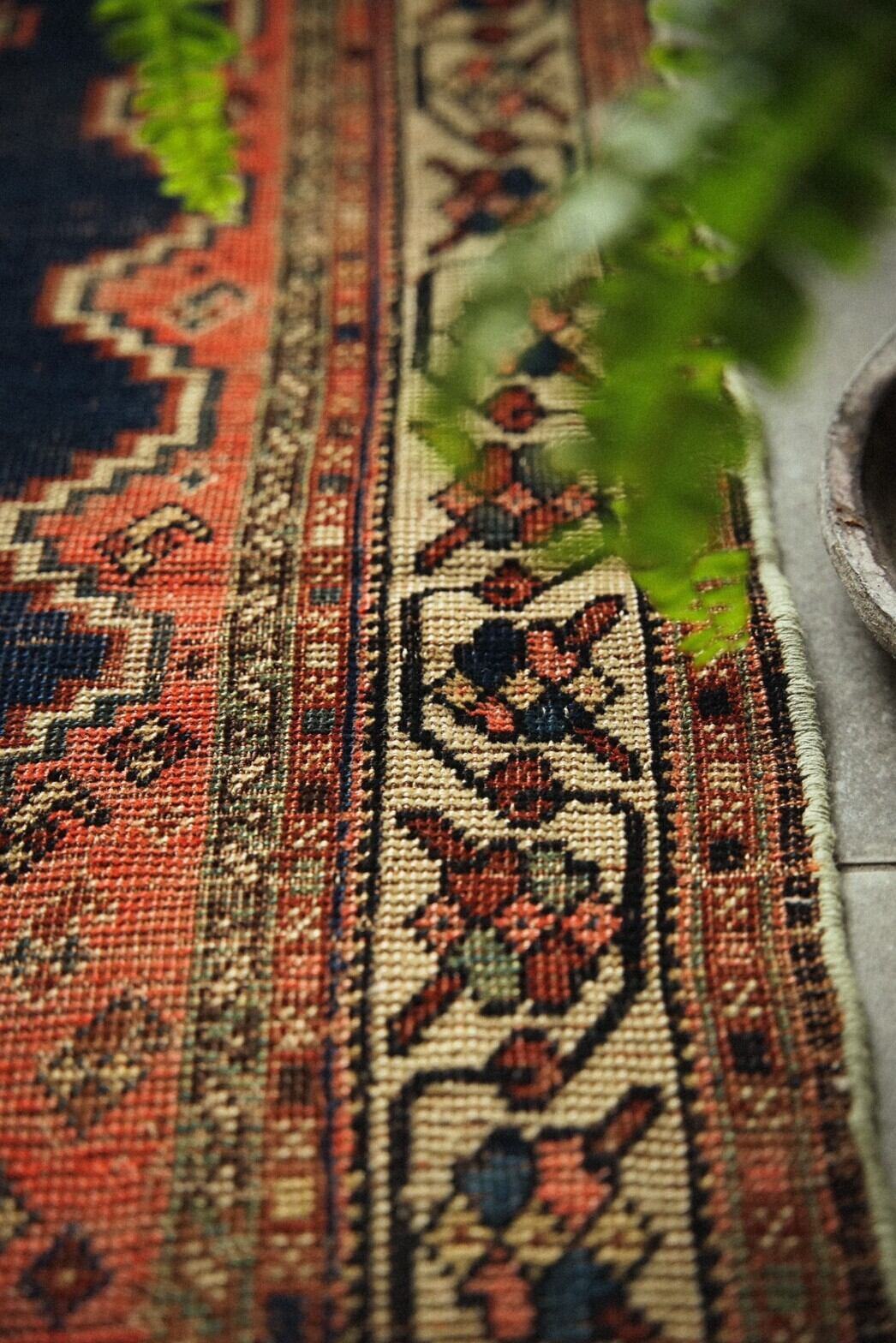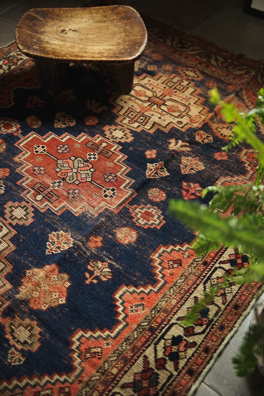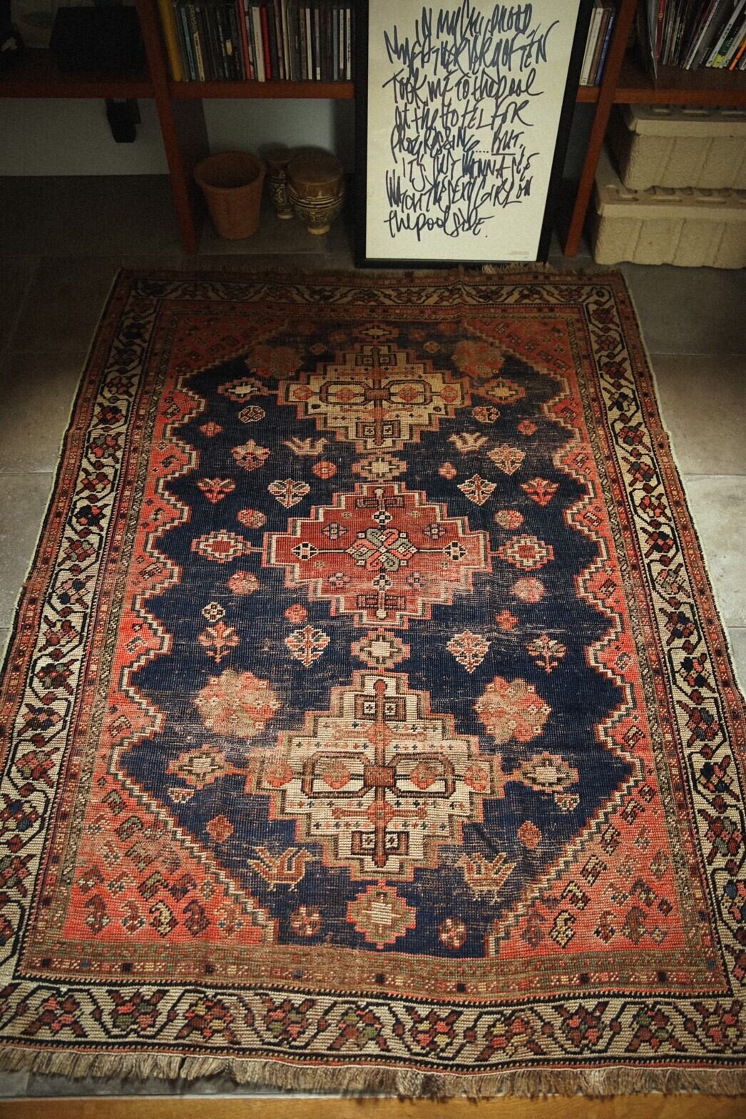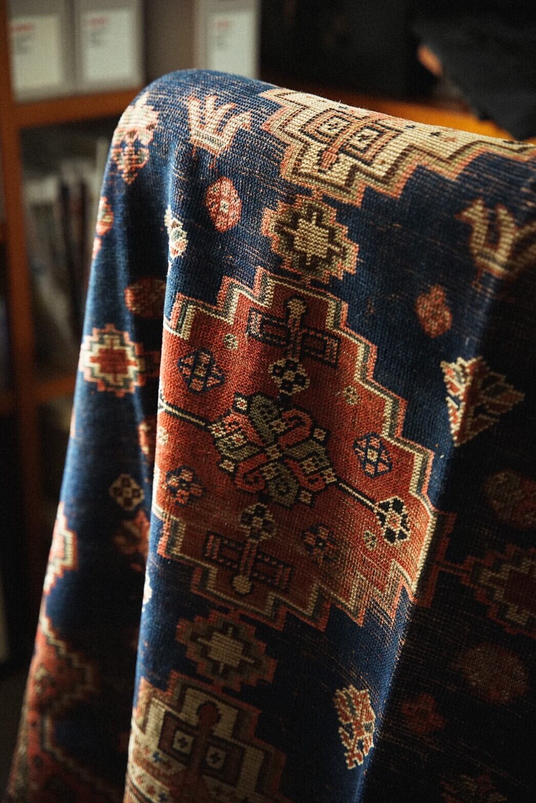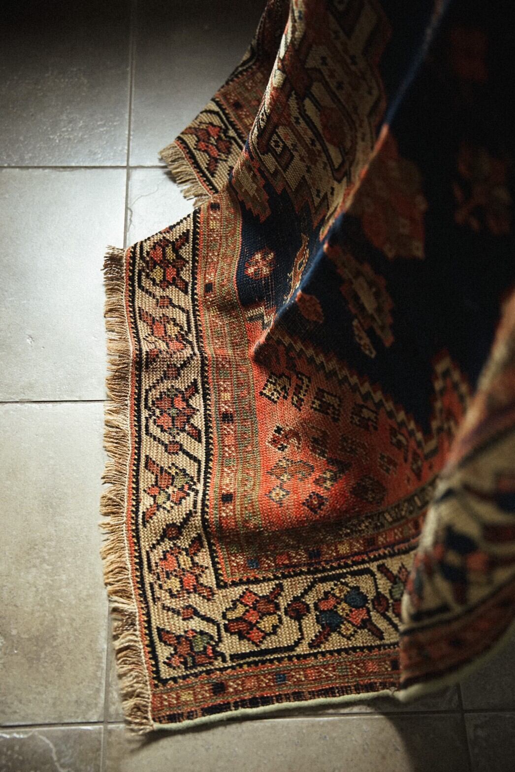経年変化によって色味は味わいが増し、クタクタ感のある柔らかな手触りになったラグはアンティークラグが好きな方にはたまらないですよね。