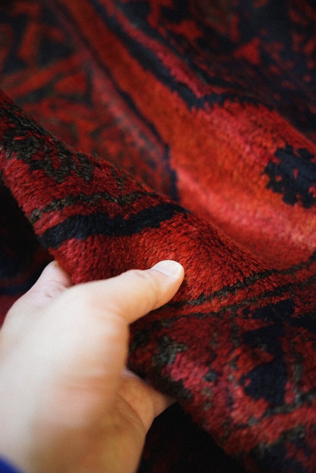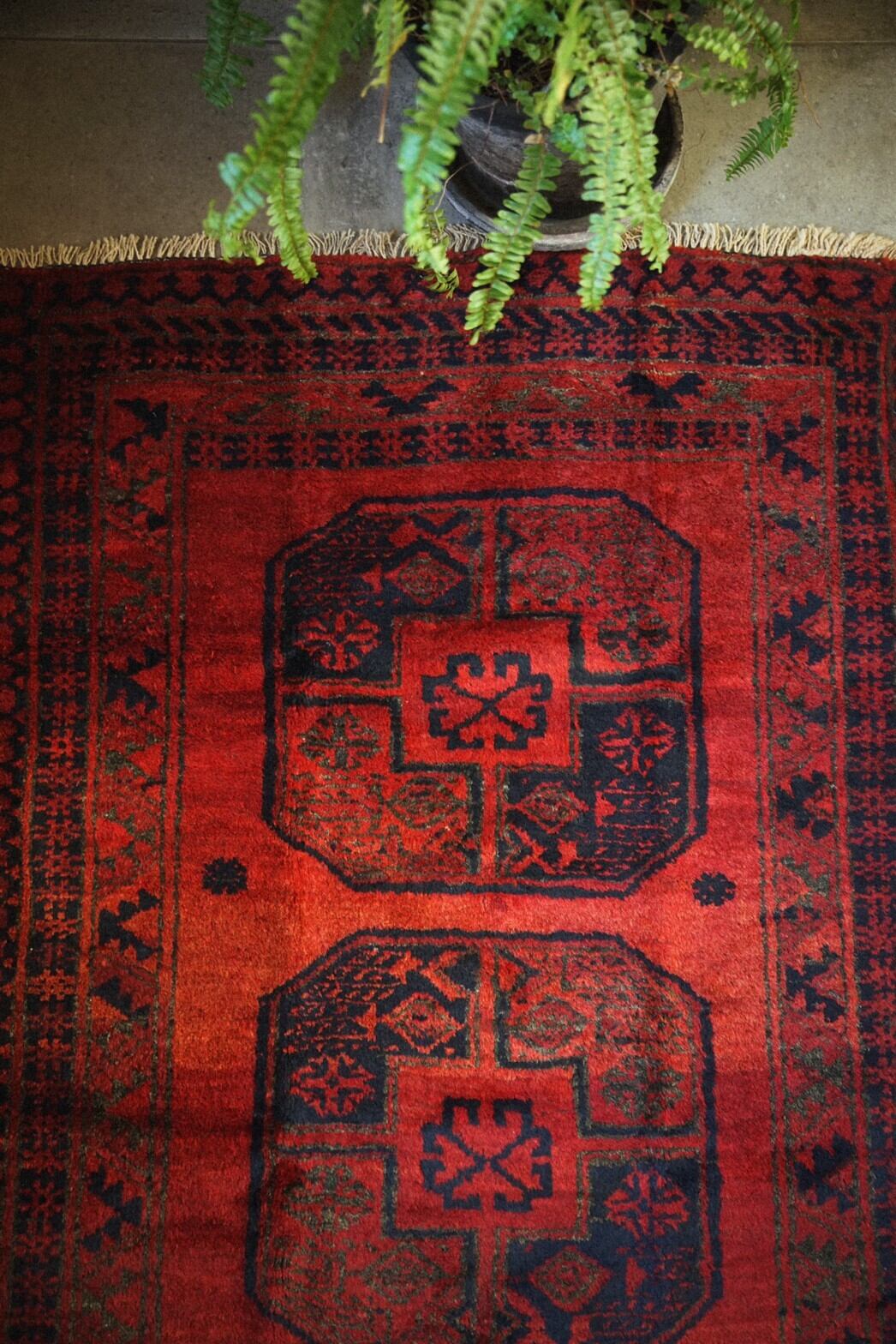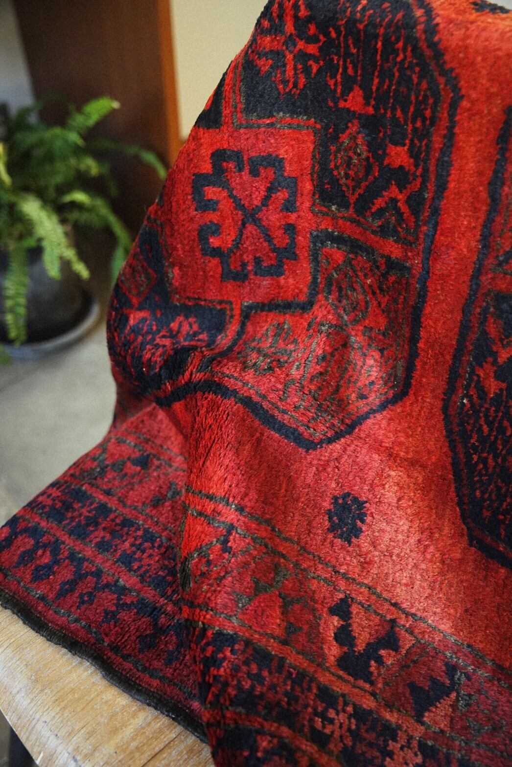 トルクメン族の象徴である高貴な雰囲気を感じさせる赤の絨毯。