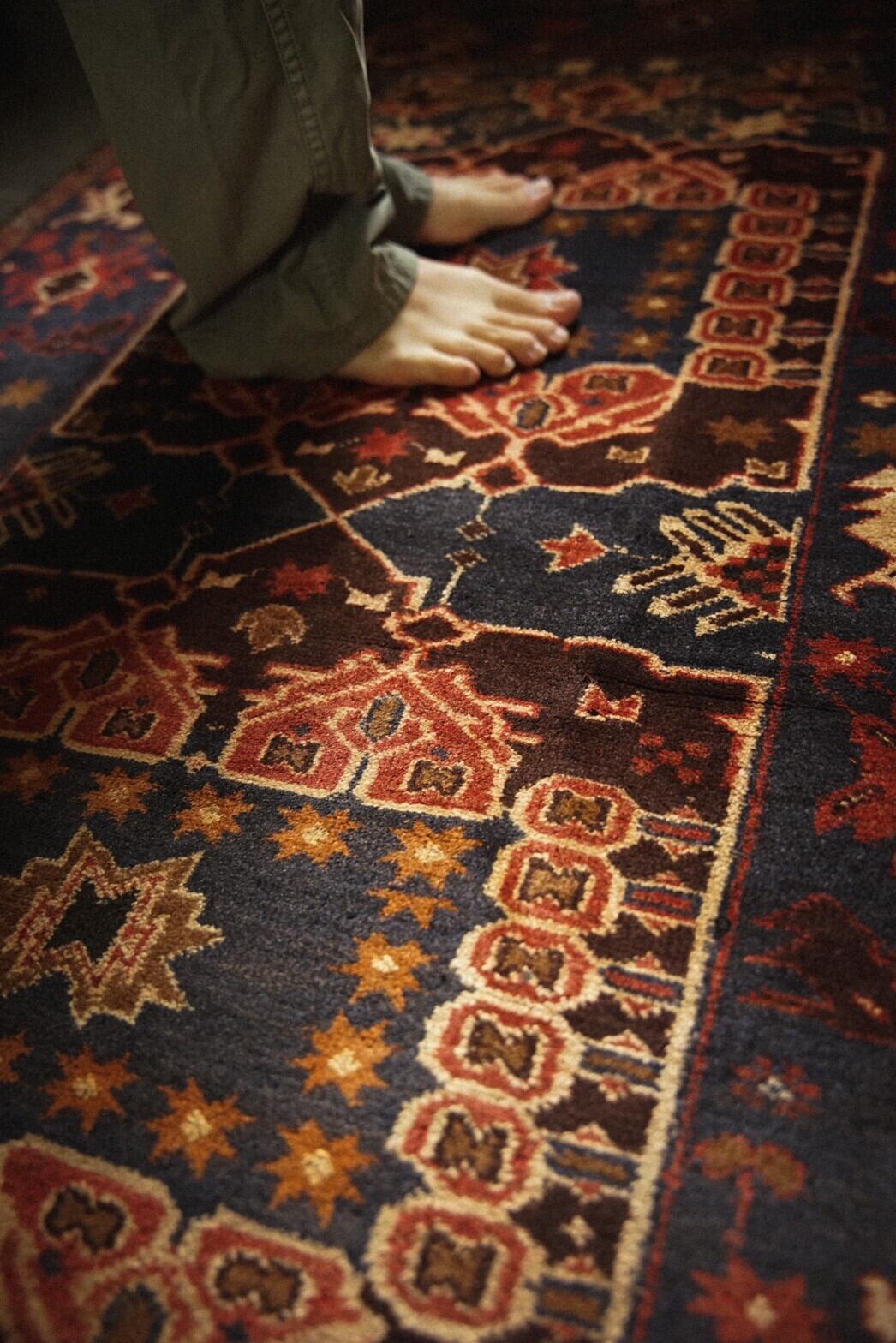 パイルは短めですが、程よい厚みもあり、しっとりと滑らかな手触りで素足で乗っても気持ちいいです。