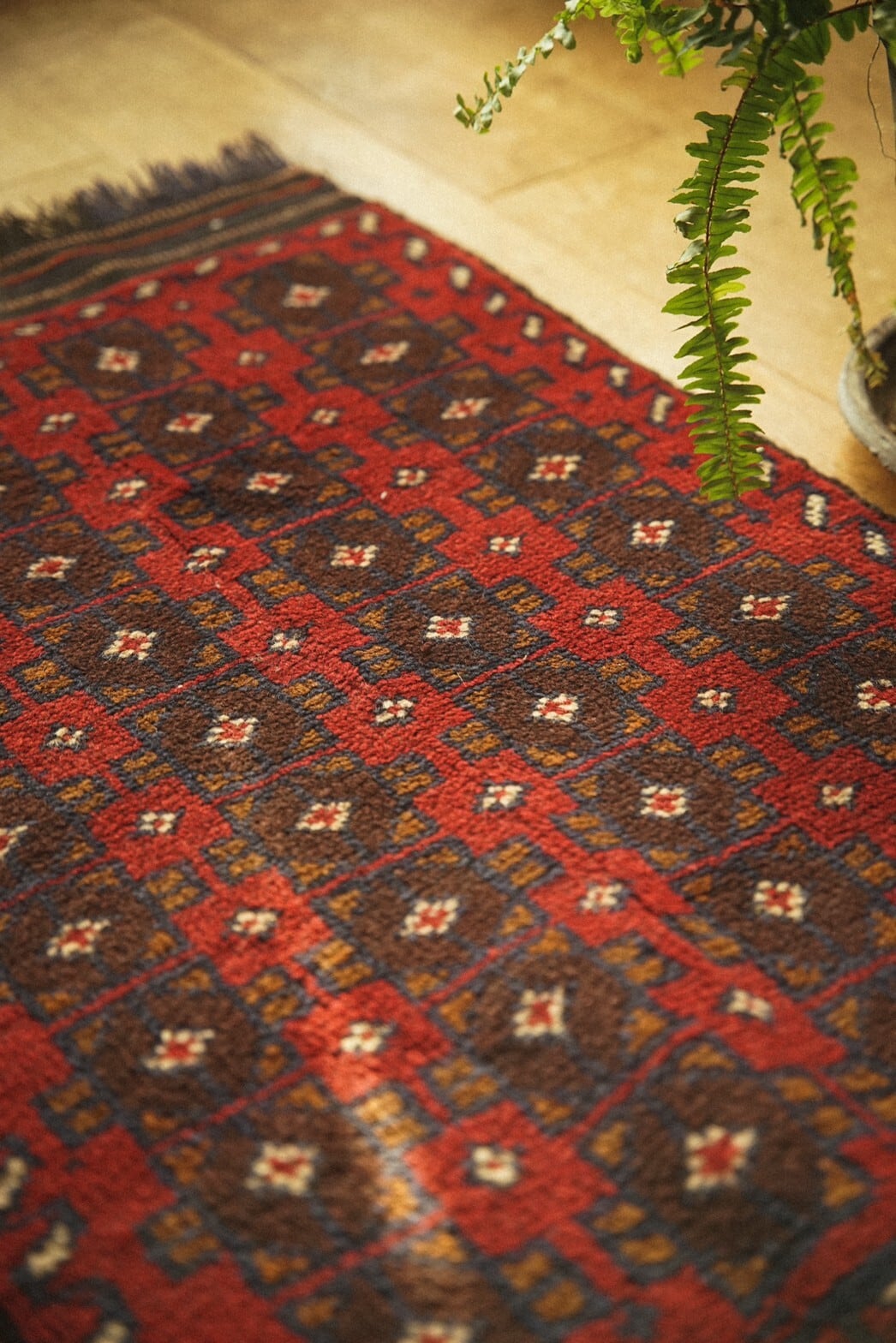 赤のフィールドにブラウンとベージュのギュルがキレイに並ぶ姿がお花のようで、レトロな雰囲気がとても可愛らしいです。