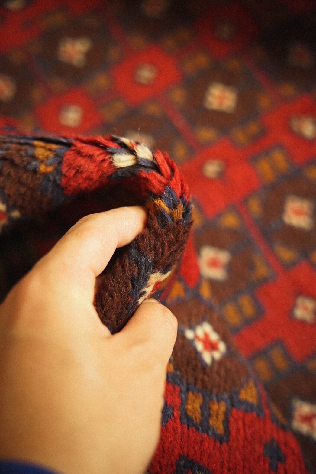 バーリシトと呼ばれる家財や食材を入れたり、屋内ではクッションとして使用される袋状のものをラグに仕立ててもらいました。