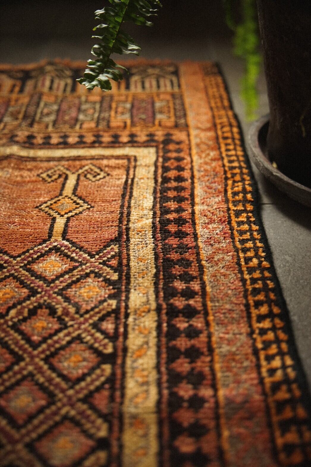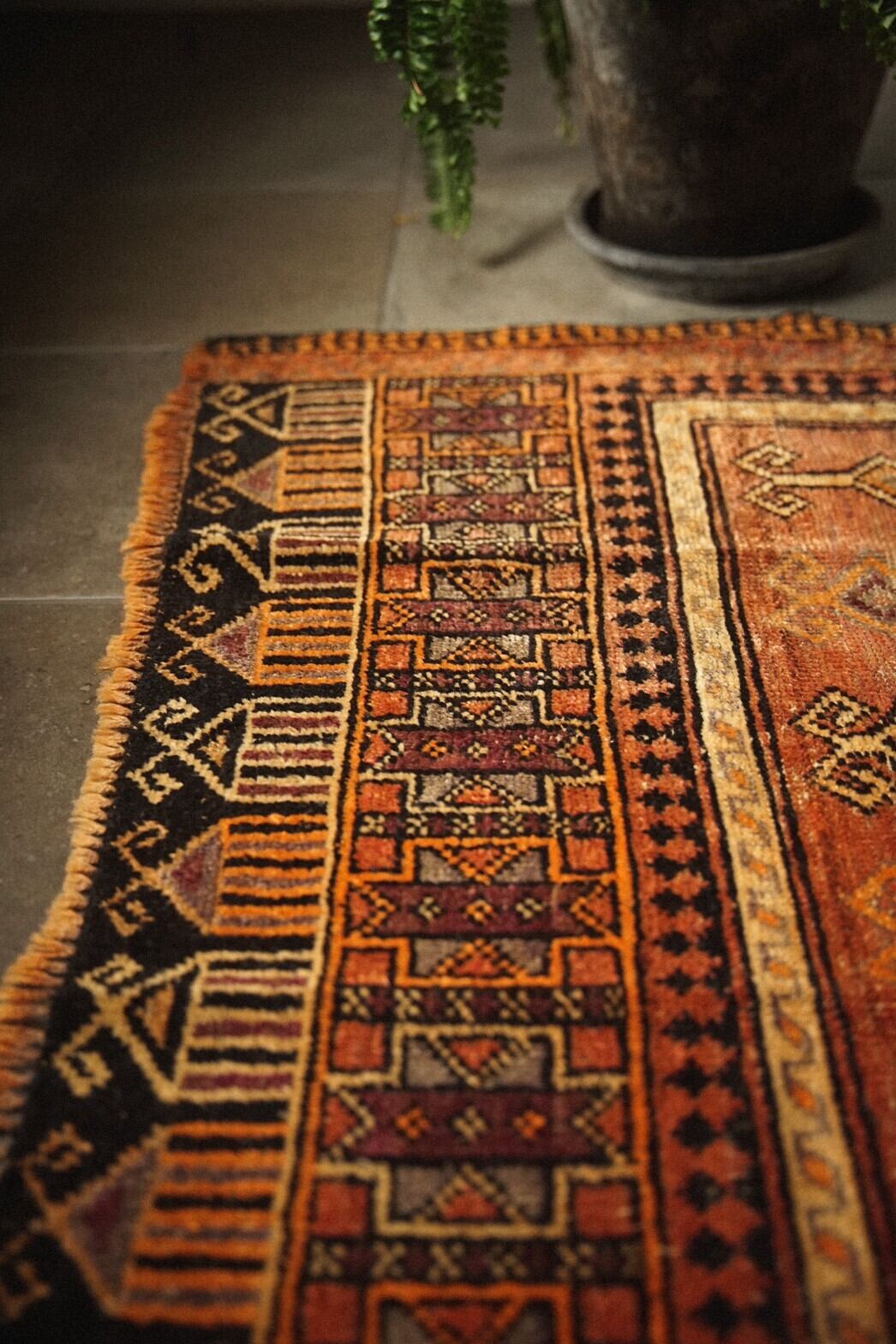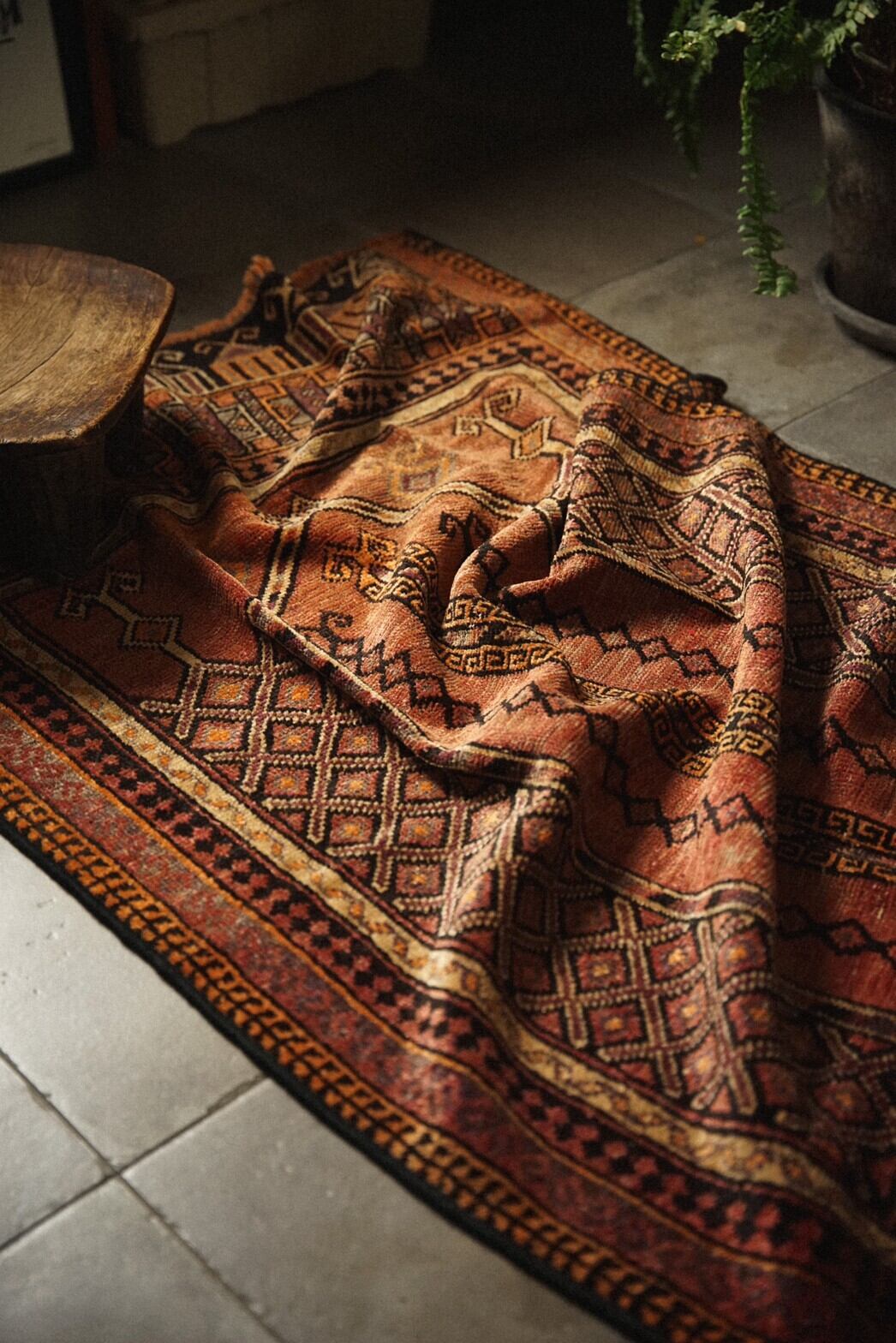 アブラッシュと呼ばれるグラデーションが美しいオレンジ色のマルダリラグ。