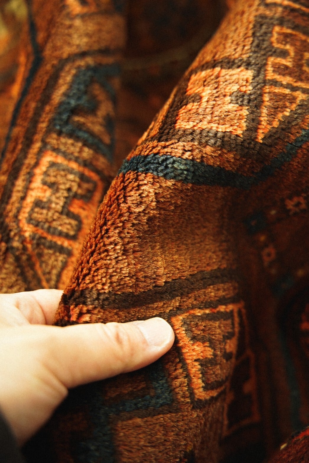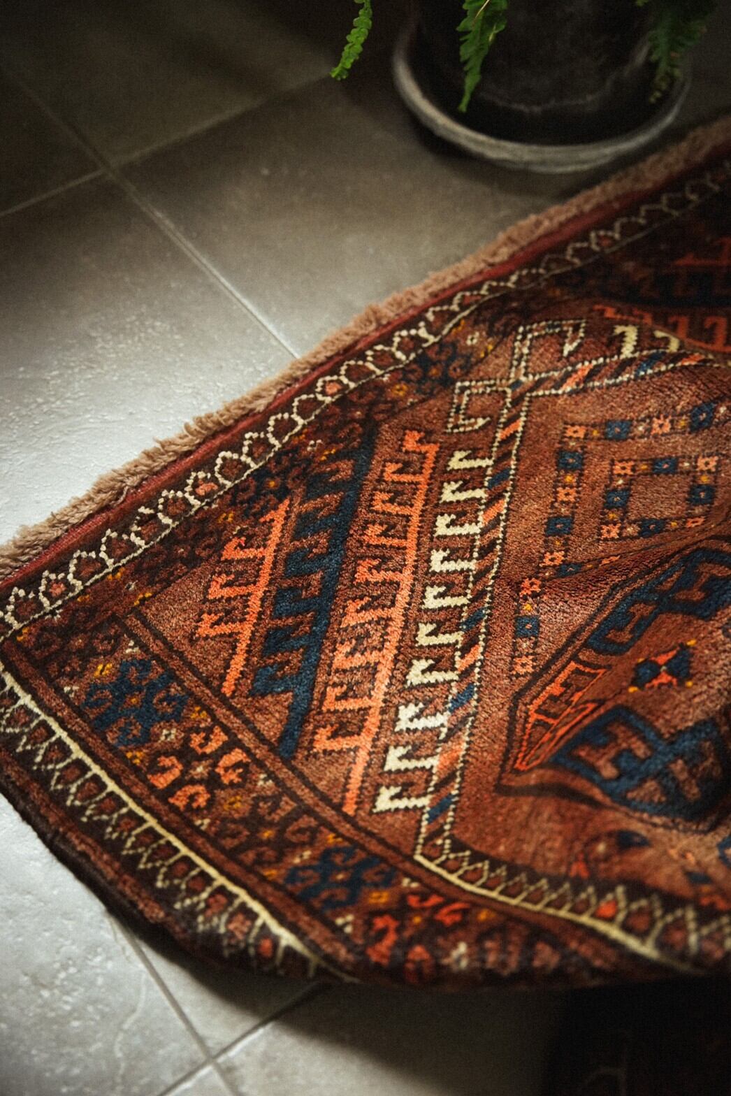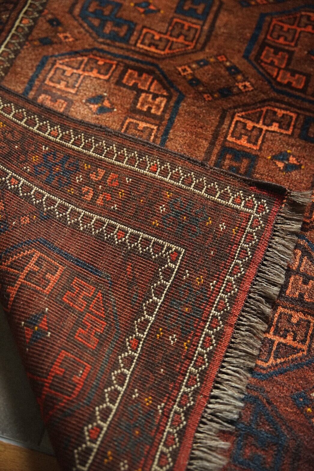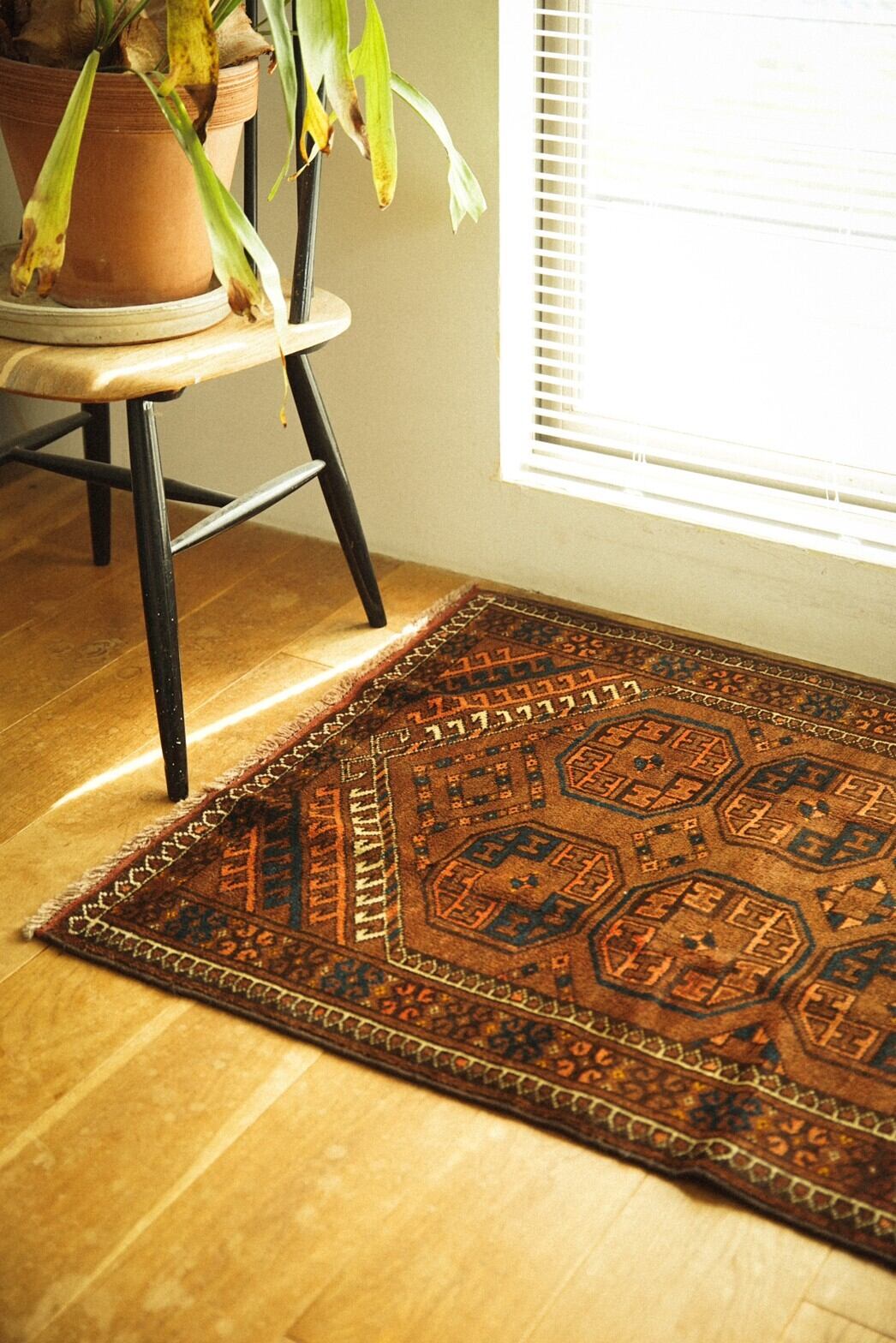 細かい打込みで織られたラグは長い時間を経てより一層艶が増し、今の時代も輝き続けます。厚みもあって手触りはもっちりと滑らか。ぜひ素足で乗ってみてください。