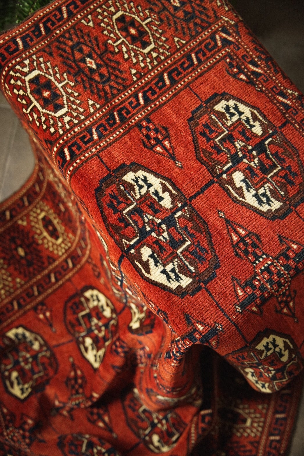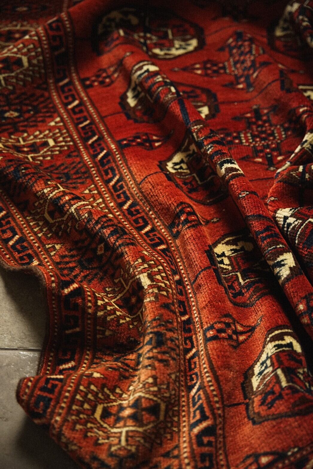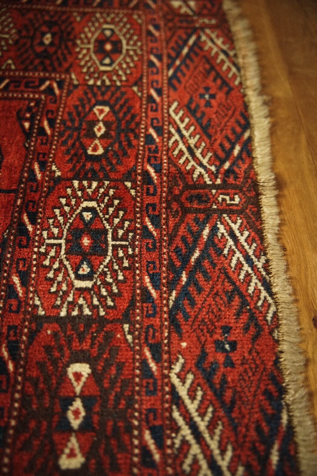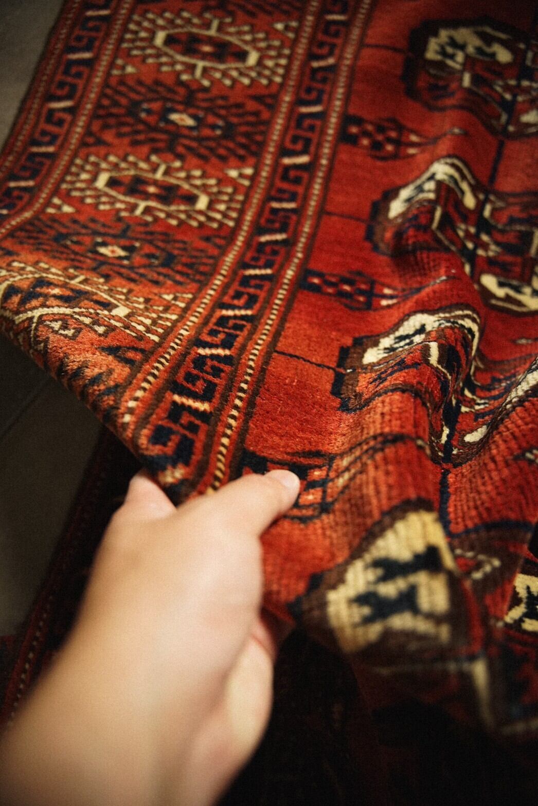 トルクメンラグならではの密度の詰まった細かい織りは手触りもとても滑らか。