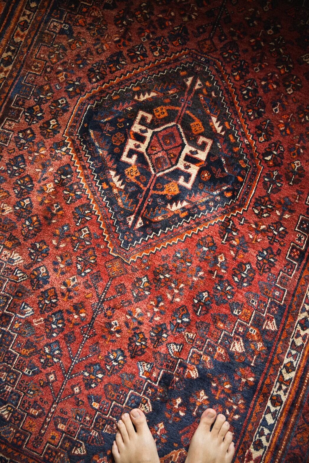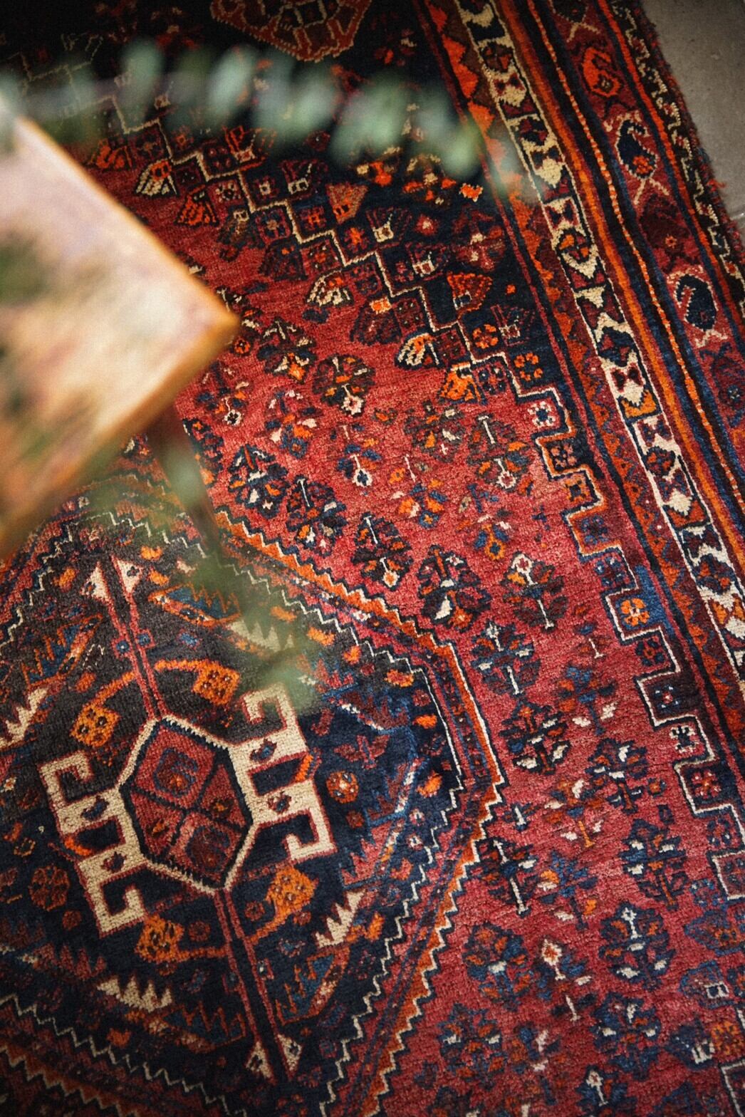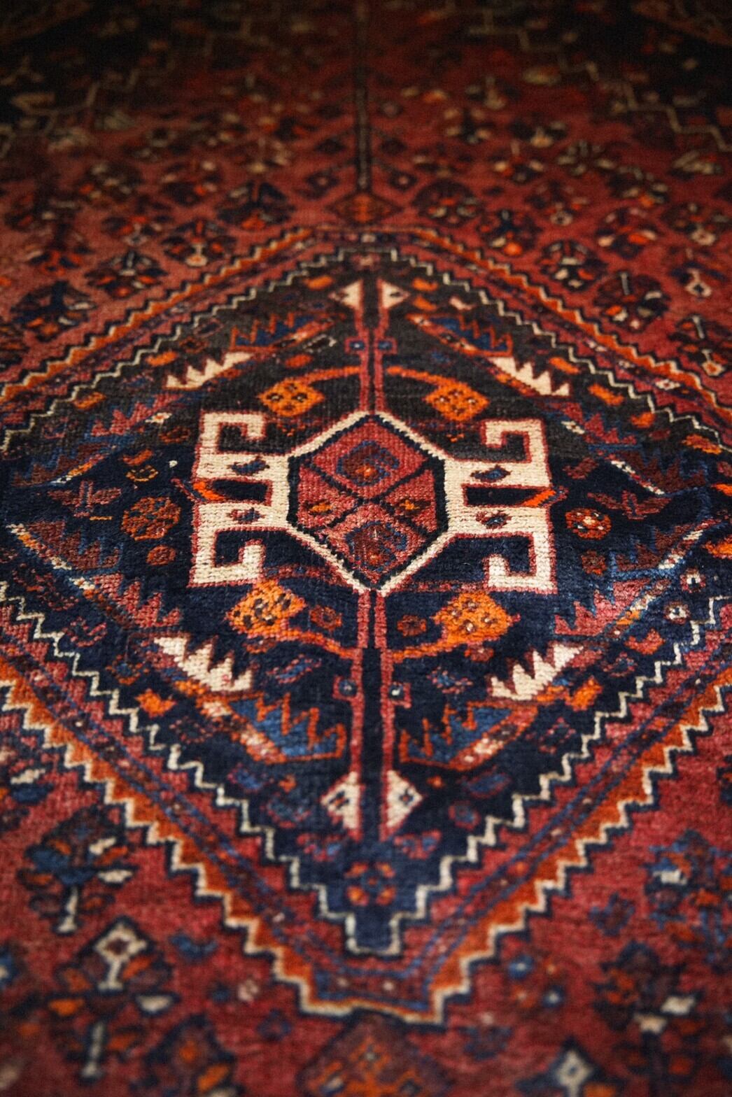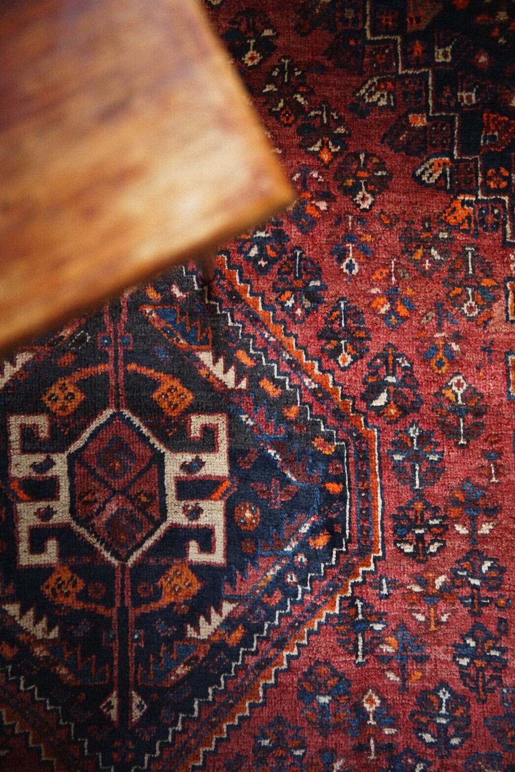 ラグ全体に散りばめられたカシュガイ伝統の文様は幸せへの祈りや自然への感謝の気持ちで溢れているのが伝わってきますね。