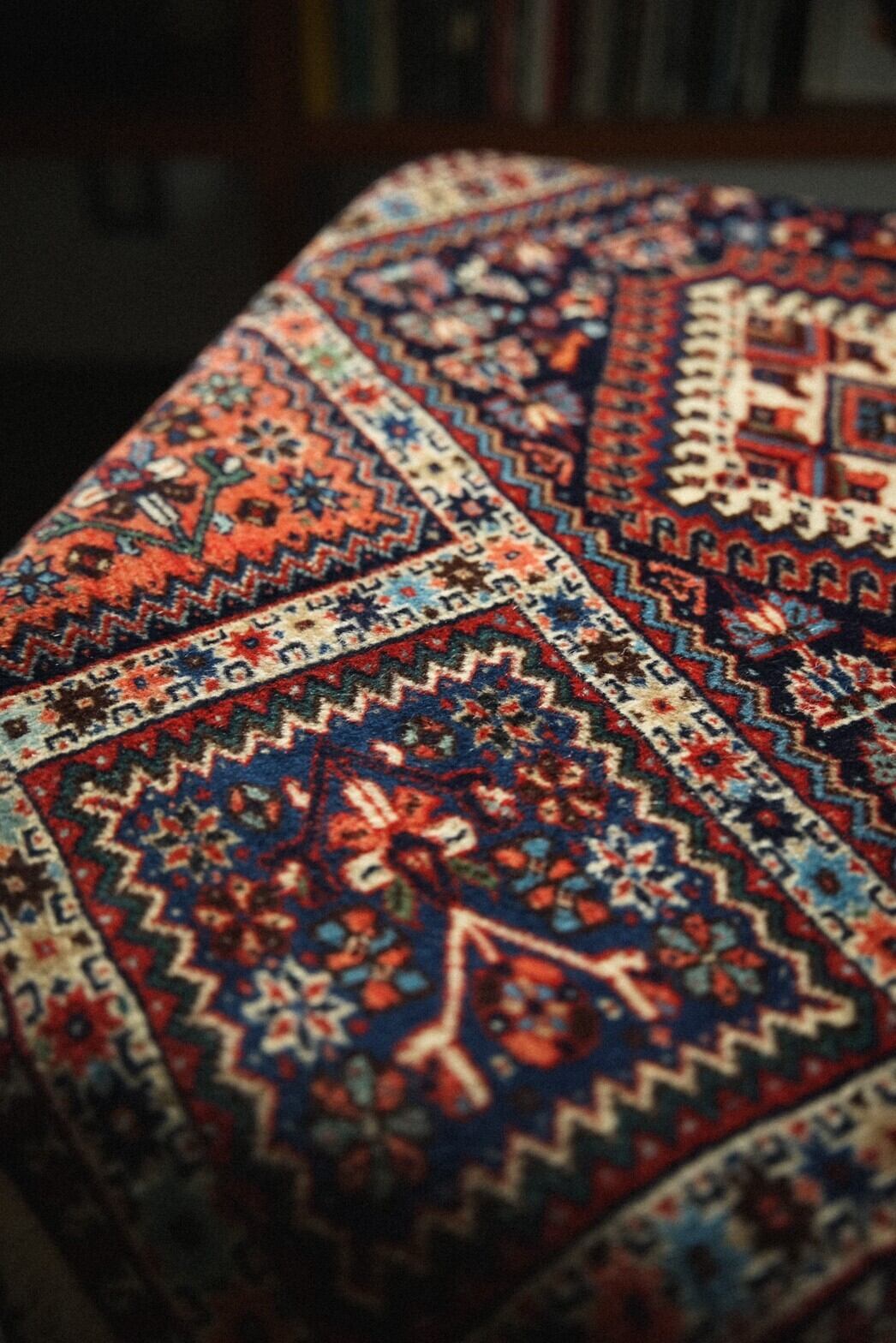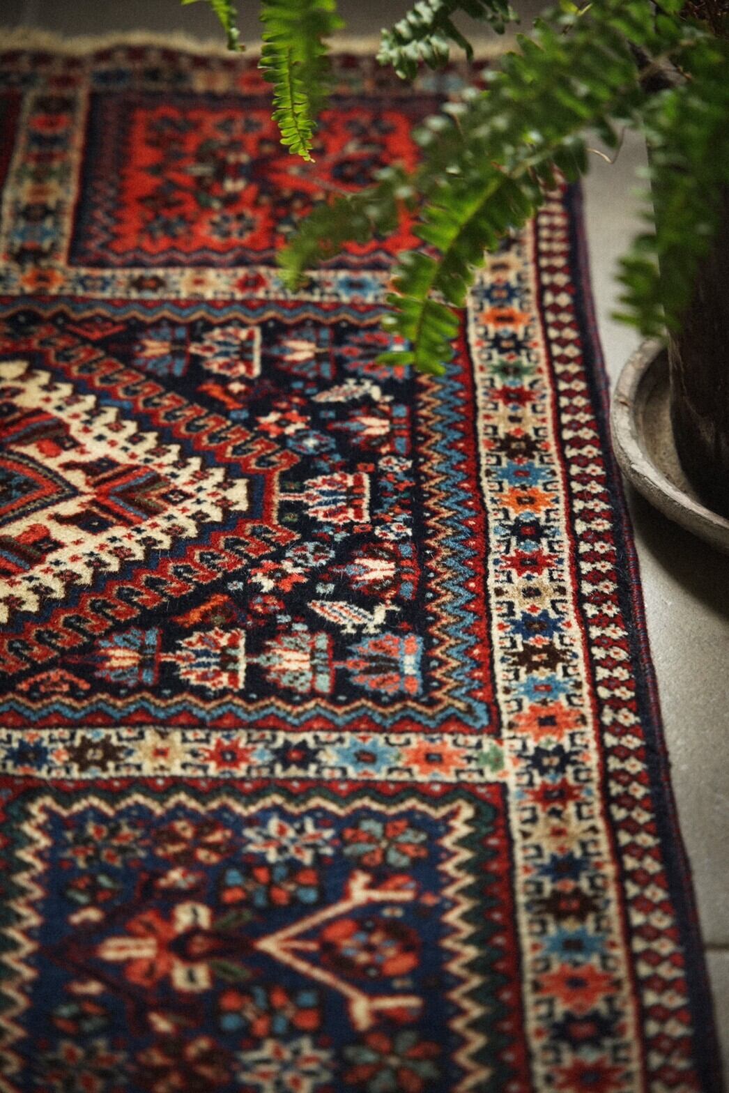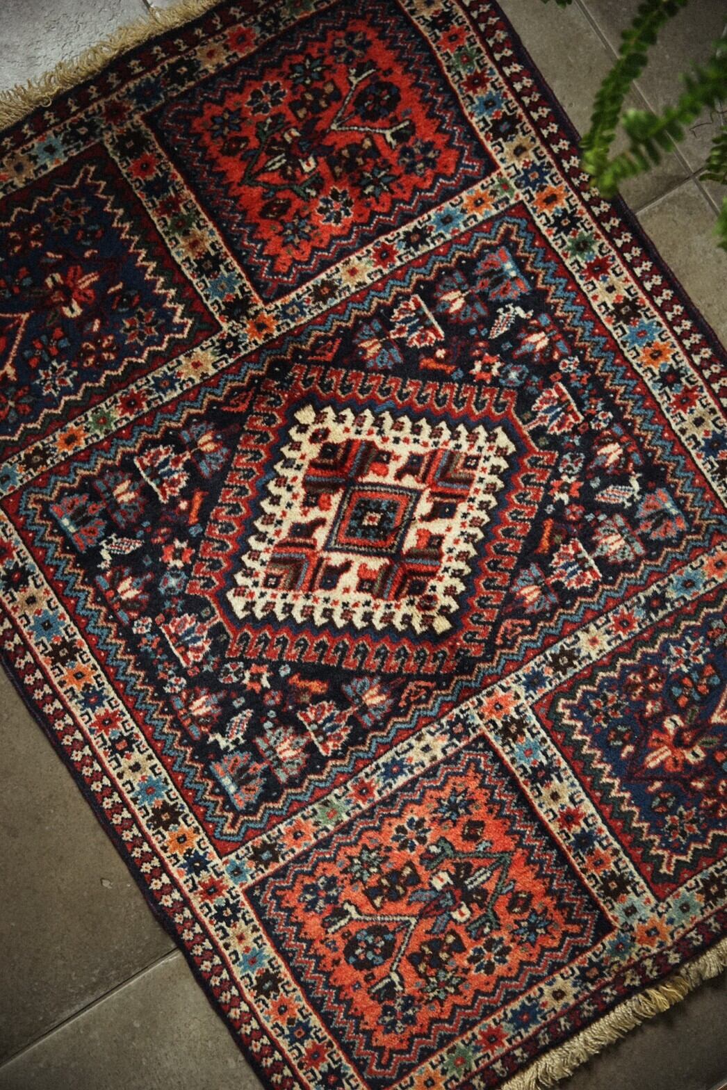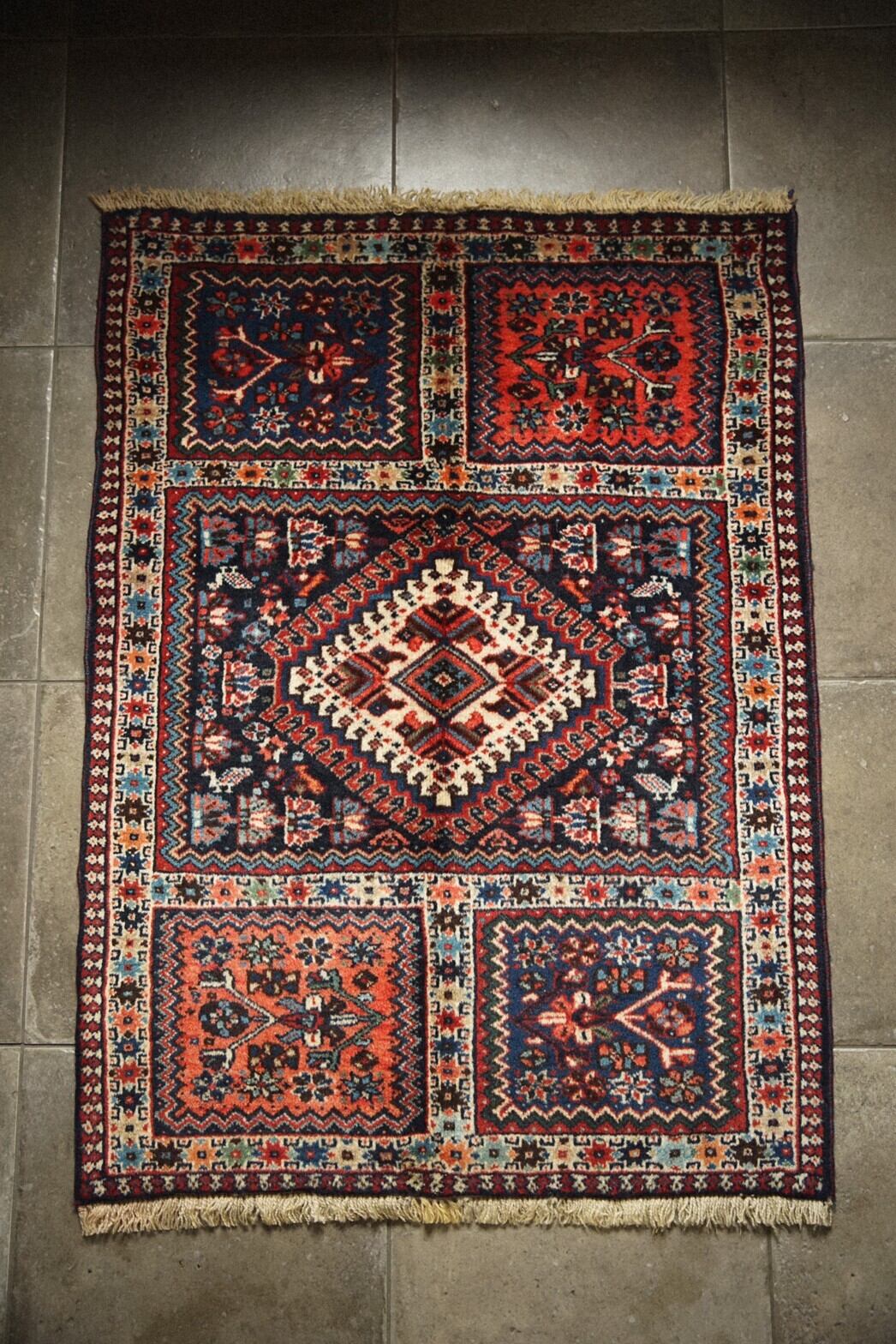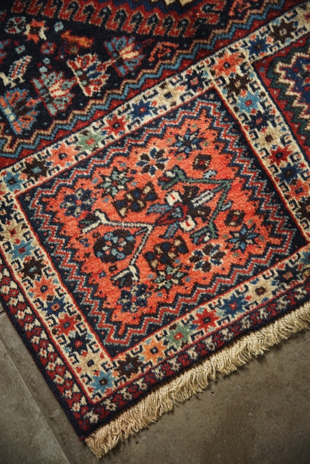 ラグのフィールドが正方形で仕切られている面白いデザインのラグ。