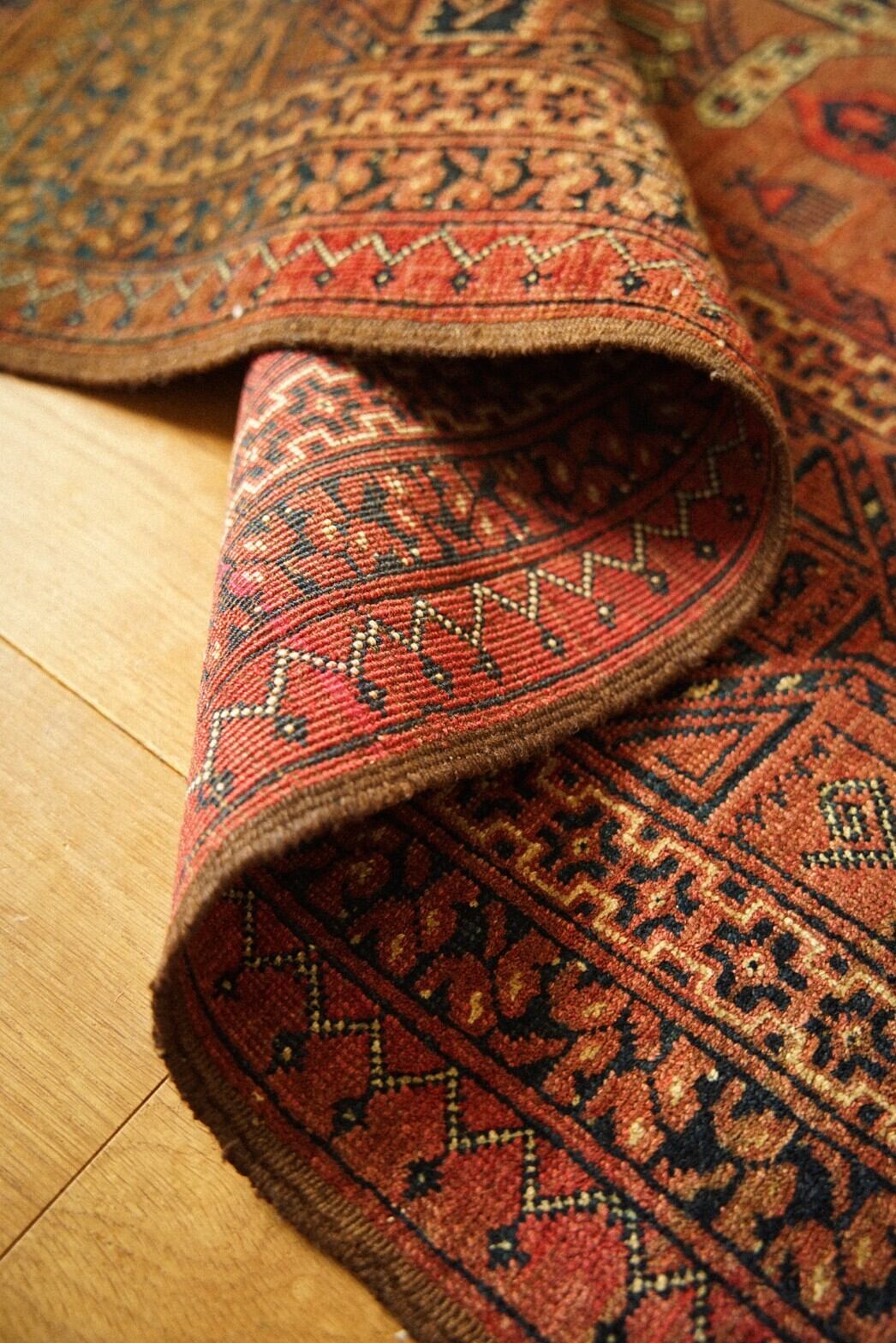 トルクメン族 ala bakhmal designのセミアンティークラグ。