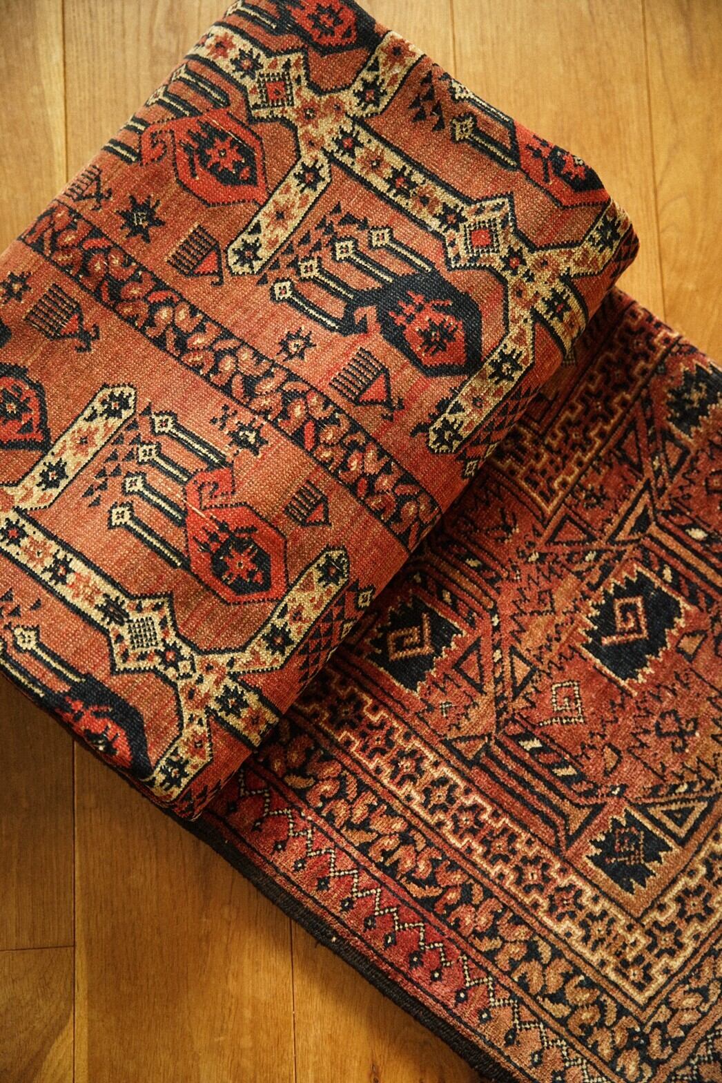 経年によって生まれた味わいや深み、ニュアンスは長い時間を経たラグの歴史です。