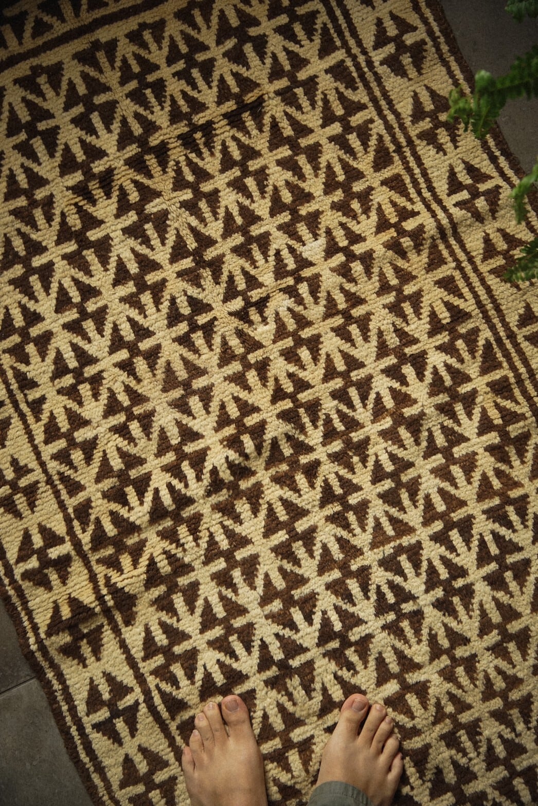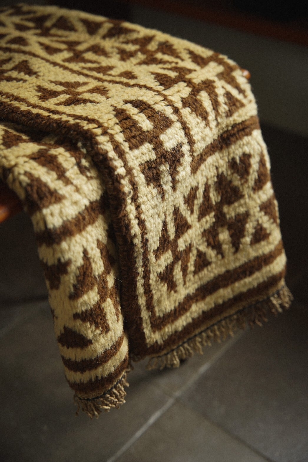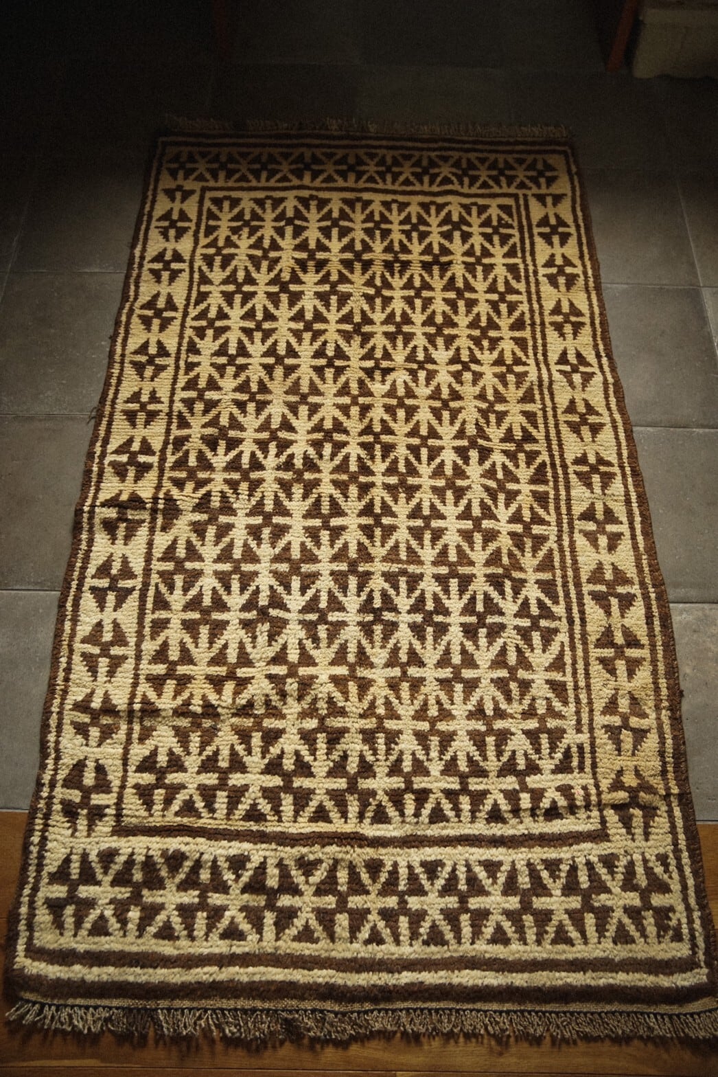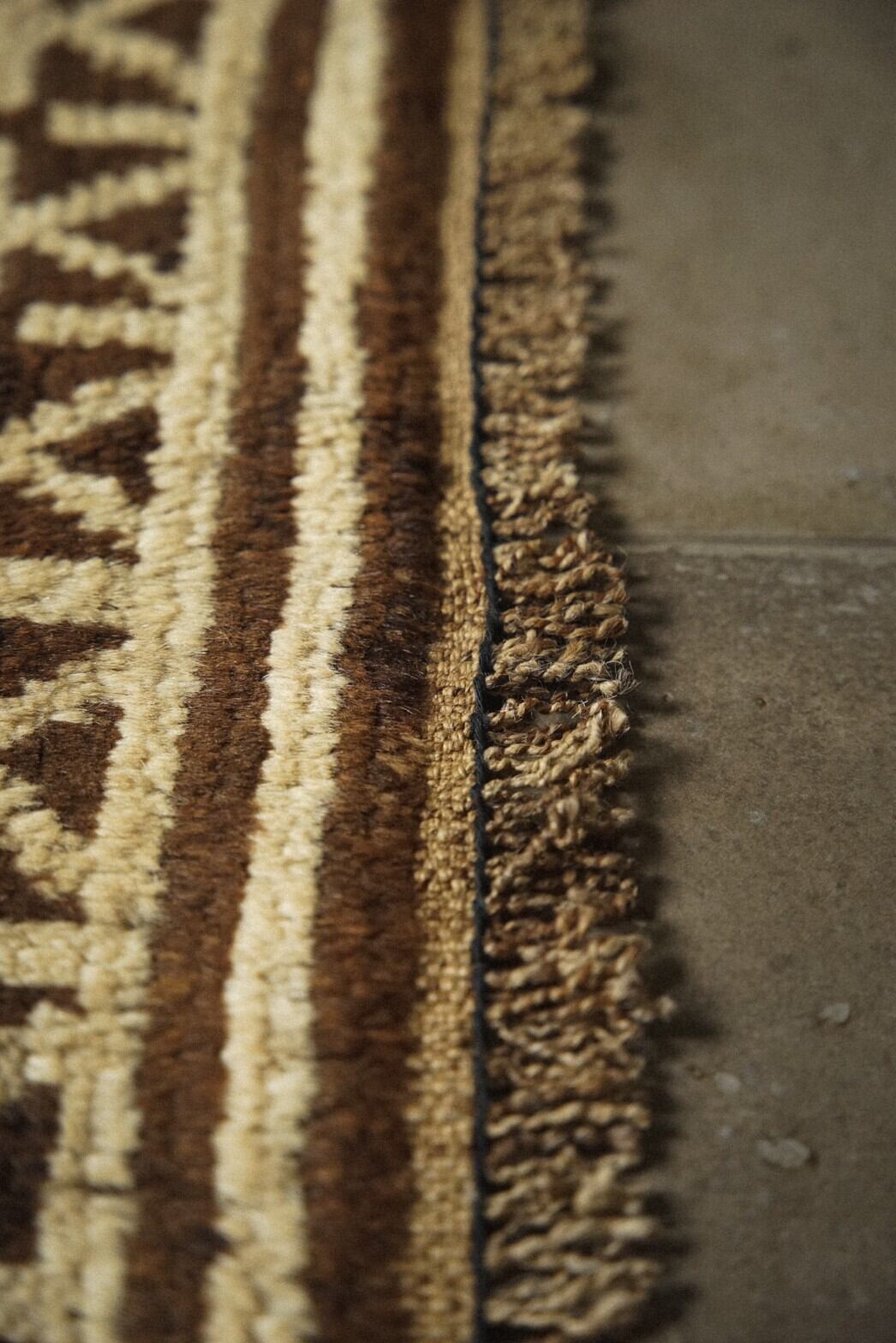 ブラウン×アイボリーのシンプルな配色のタイマニラグ。