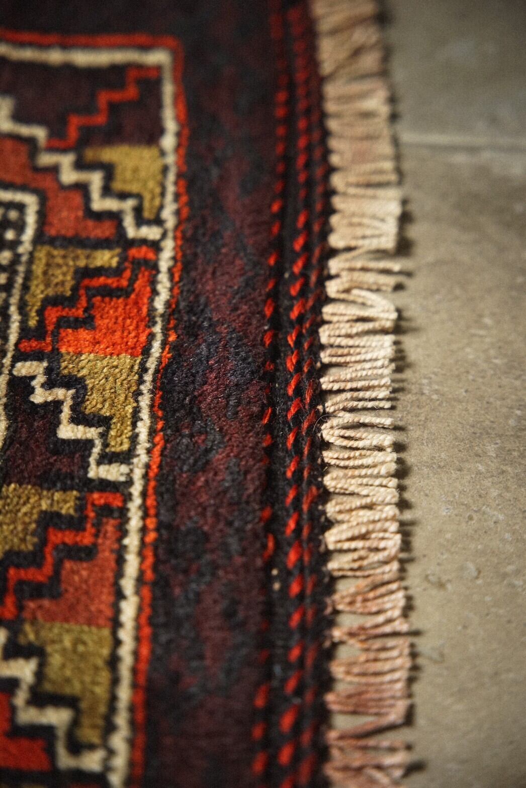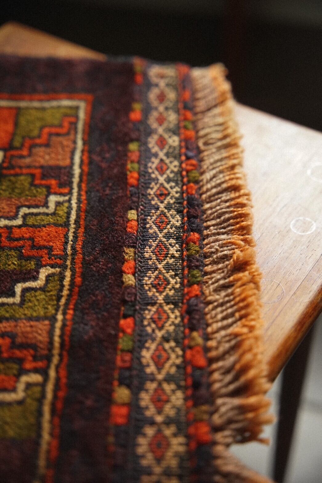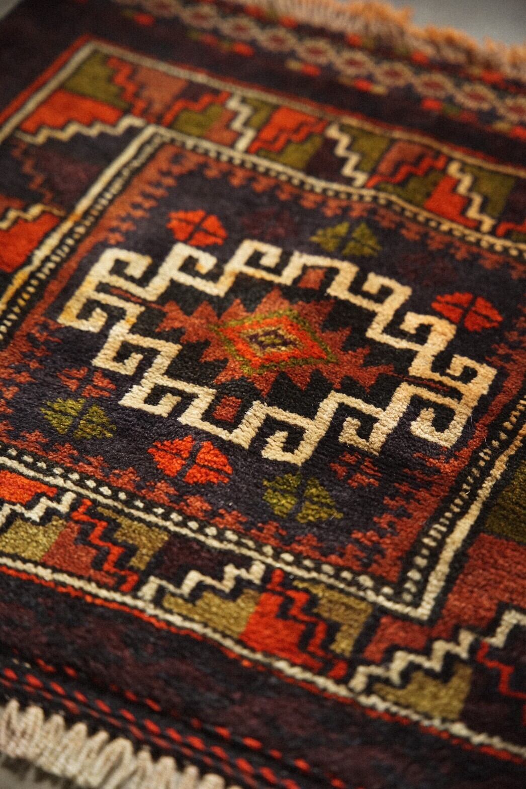 小さいサイズながらも色合いやデザインのバランスがとれた美しいラグです。