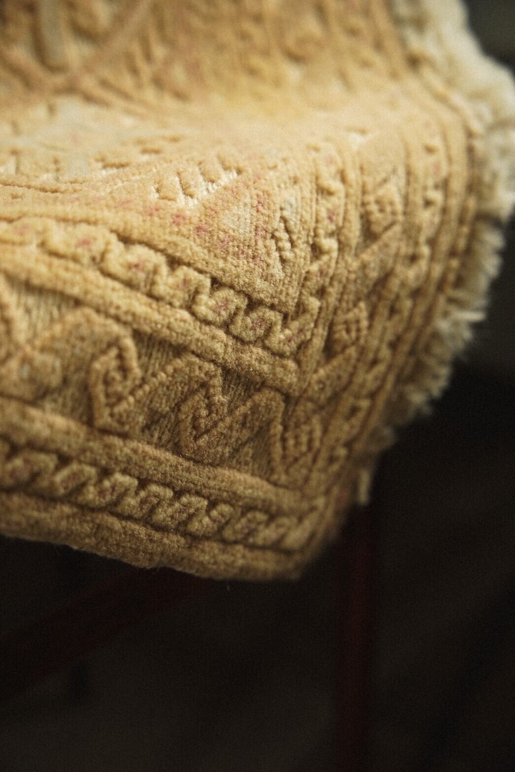 ポコポコとした立体感が特徴的なマシュワニラグ。珍しいアイボリーベースでミニサイズです。触り心地はしっとりと柔らかく、凹凸部分の不思議な感触はずっと撫でていたくなります。