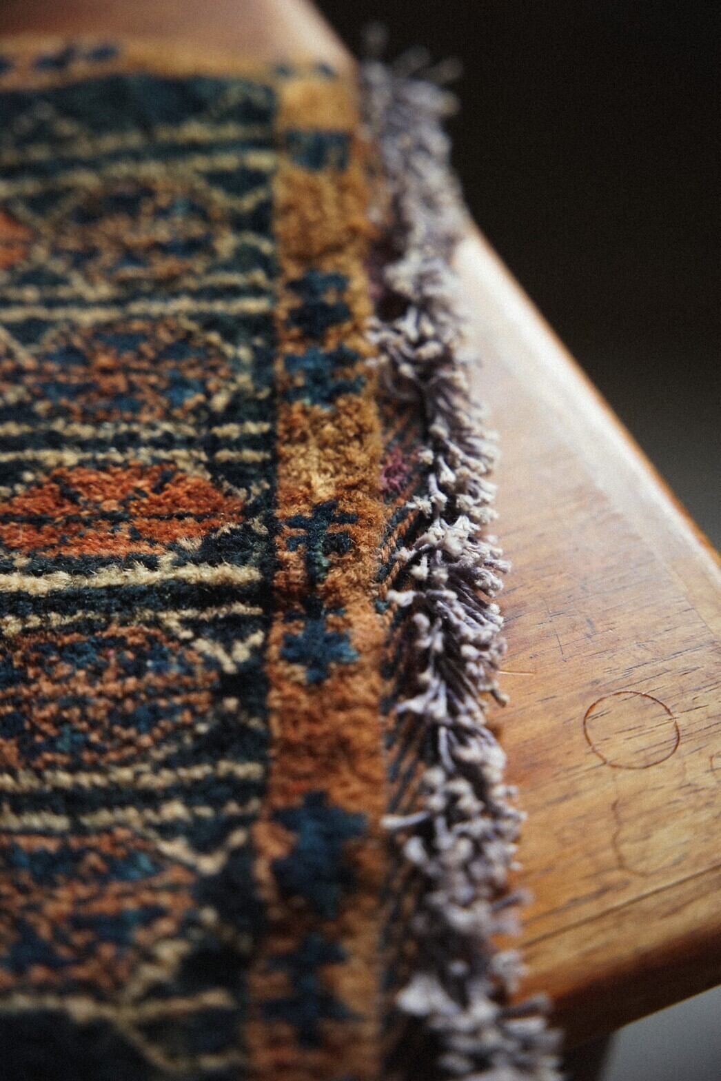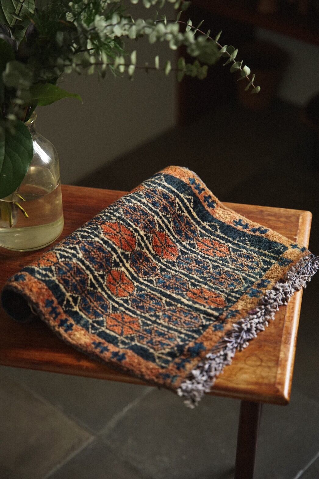 少し薄手ですが、細かい織りで滑らかな肌触り。どこに敷こうか考えるだけでワクワクする一枚。