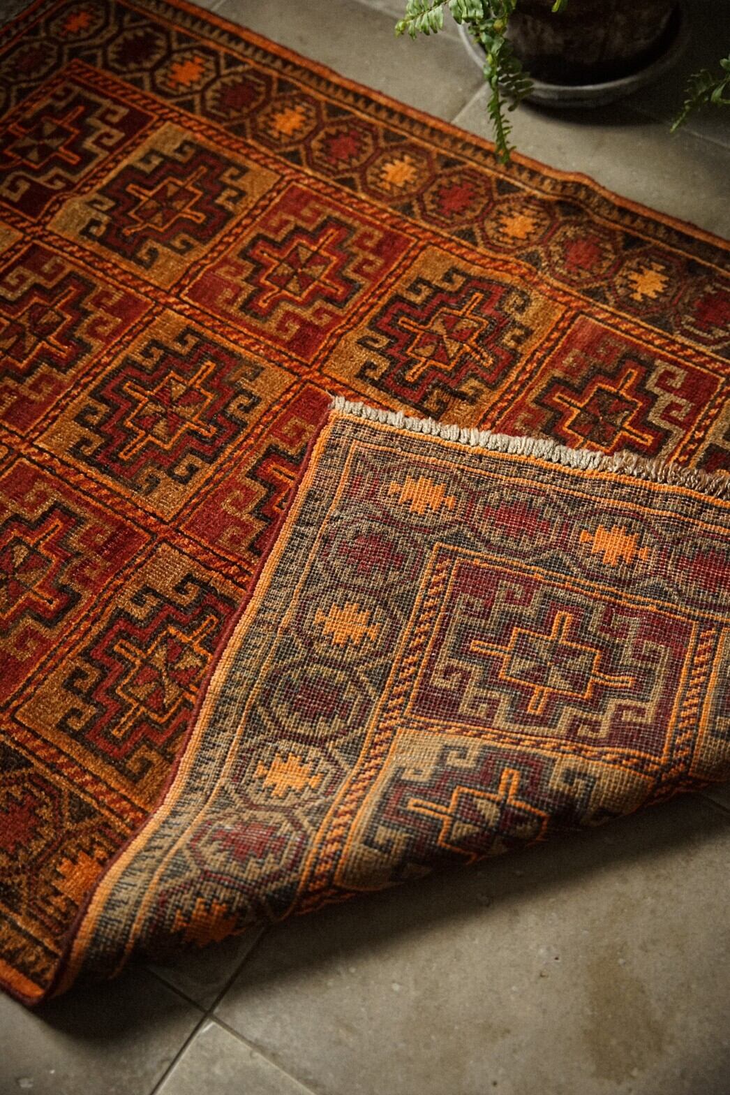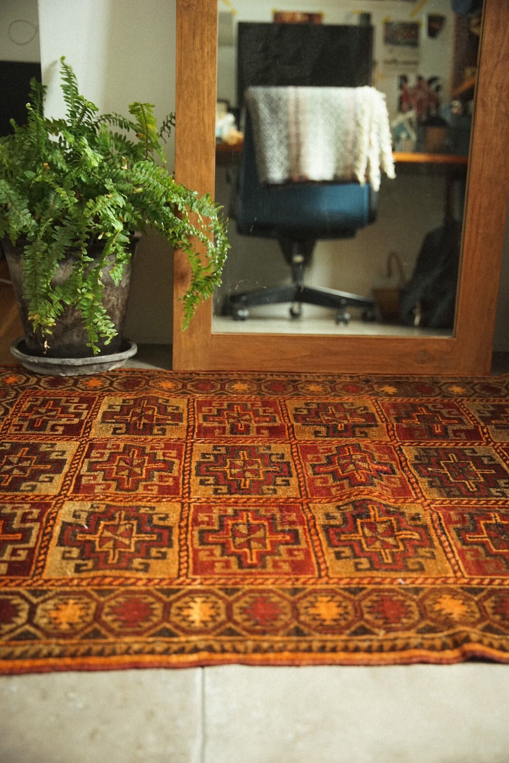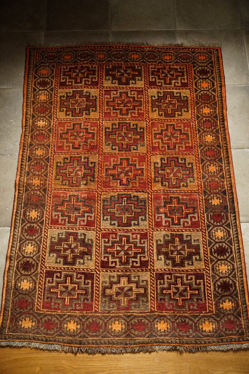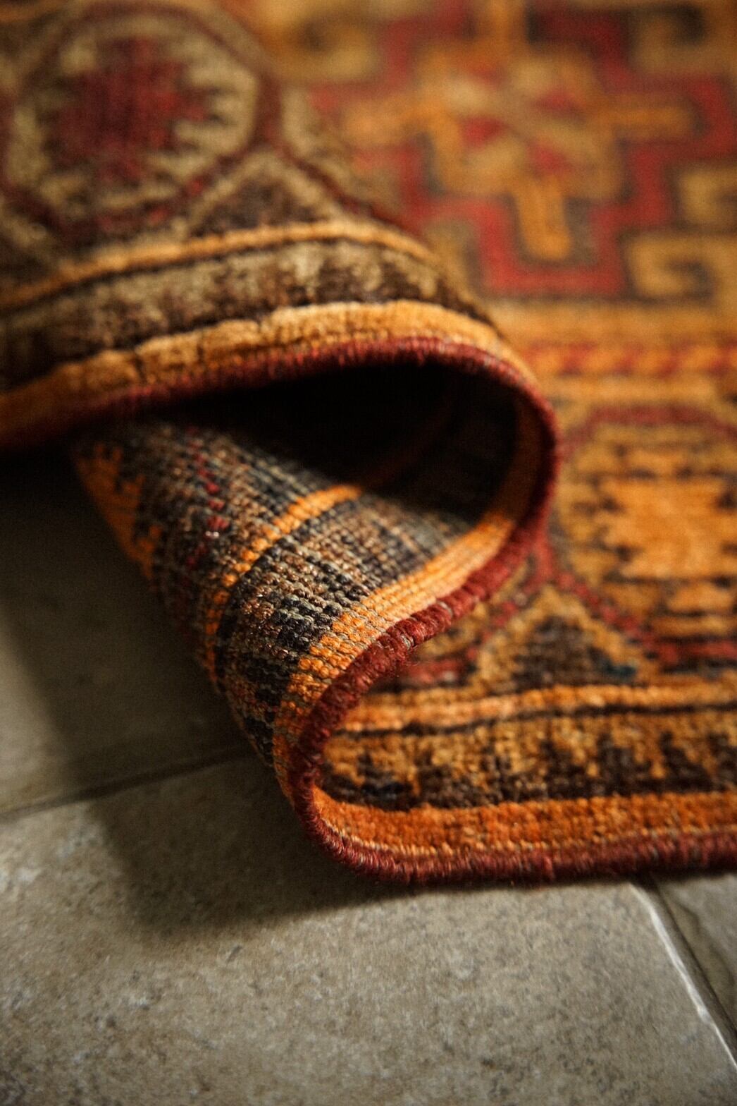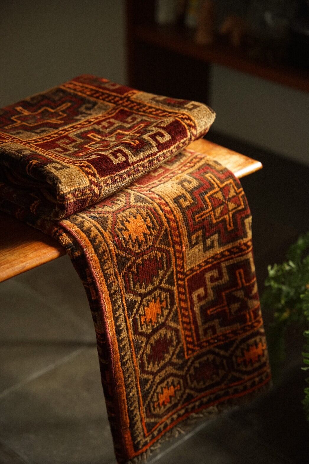 ベージュとブラウンベースに赤やオレンジなどが使用されている暖色系の優しい雰囲気のアリホジャラグ。