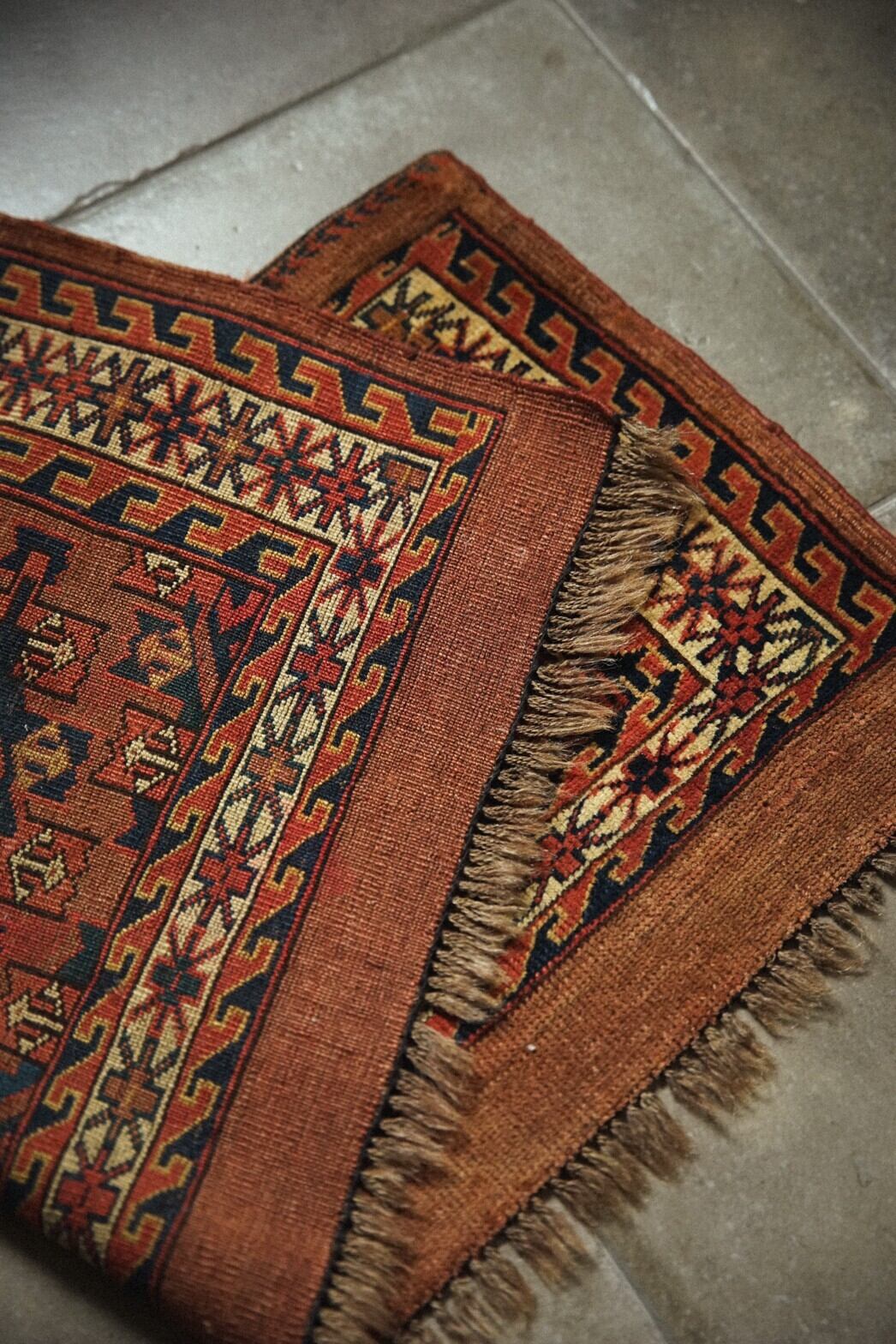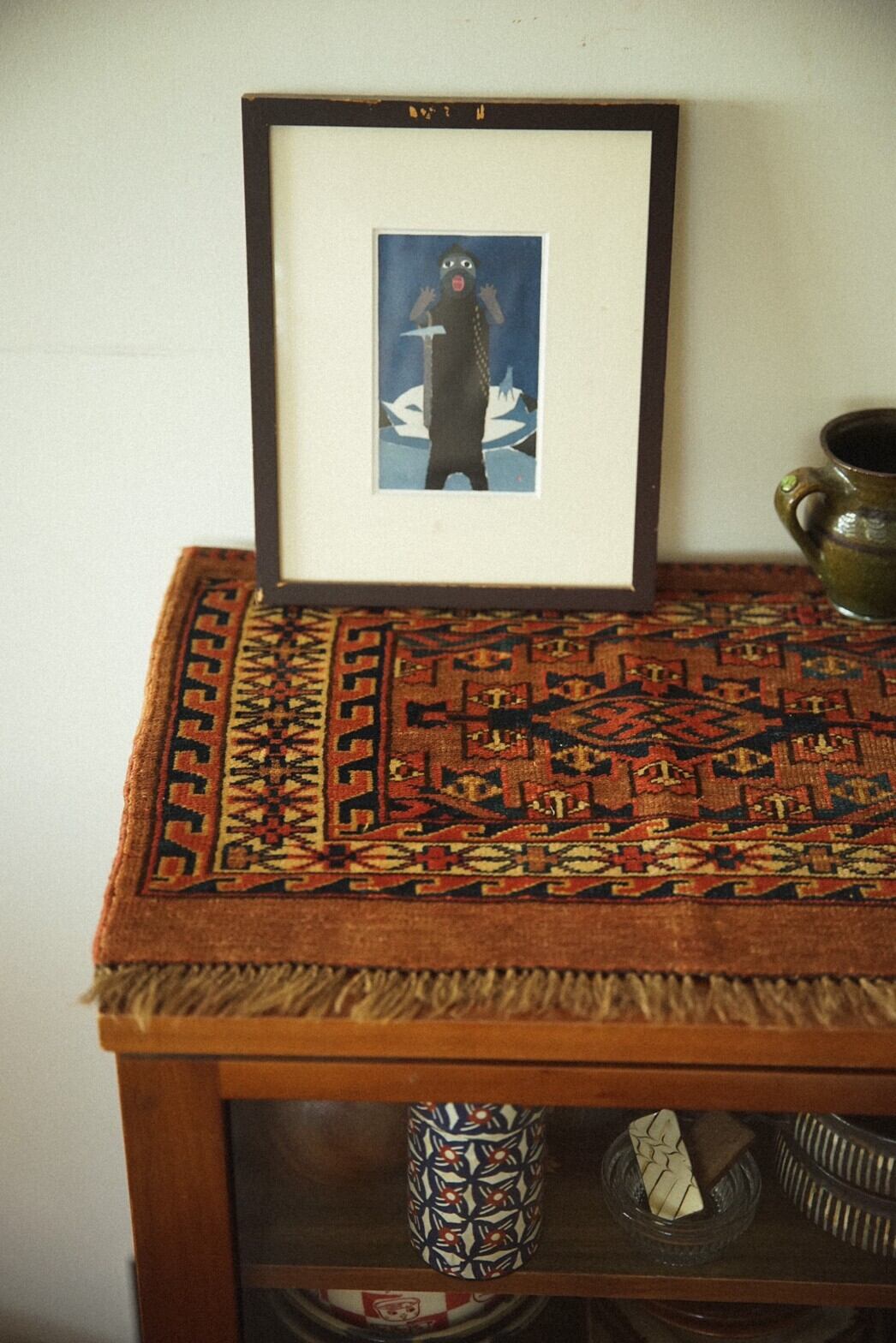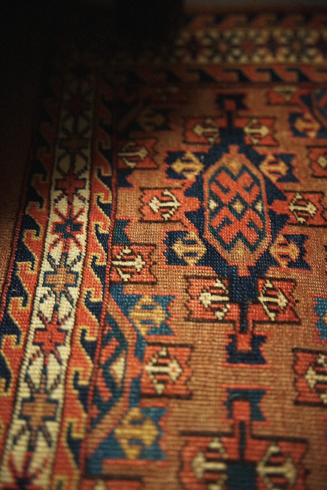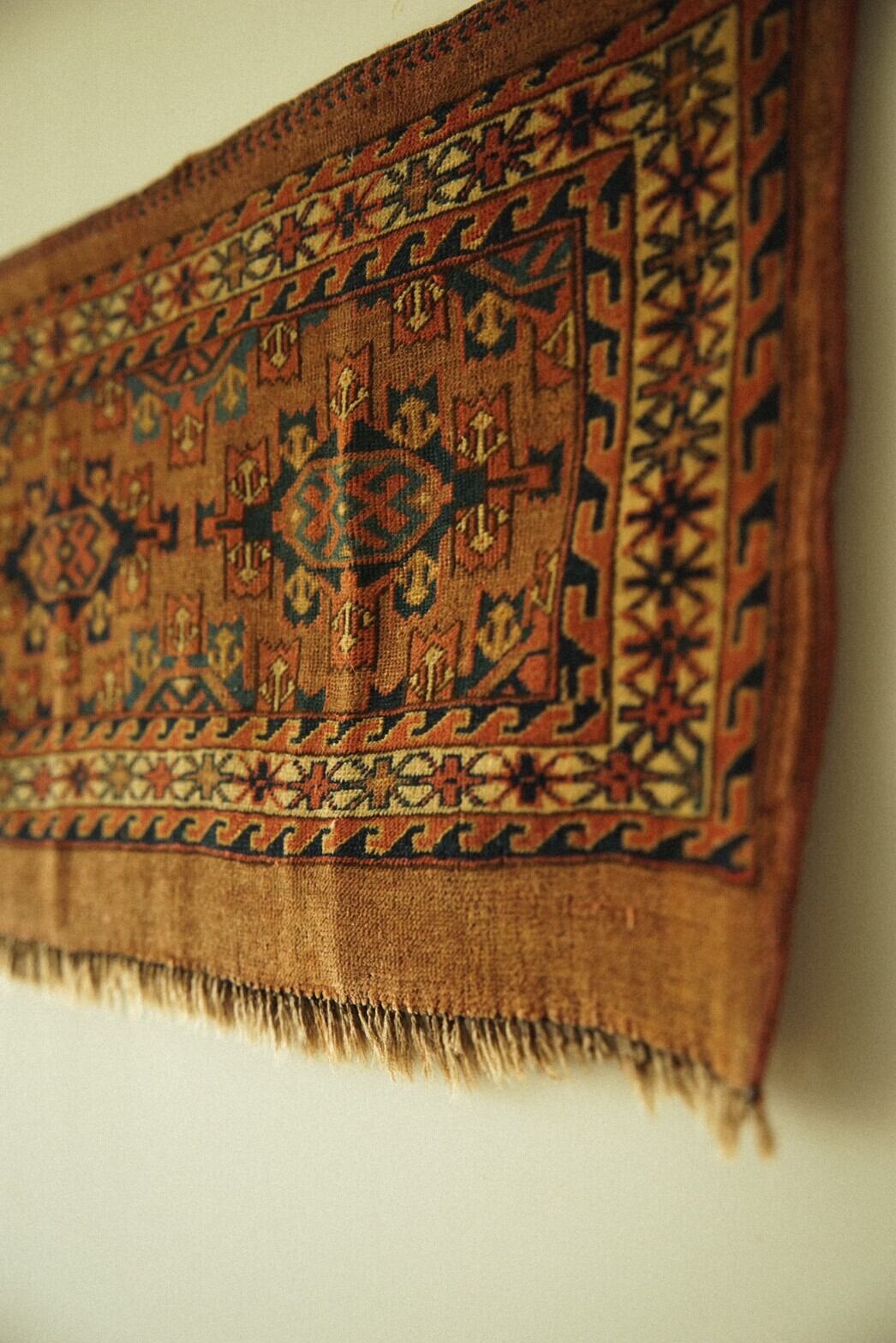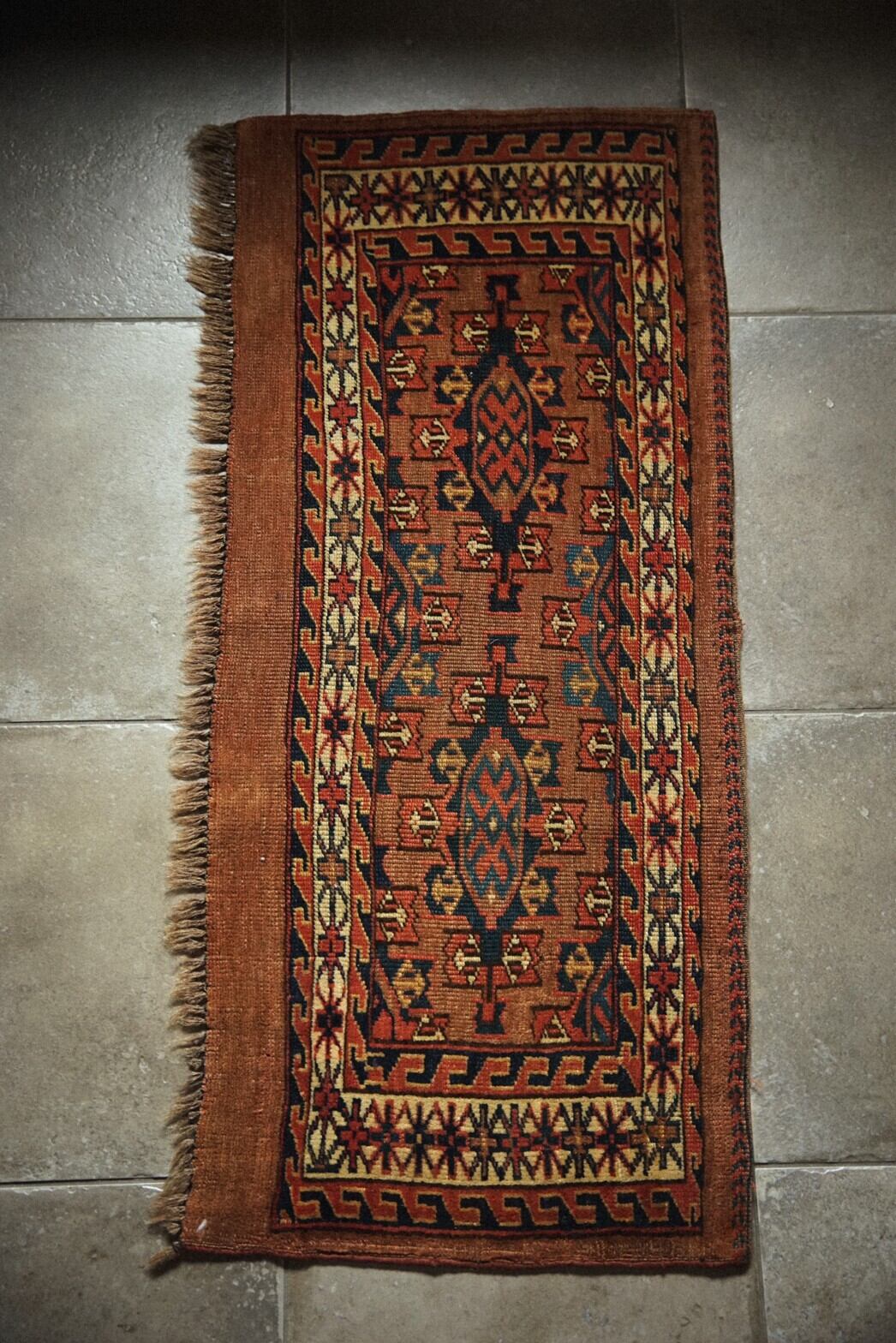 ヨムート族のチュワルと呼ばれる家財などを入れる袋状のものをラグに仕立ててもらいました。