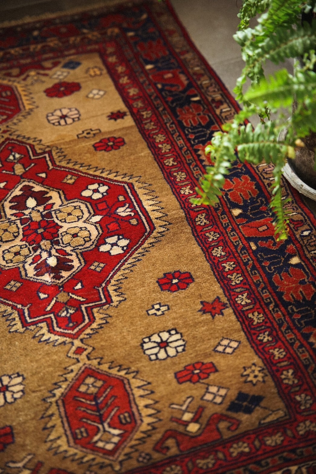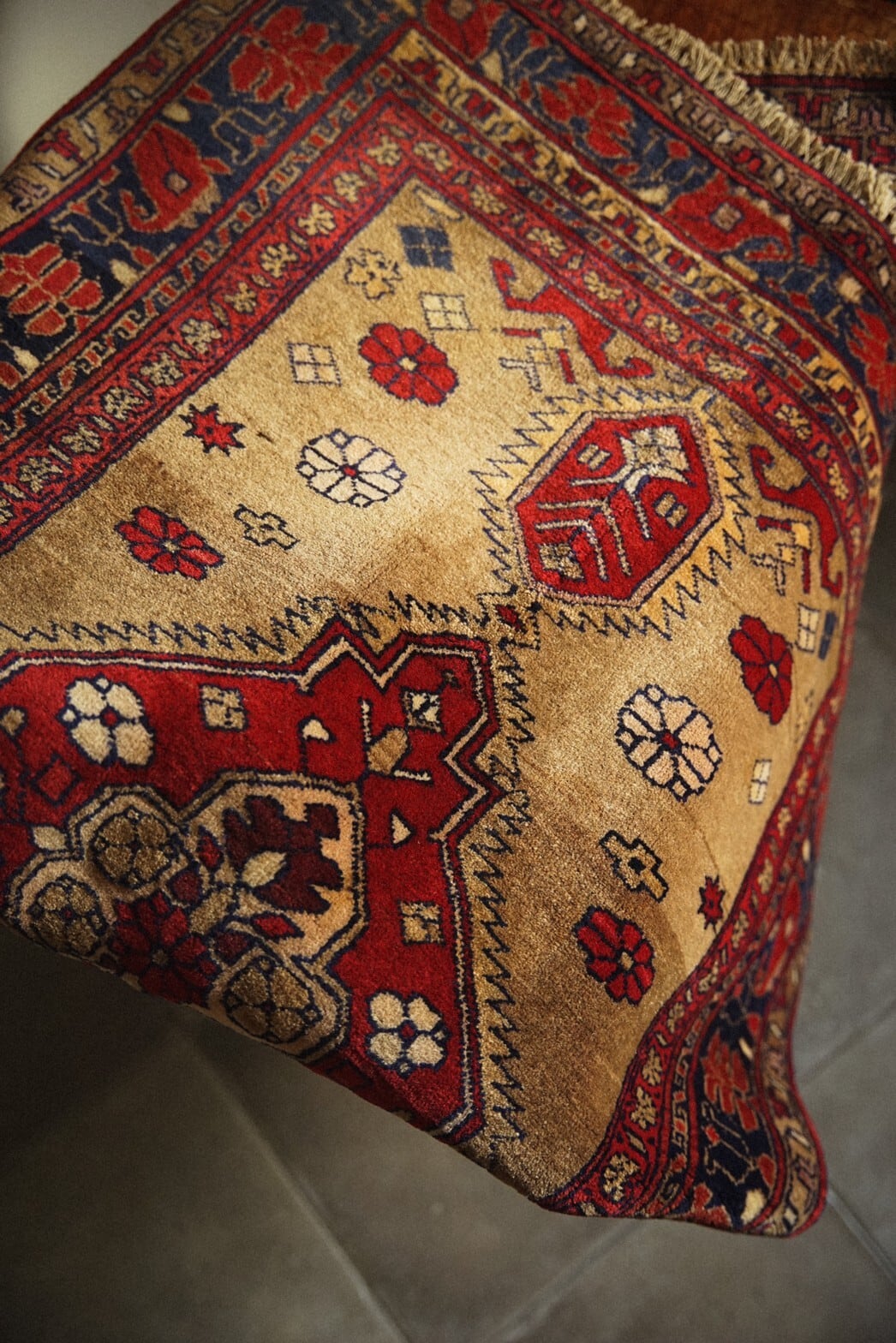 キャメルベースに、ネイビー、レッドなどのシックな色使いがおしゃれな一枚。