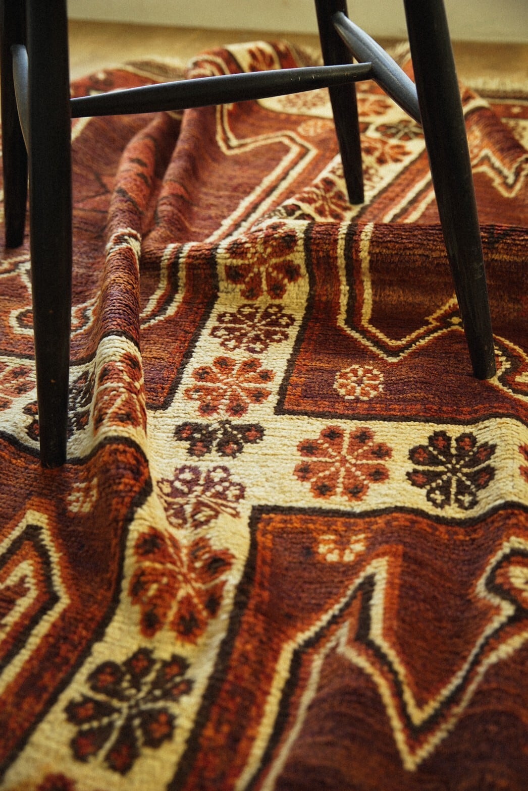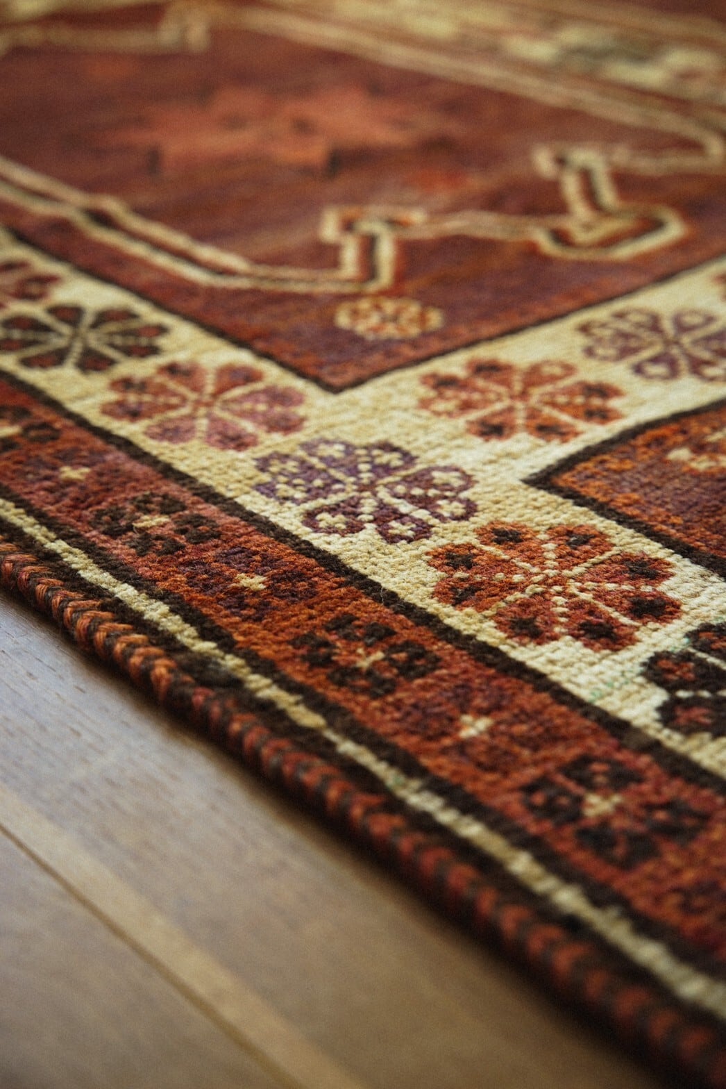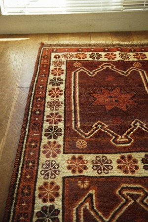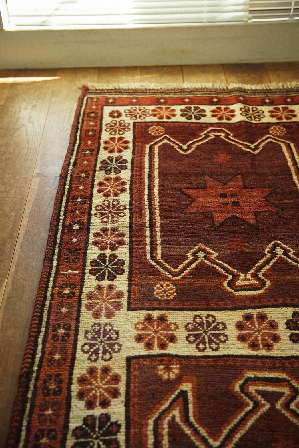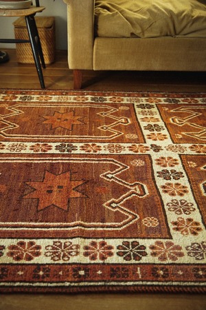 少し赤みがかったココア色のこっくりとした色合いのラグ。
