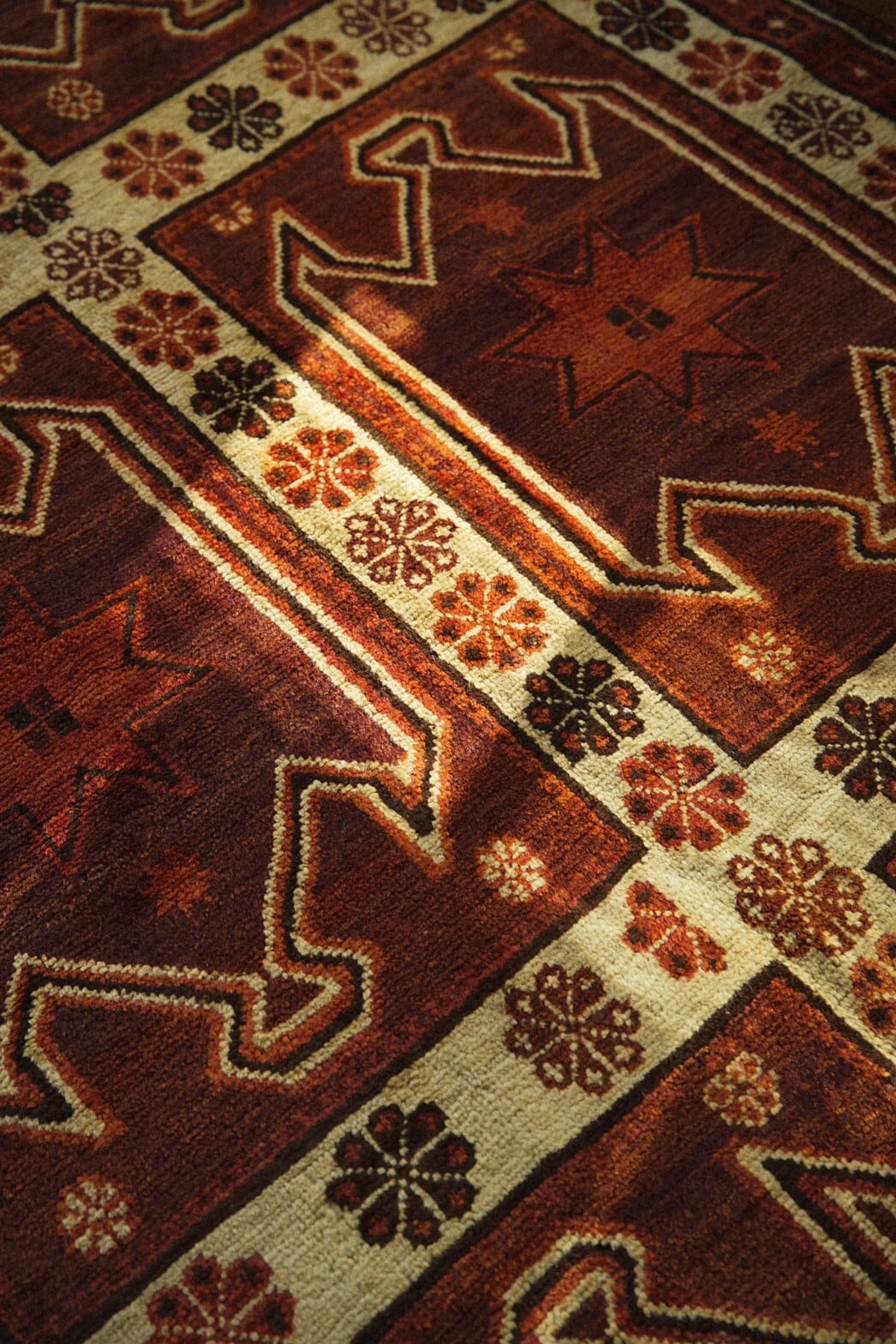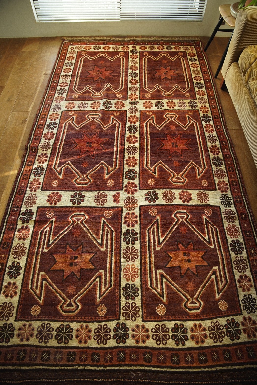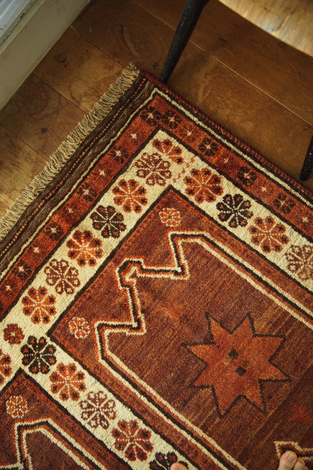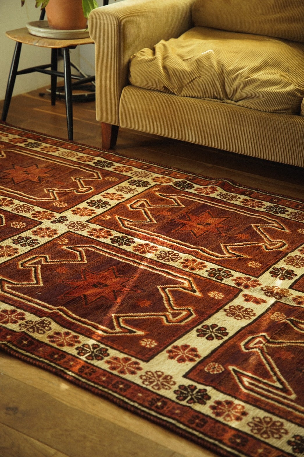 少し赤みがかったココア色のこっくりとした色合いのラグ。