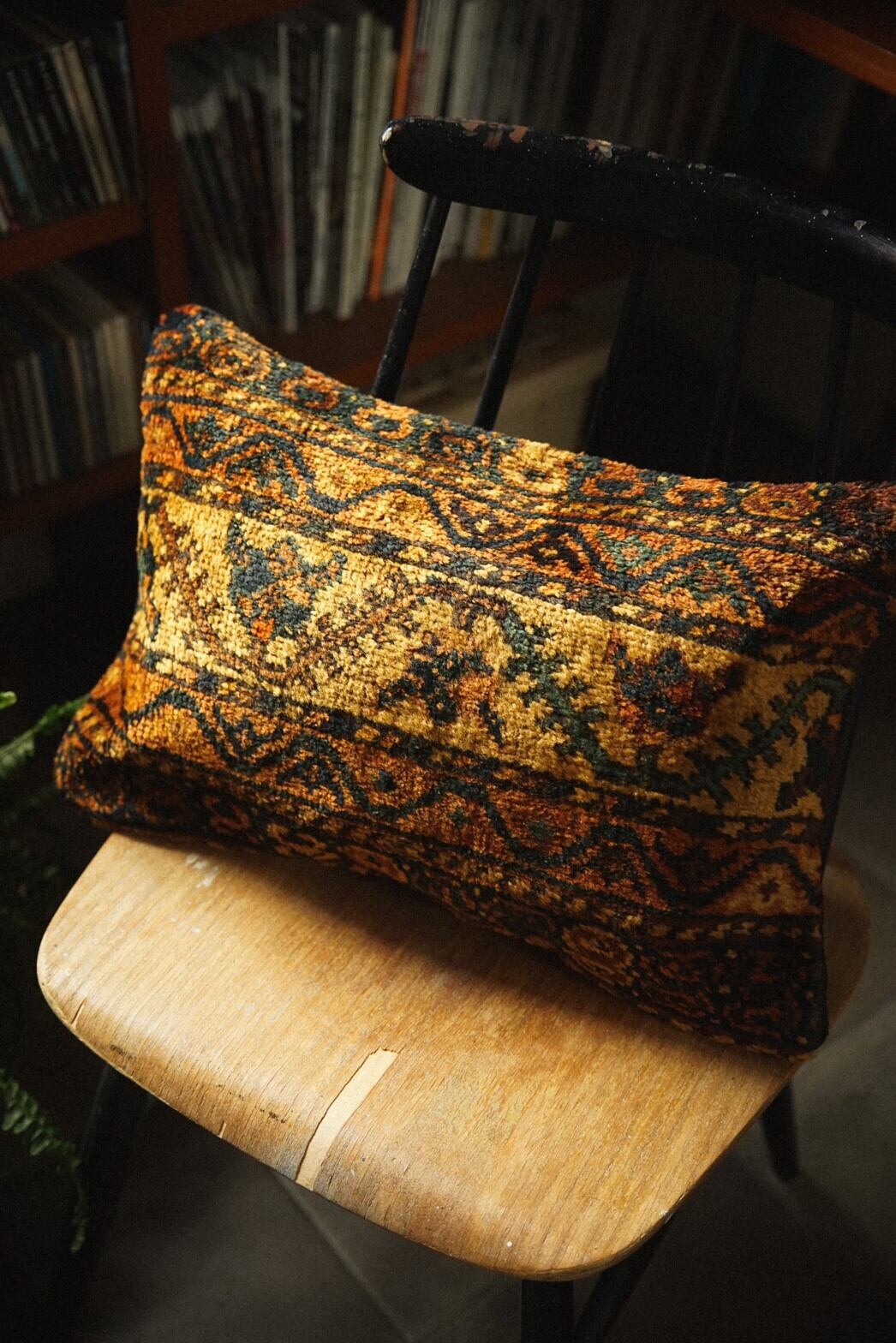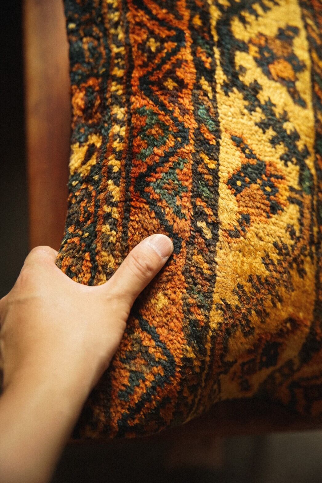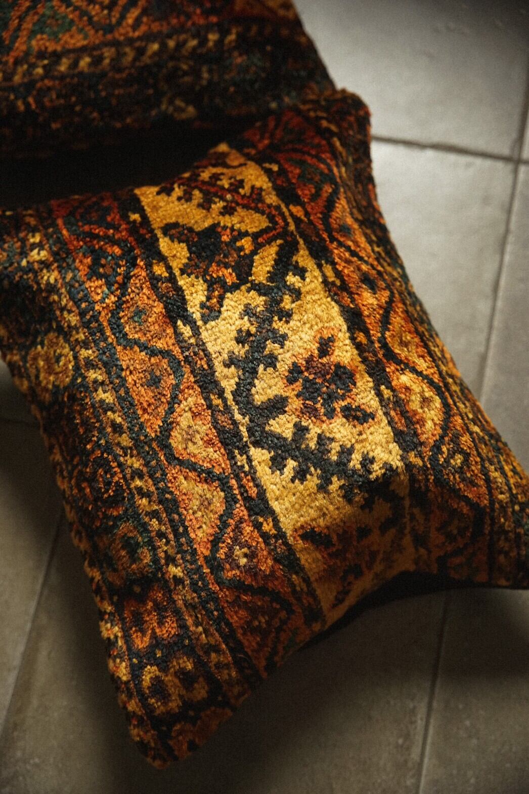 経年70年近くのカシュガイラグを再利用して作られたクッションカバーです。