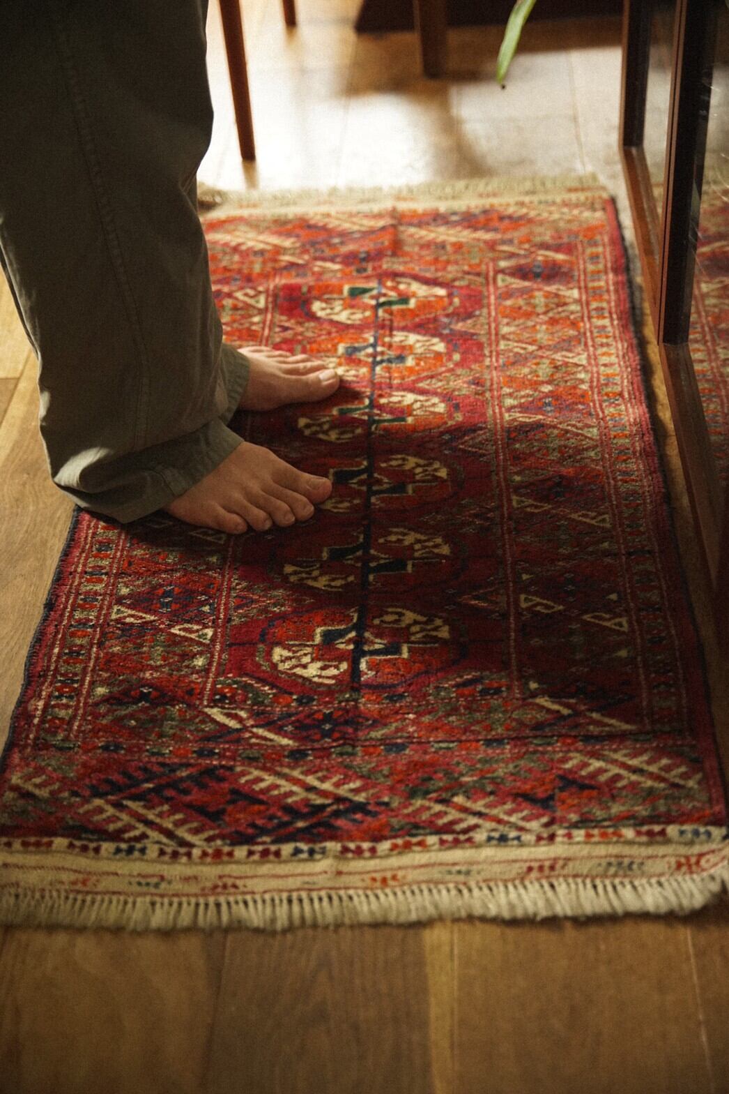 使いやすいサイズ感で、どこに敷こうか考えるだけでワクワクする一枚ですね。