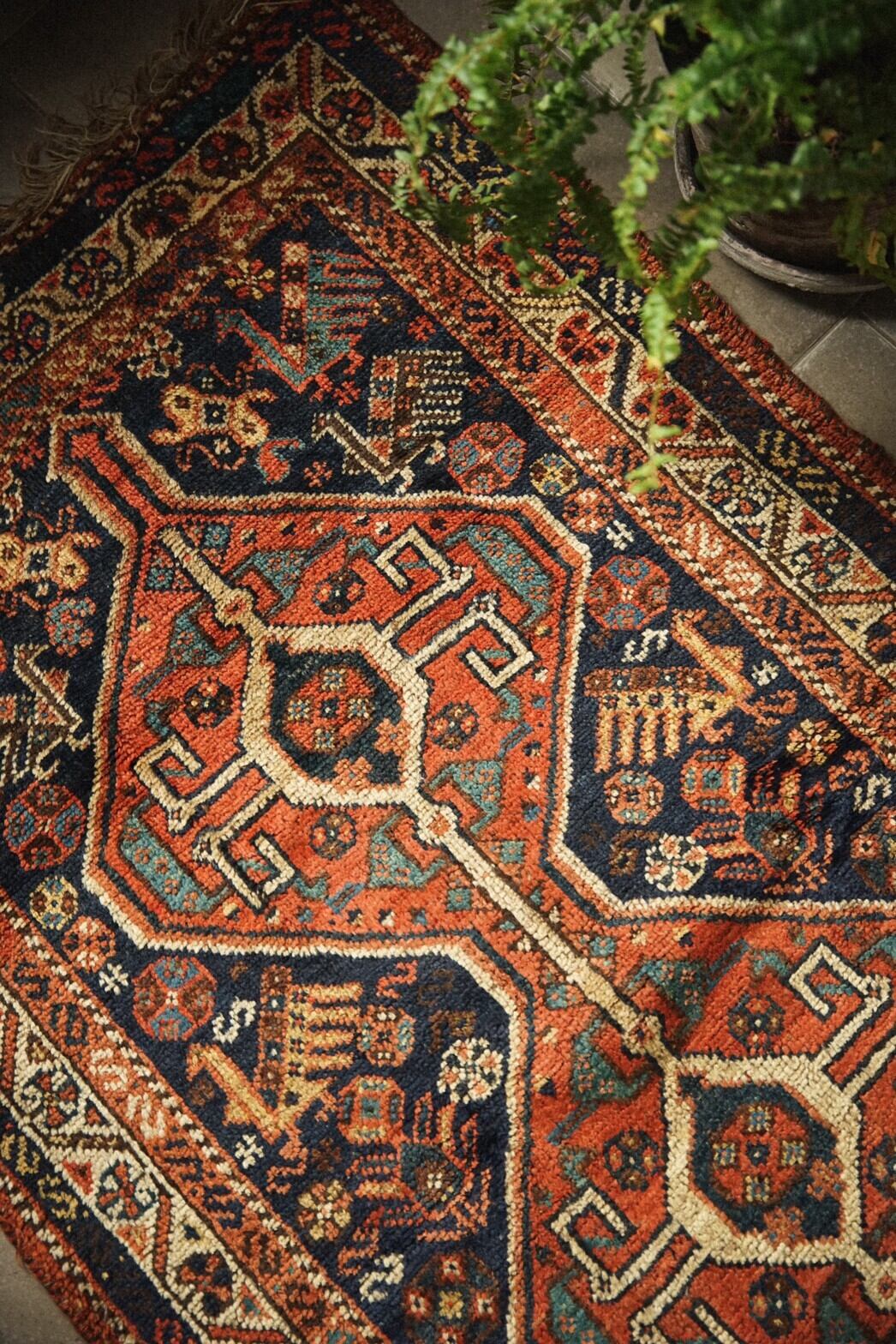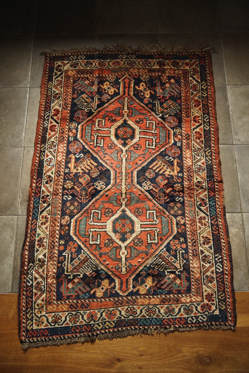 1940年代に織られたカシュガイラグ。2つ並んだ力強いメダリオン。