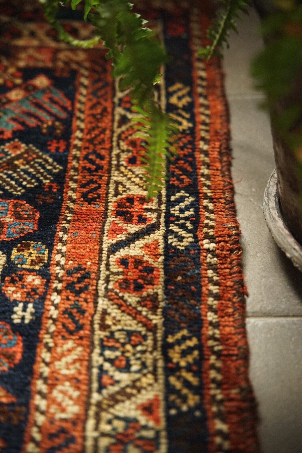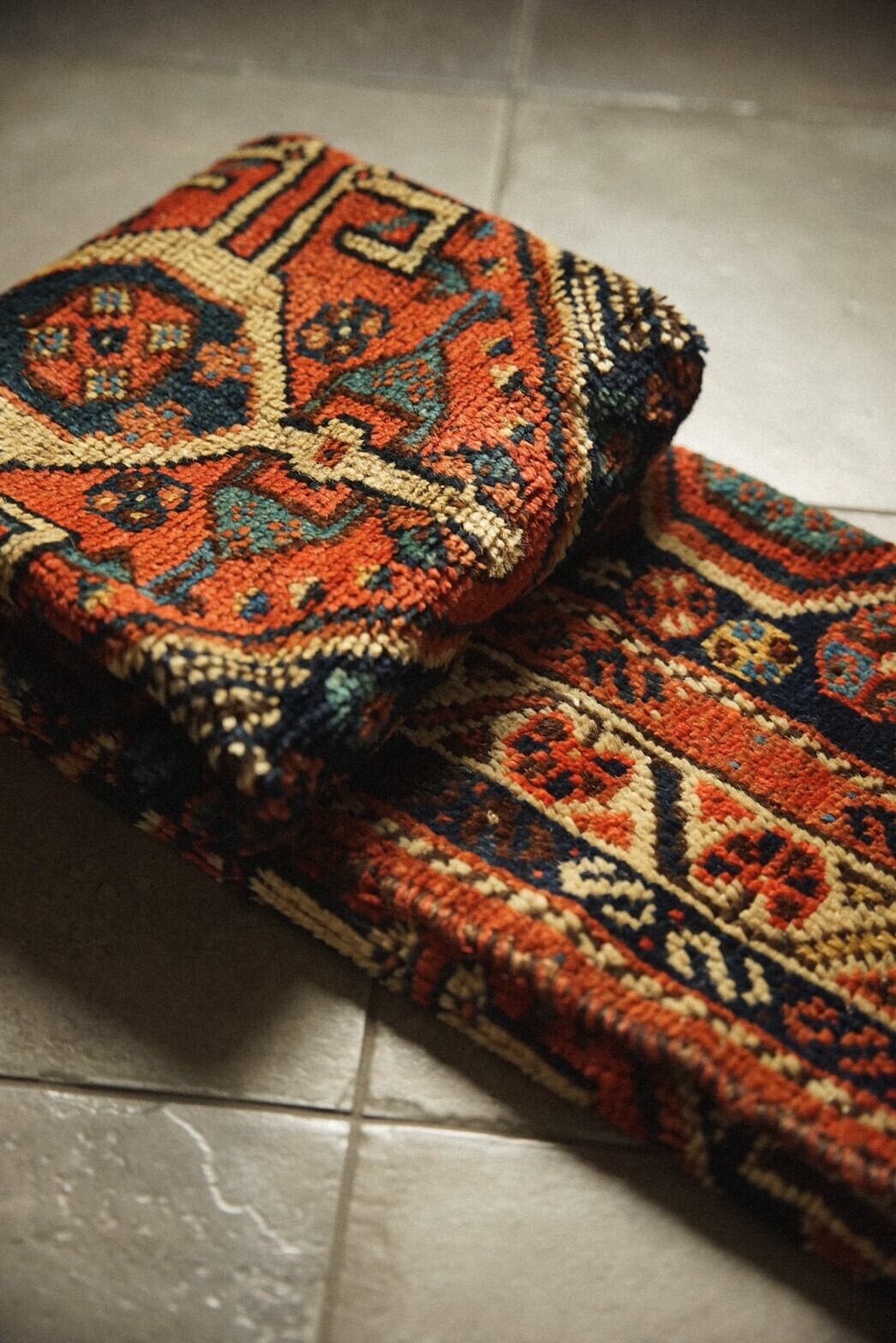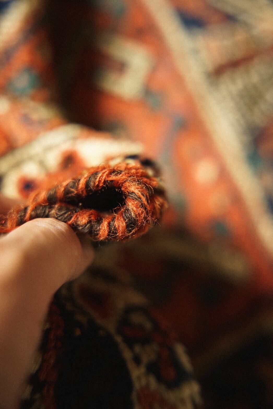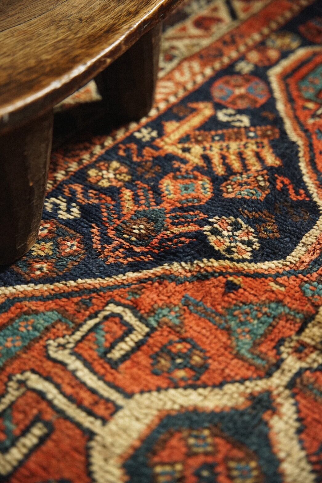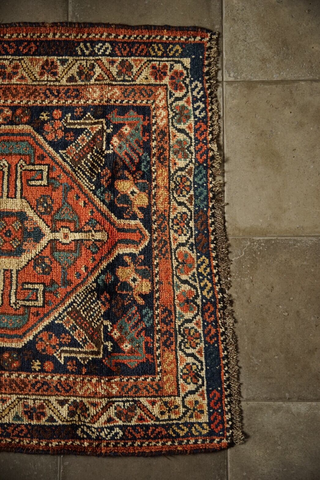 手織り特有の歪みが多少ありますが、目立ったダメージもなくパイルもしっかりと残っています。
