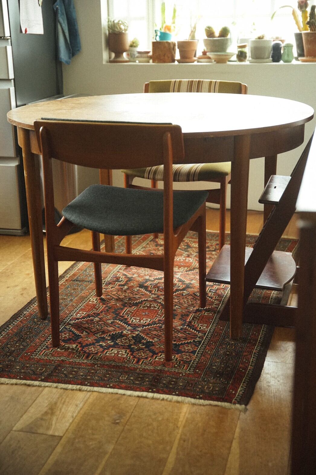 パイルは短めのさっぱりした質感ですが、チクチク感もなく丈夫な作りになっているので、ダイニングテーブルの下に敷くのにおすすめです。