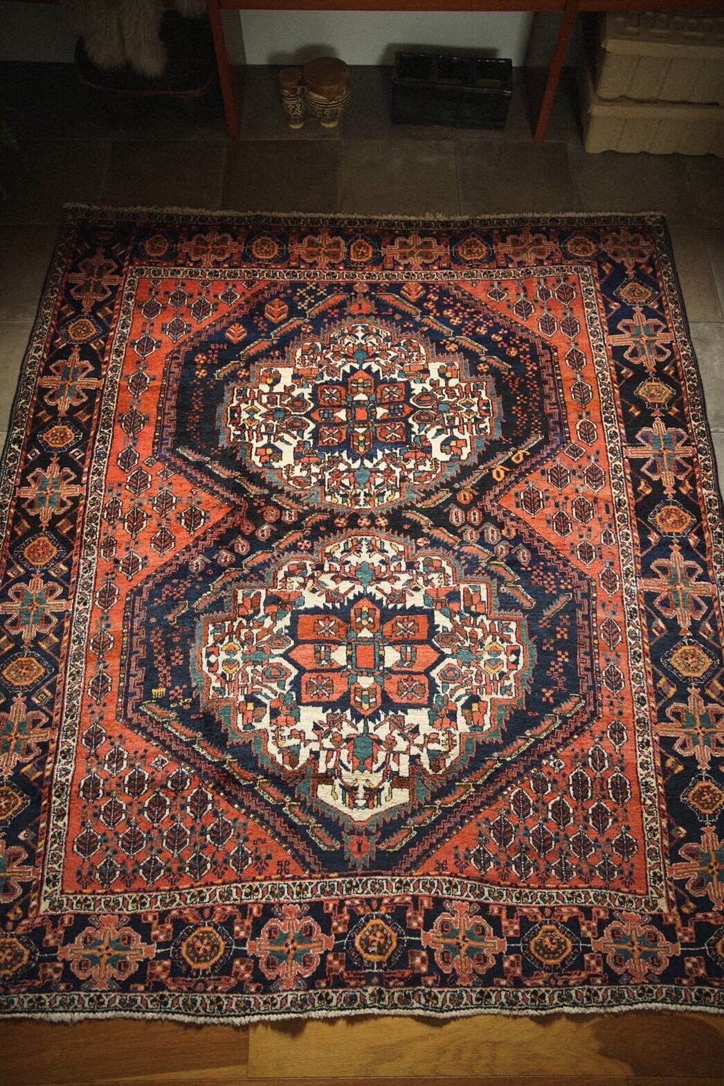 どこを切り取っても美しいアートのようなアンティークアフシャルラグ。