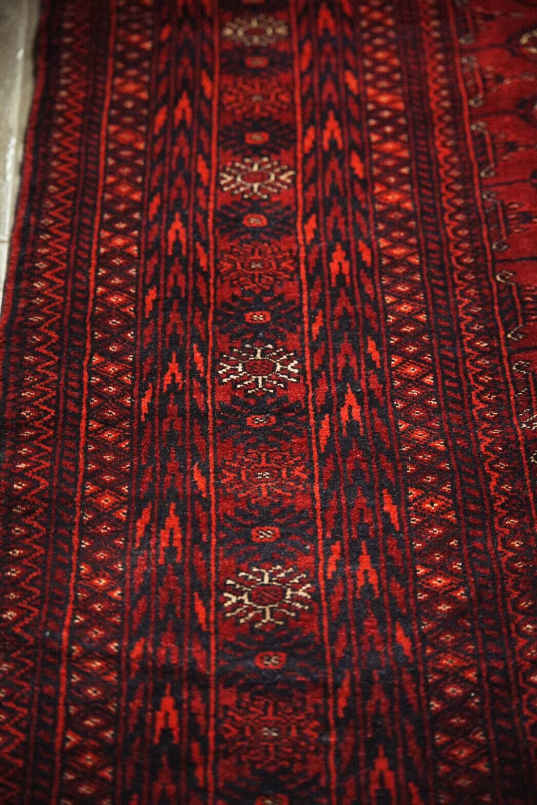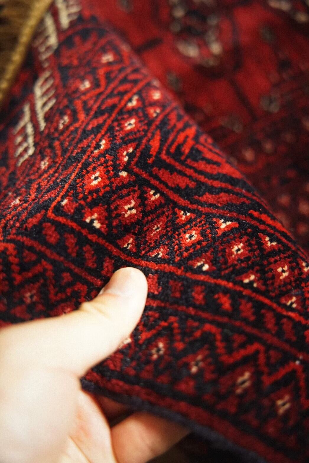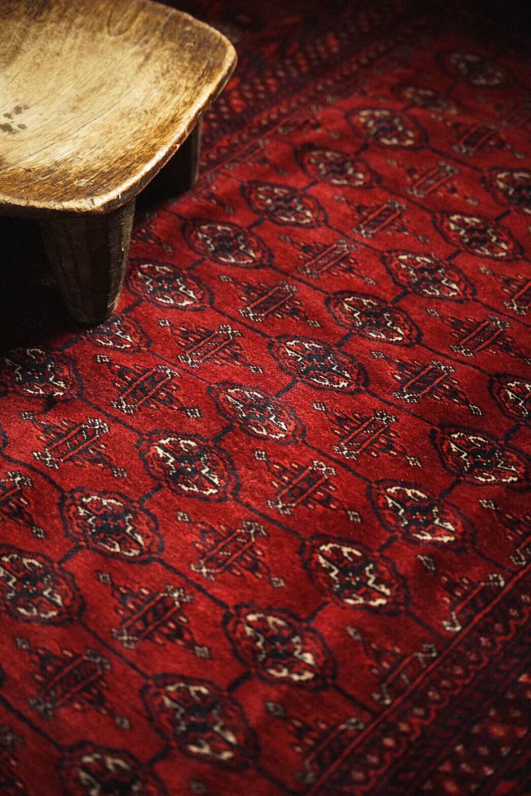 深い赤が美しいアフガニスタン産のトルクメンラグ。
