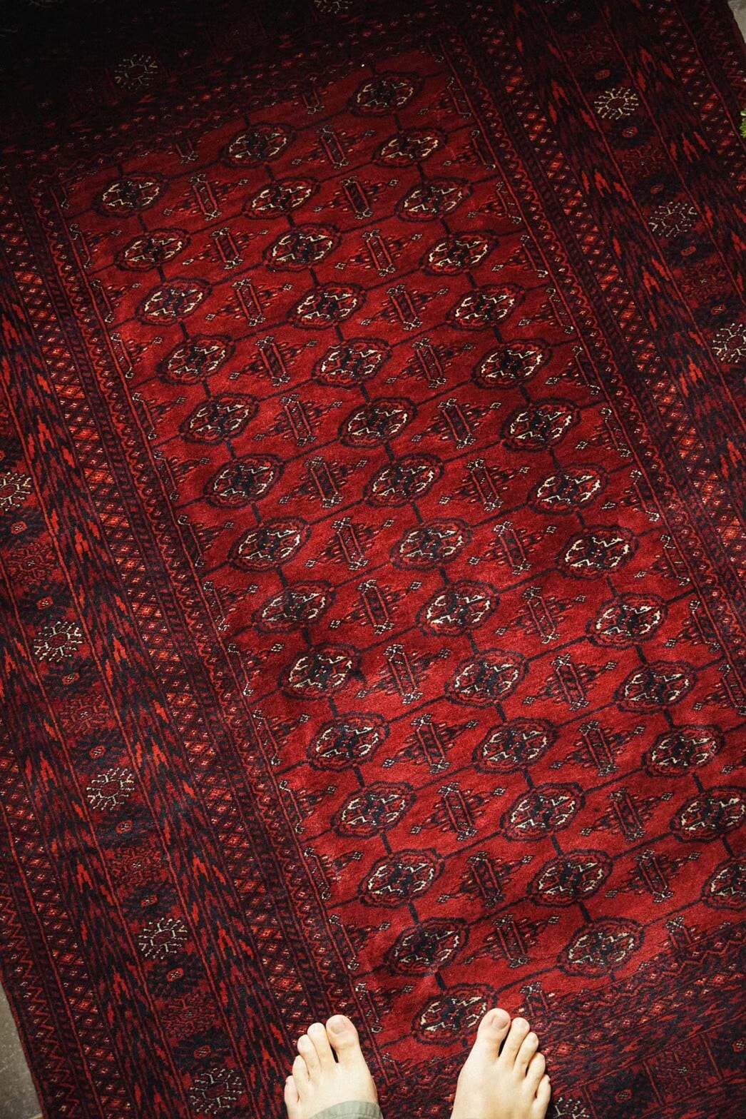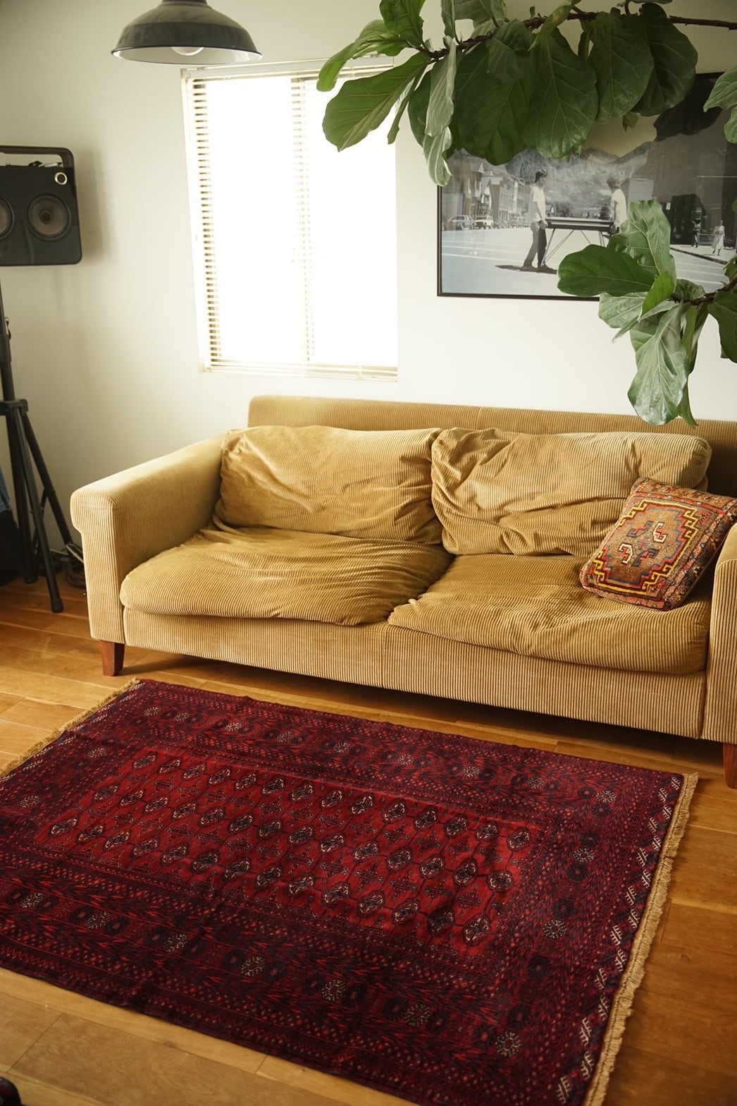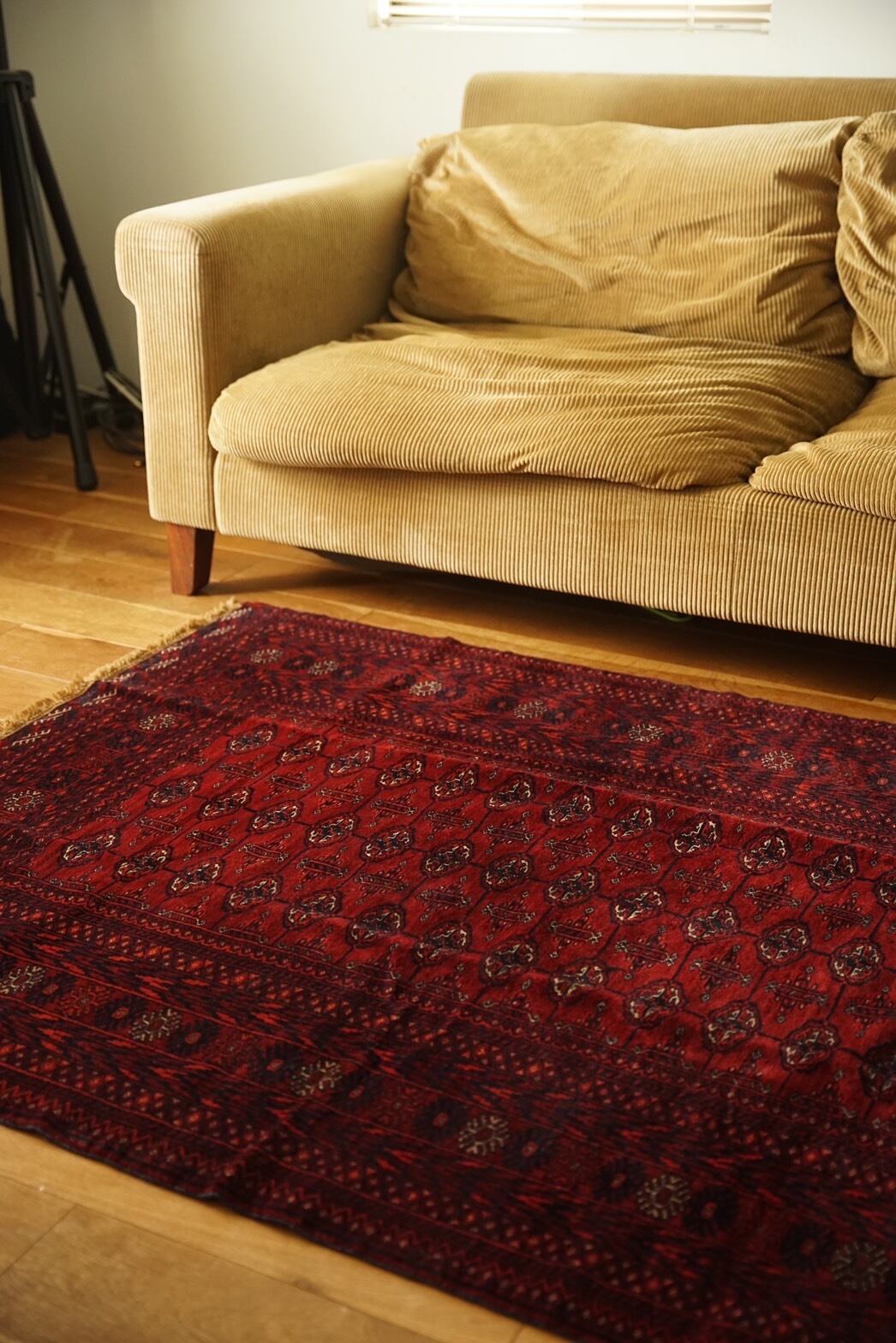 深い赤が美しいアフガニスタン産のトルクメンラグ。