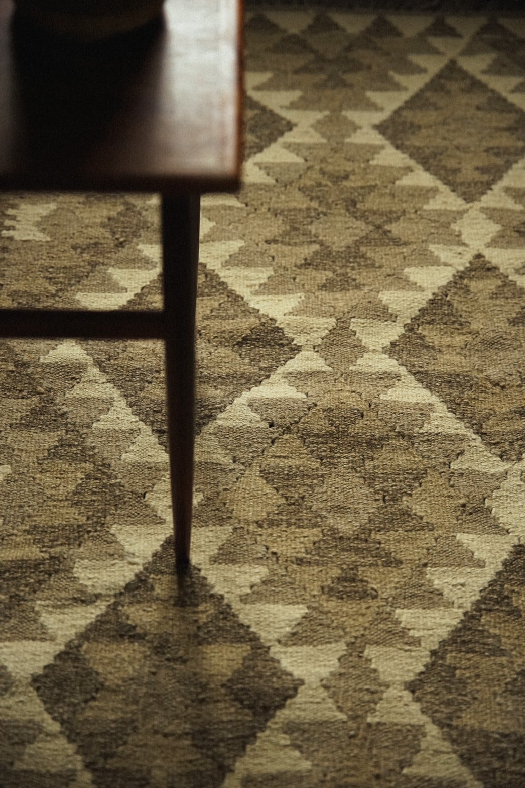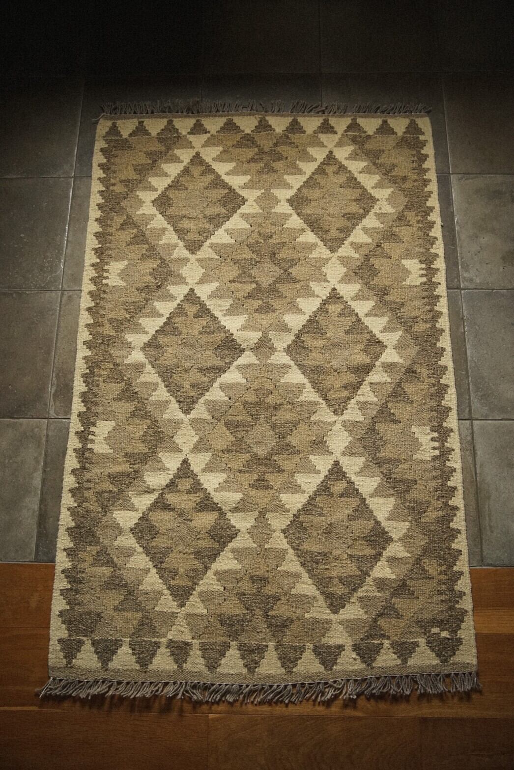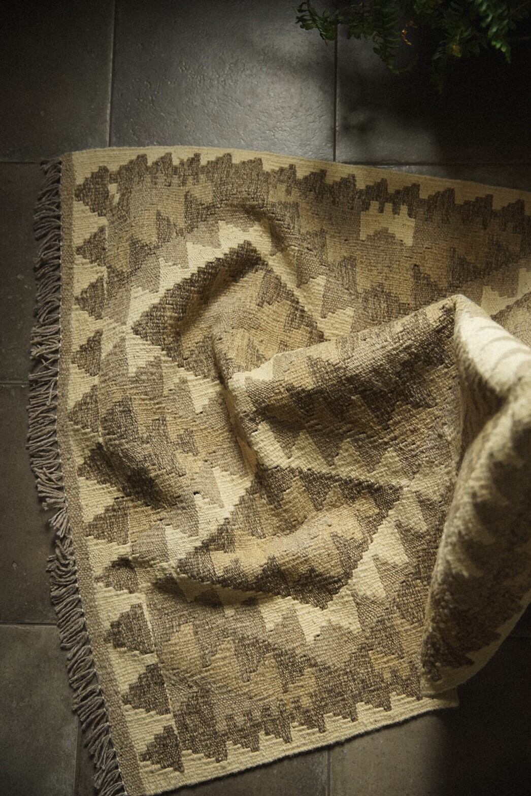 染めていない原毛色の羊毛で織られたアフガニスタン、マイマナ産のホドラングキリム。