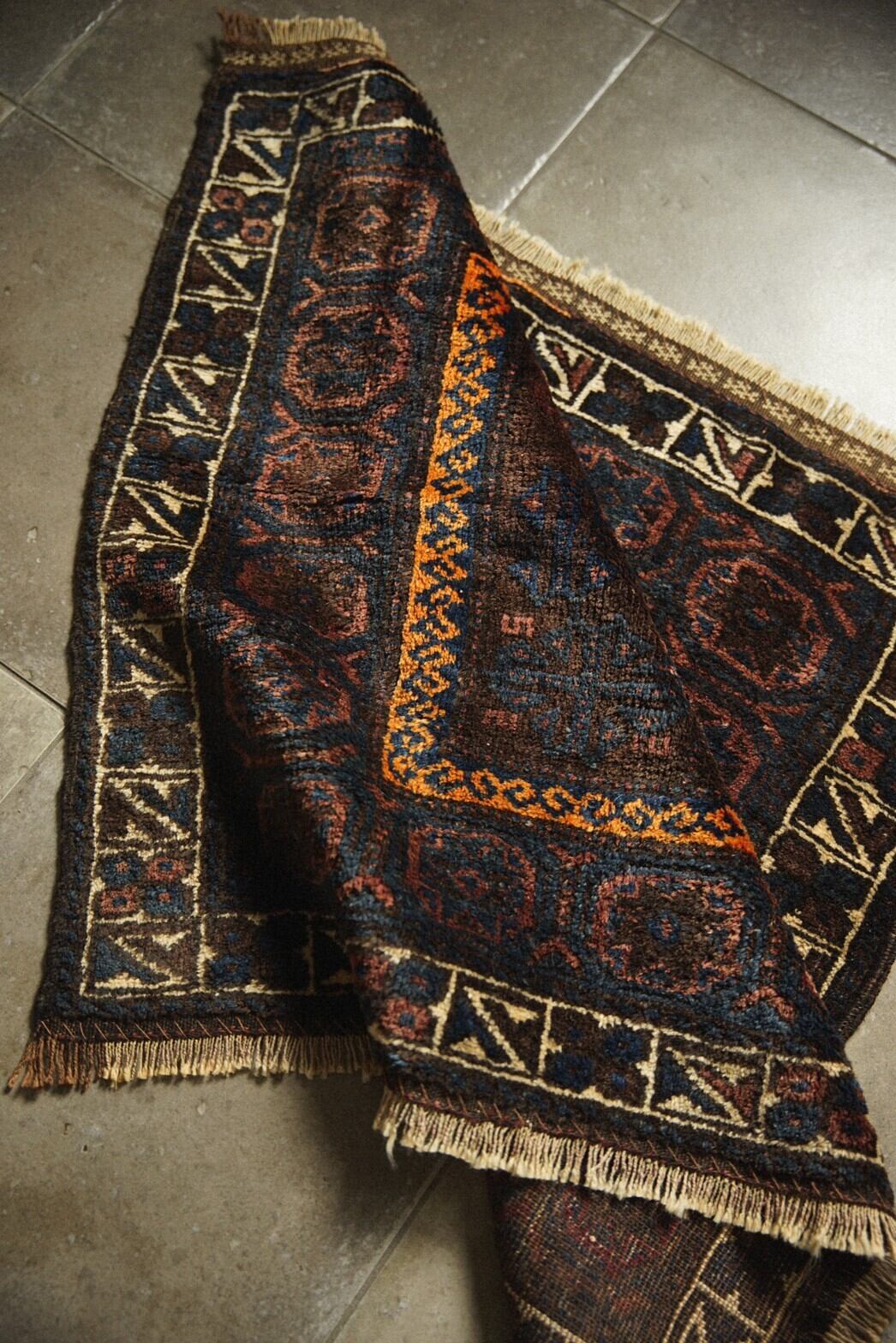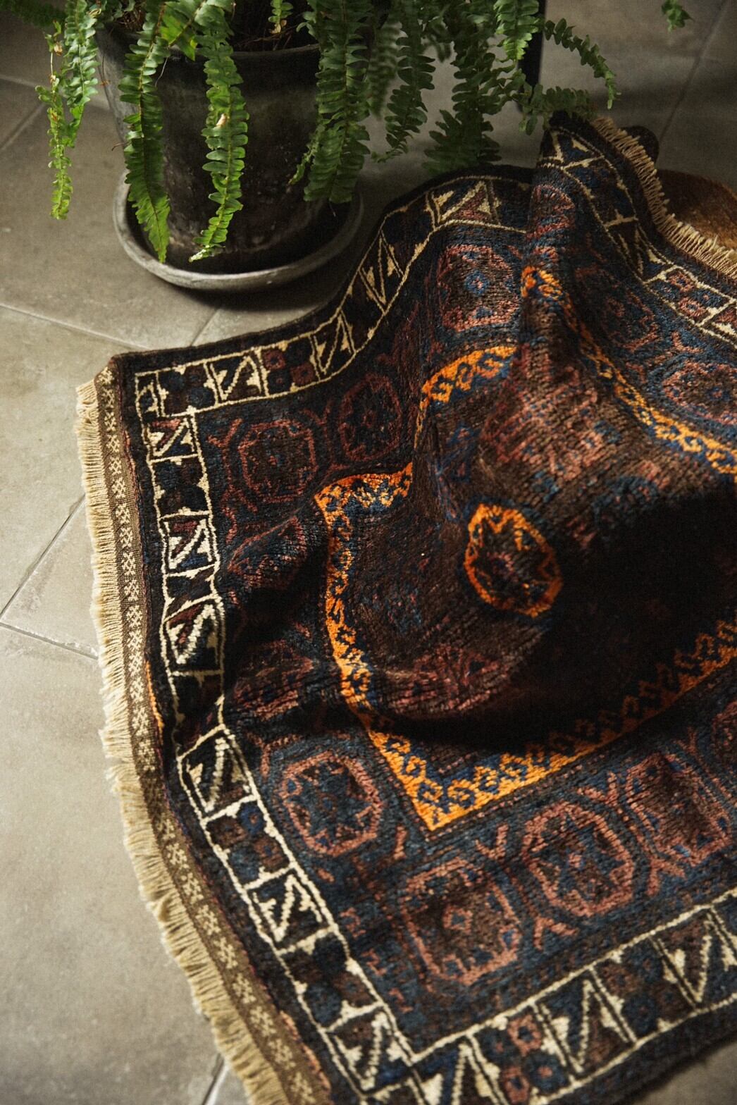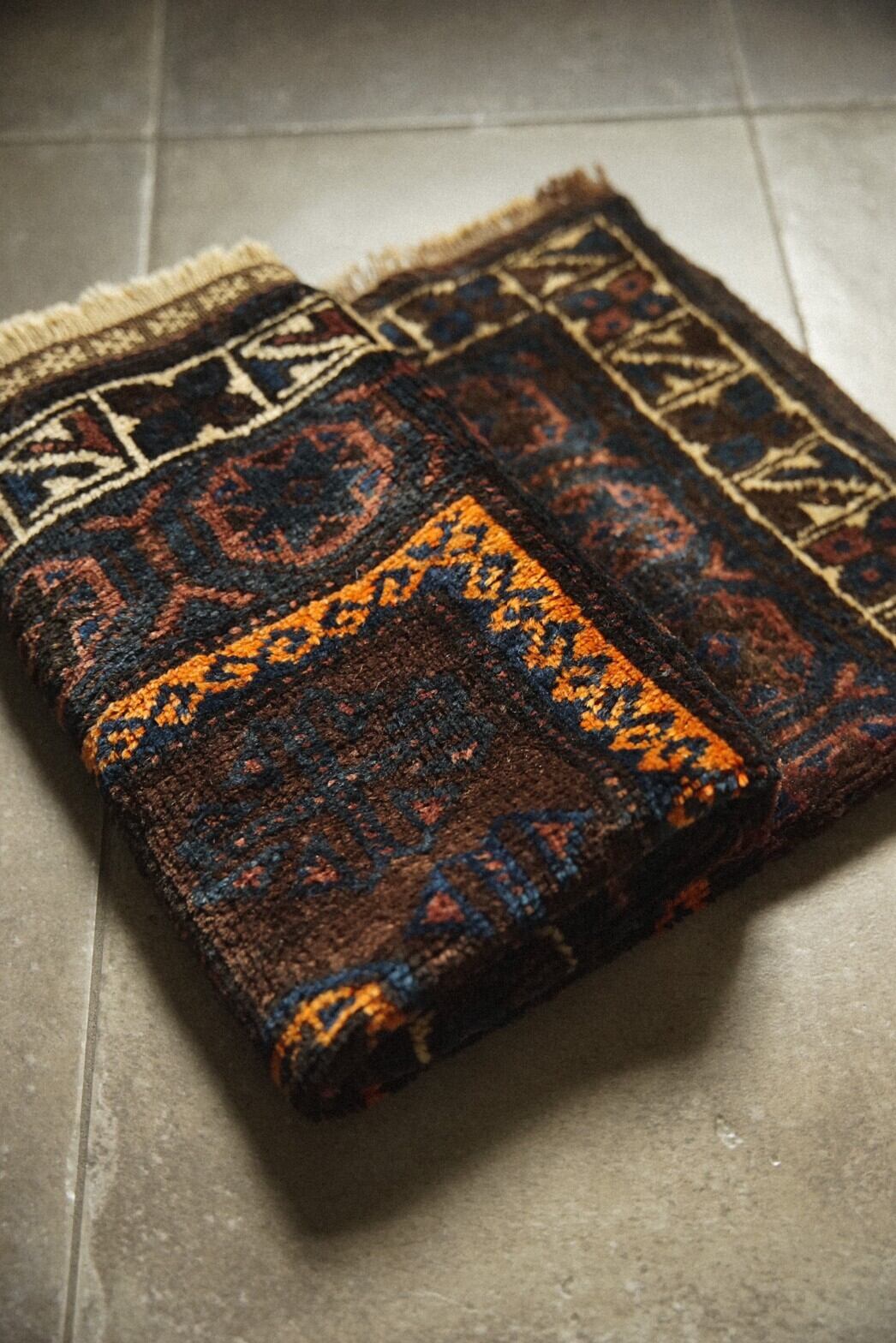 1940年代のバルーチ族によるサドルバッグのバッグフェイスをミニラグに仕立ててもらいました。