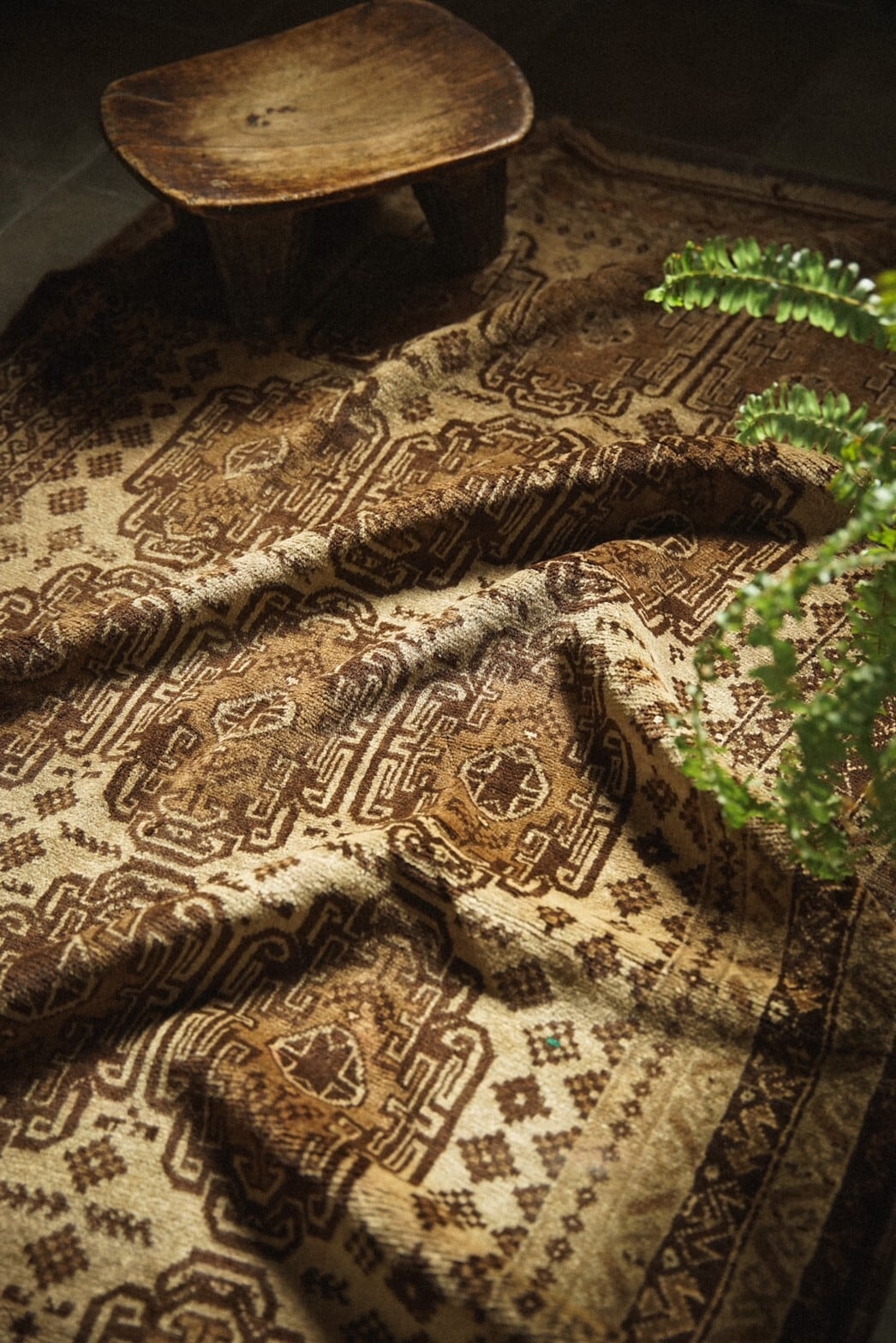 ブラウン系のシックな色味と柔らかい手触りが魅力的なバルーチラグ。