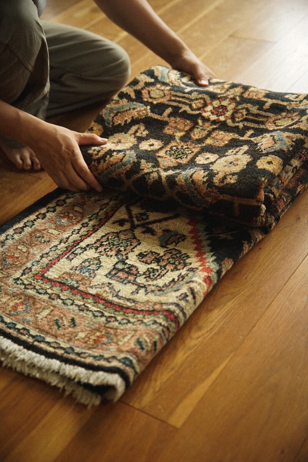 ハマダン州南東部のマラーイェル周辺で約90年近く前に織られたセミアンティークラグ。