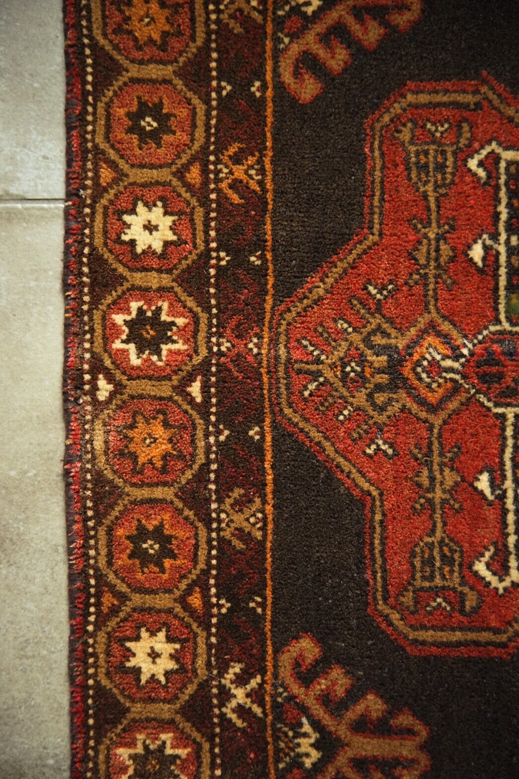 真ん中の力強いメダリオン部分の朱赤がトルクメンらしい美しい色味です。