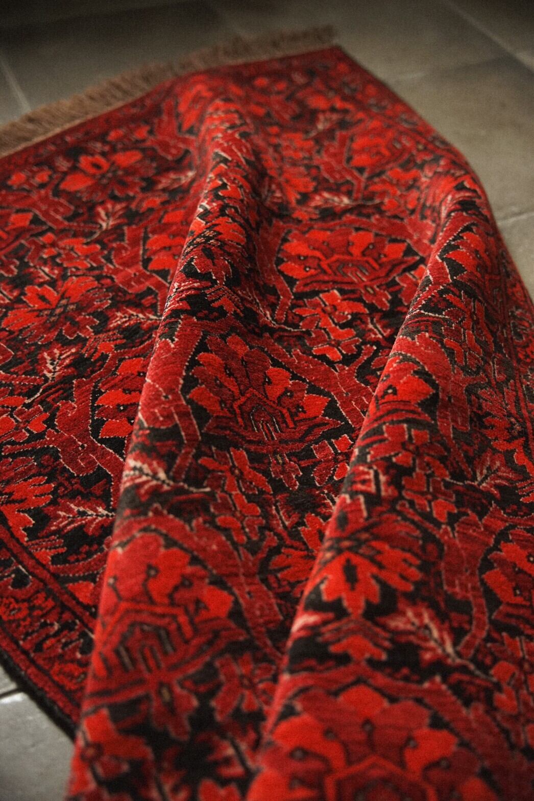 気品を感じさせるトルクメンレッド絨毯はお部屋に華やかさをもたらしてくれます。